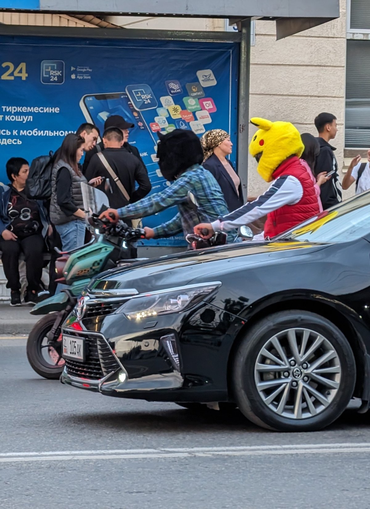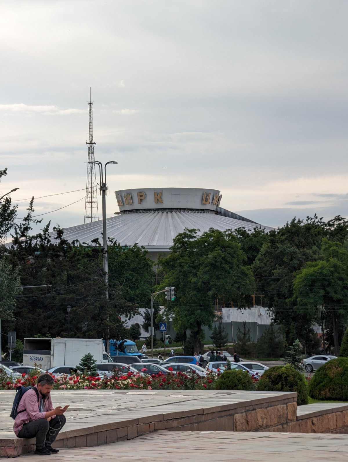 Po večeři si prohlédnu zbytek centra města. Beton na každém kroku. V těsné blízkosti se nachází Vítězné náměstí (Kulaťák), bývalý cirkus v rekonstrukci (UFO) a největší mešita ve střední Asii. Cestou potkávám Pikachu na motorce. Vyzkouším zdejší škopek elixíru života 220 SOM.