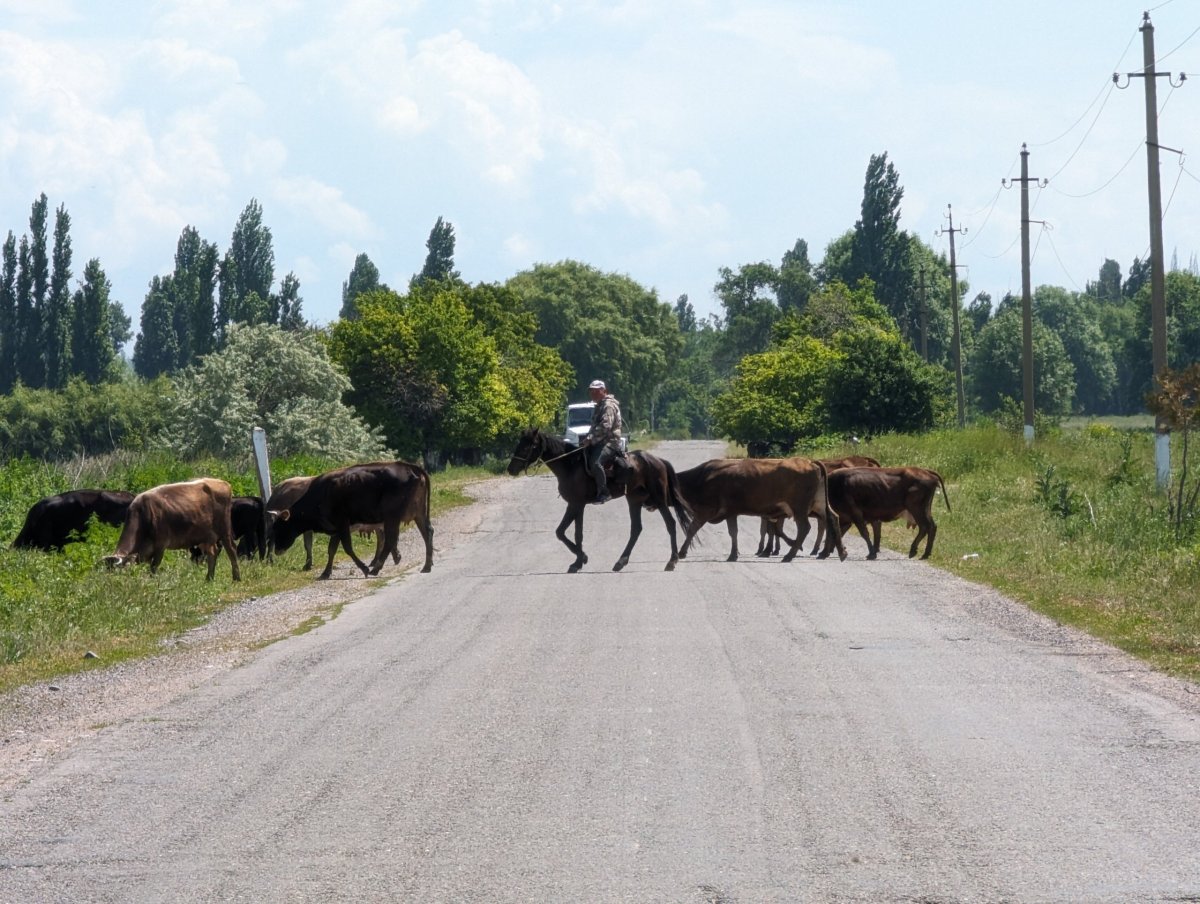 Od Burany jedu stopem v 8 lidech. Cestu nám překřížil cowboy na koni, který hnal krávy. Na to si brzy zvyknete, jelikož i na místní dálnici se jezdí slalom kolem koní.