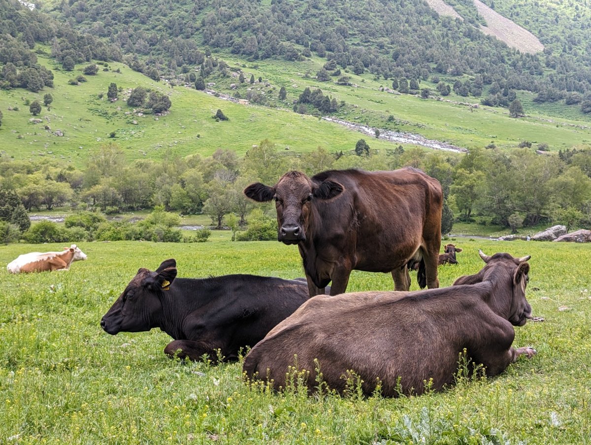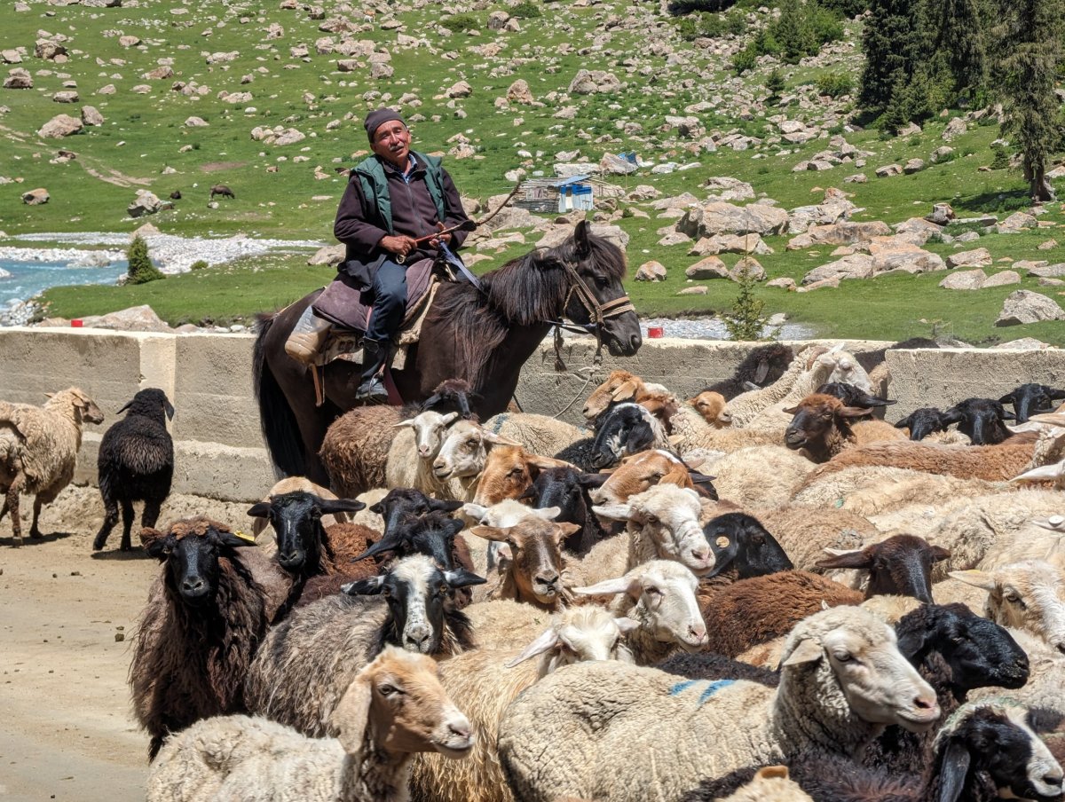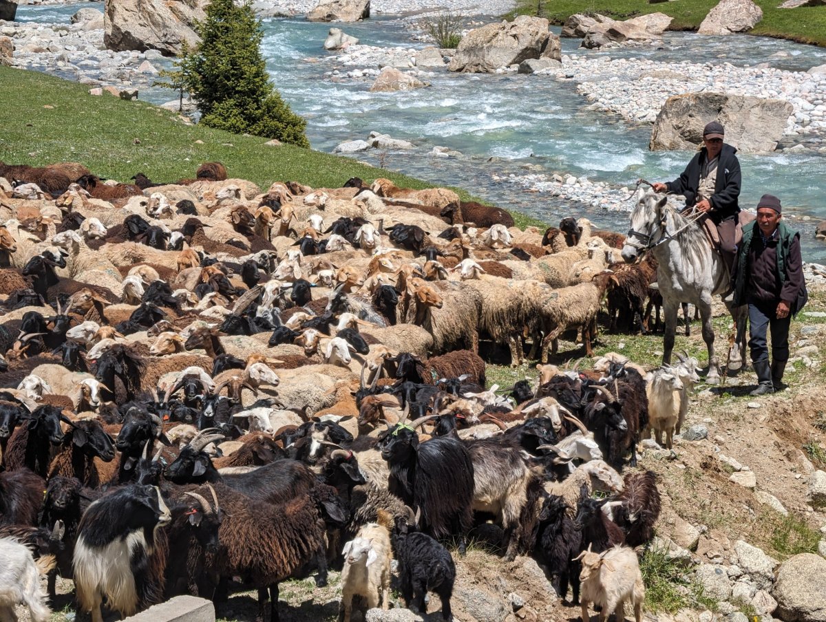 Den začal dohadováním s taxikáři na ceně. Chtěl jsem vyjet až na horské sedlo do 3800 m. n. m a zpět. Cena byla absurdně vysoká 5000 SOM. Na to jsem nekývl a na smlouvání neslyšeli. Pojedu jen k vodopádu. Cena 1500, pak 1000 a za rohem jsem sehnal dědu za 600 SOM. Vzdálenost 20 km a jízda skrz několik stád dobytka. Několikrát auto nakopne kráva, tak se nelekněte.