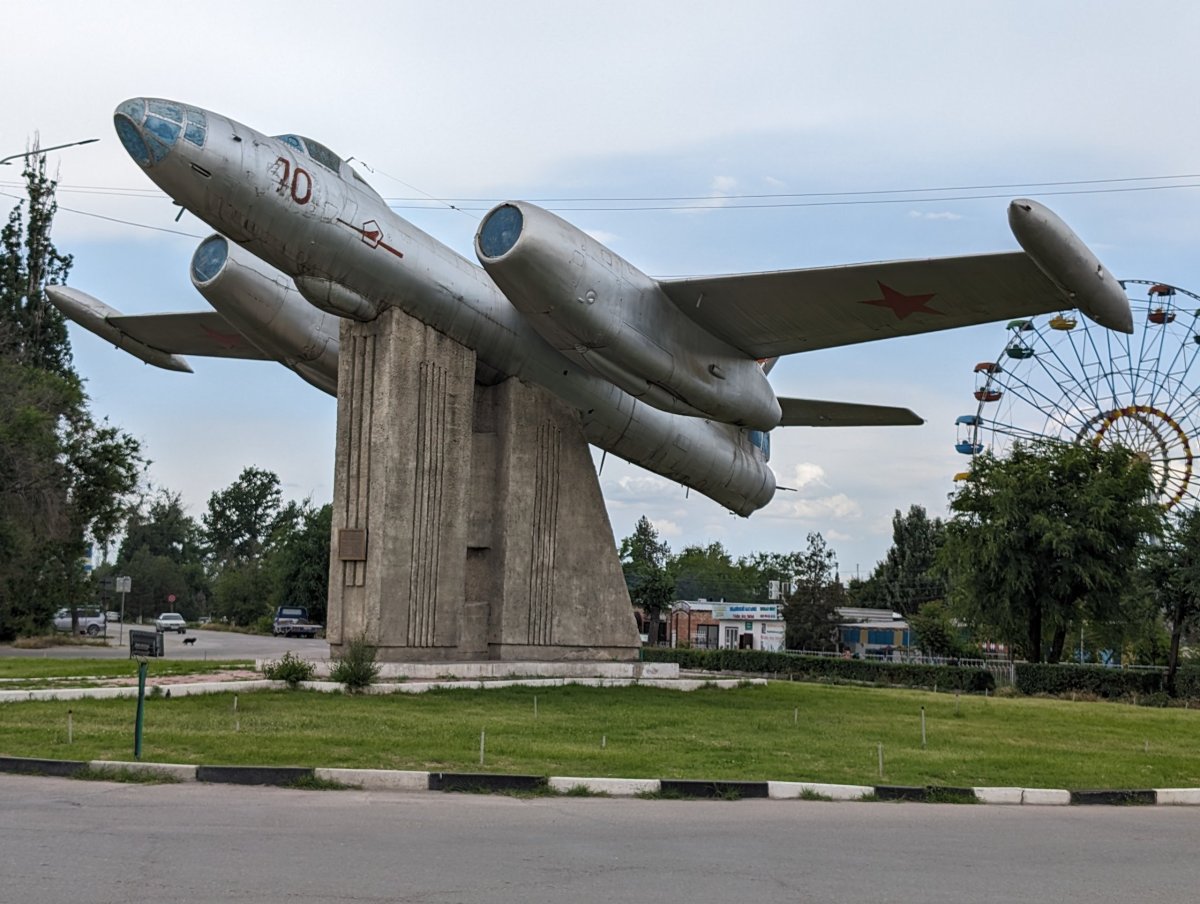 Po jídle se projdu do srdce Tokmoku, kde je sovětské letadlo a místní Matějská bez návštěvníků. Na 50 tis. město tu nic jiného k vidění není. Pod ocasem mě zastavují dvě domorodkyně, které mluví plynule anglicky. Jsou to jehovistky. Utíkám pryč.