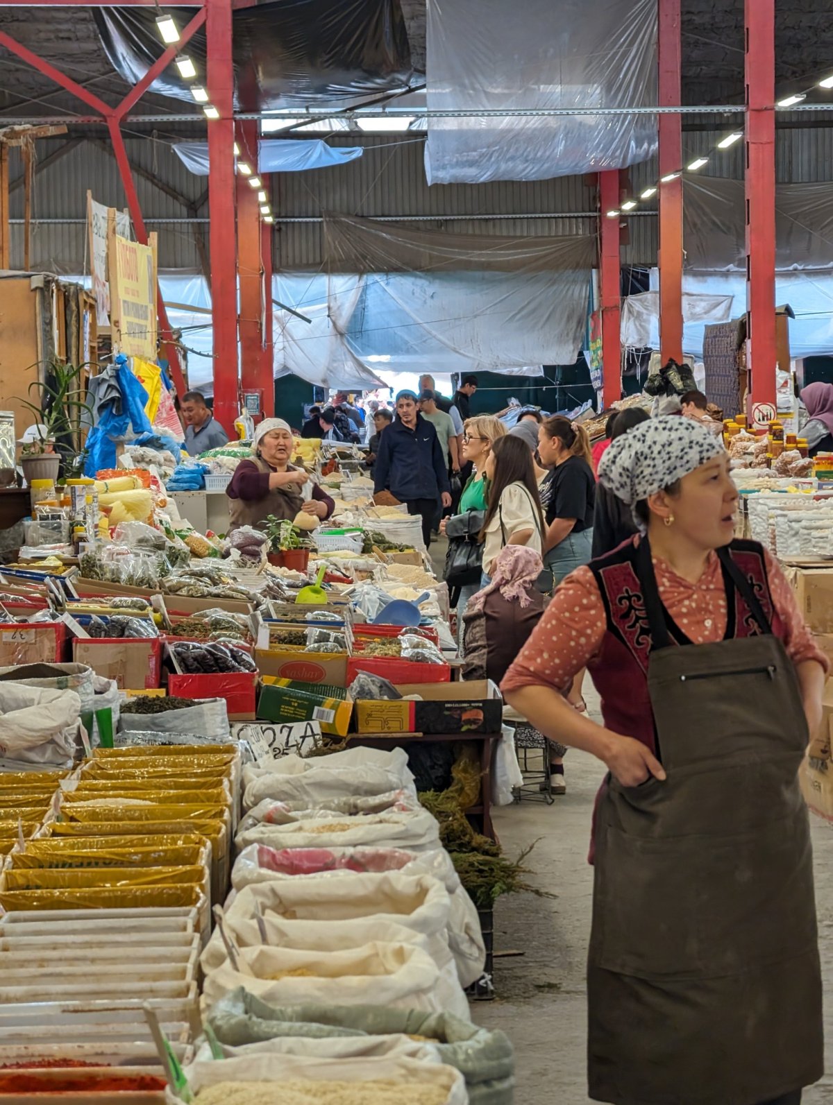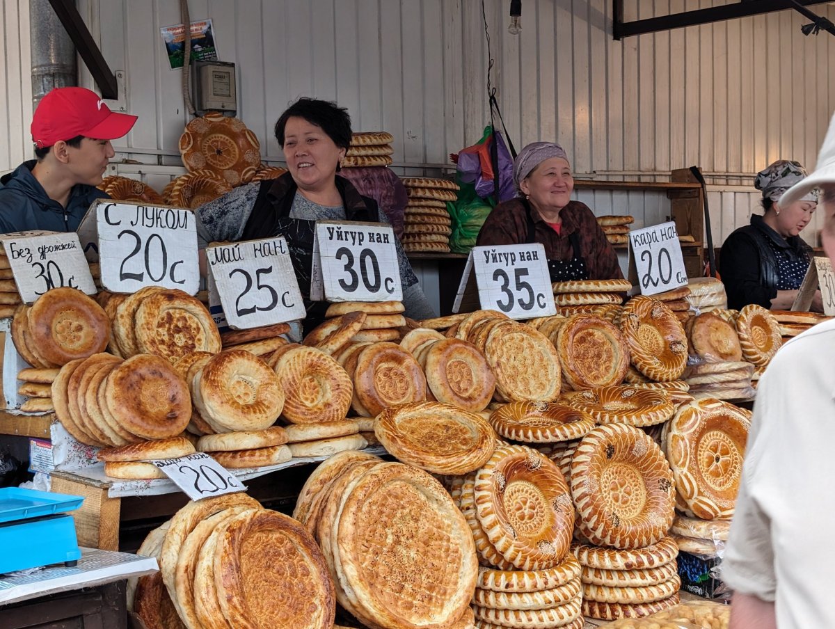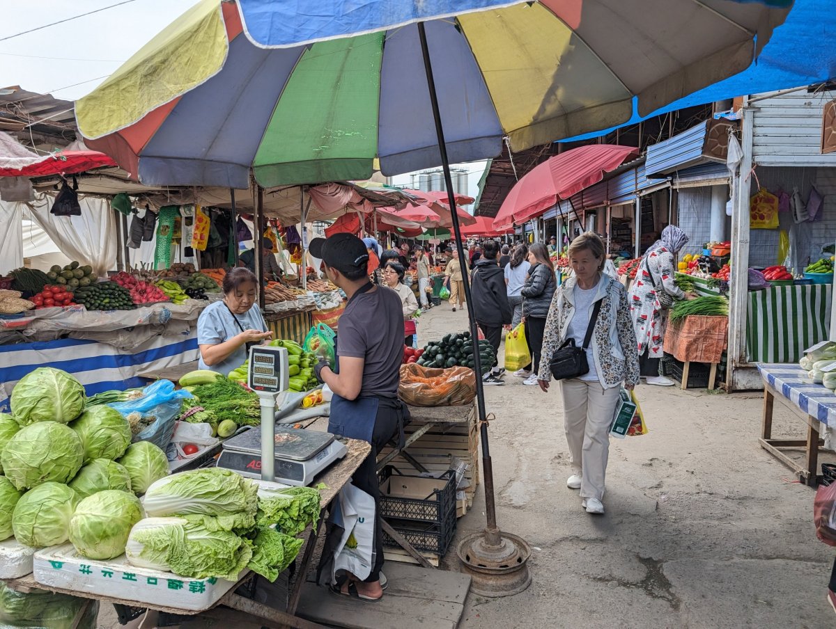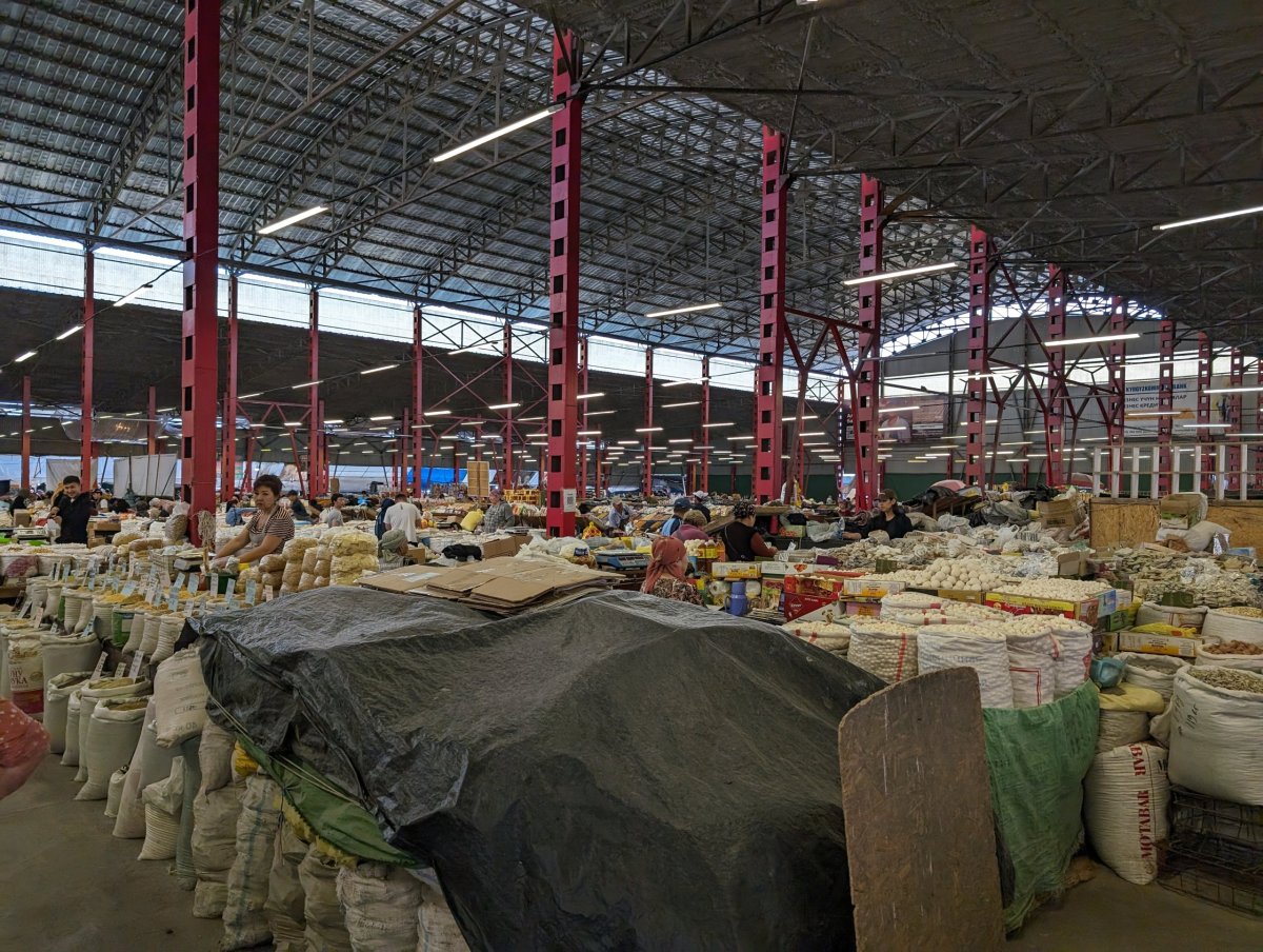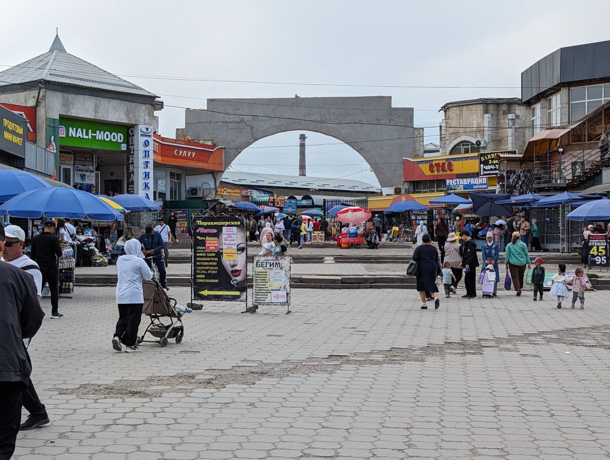 Jedná se o obrovskou tržnici. Najdete tu vše krom zlatého moku. Chleba je tu nedostatek, raději ho prodává 10 prodejců v řadě. Zelenina je krásná a levná. Kilo rajčat 70 SOM a kilo okurek vhodné na zavaření za 45 SOM. Některé zboží se dá smlouvat.