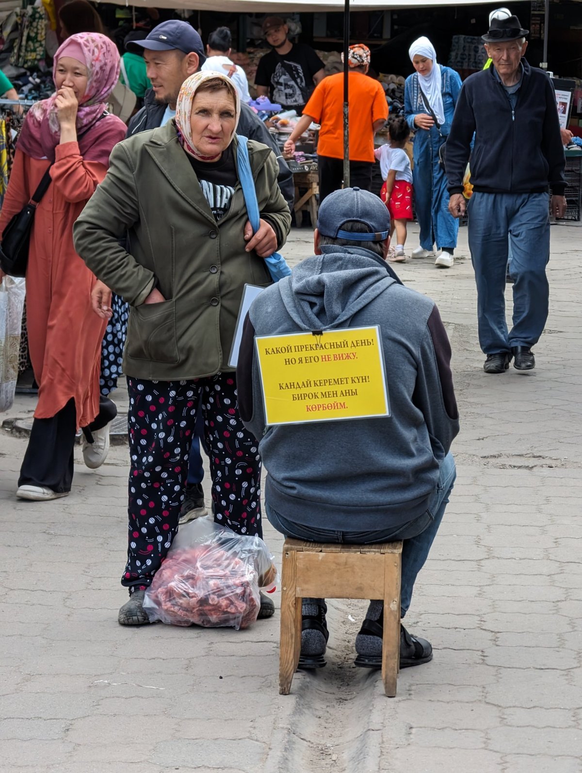 Žebrajících rusů je minimum. Vyskytují se prakticky jen kolem kostela. Kyrgyzského žebráka jsem nepotkal.