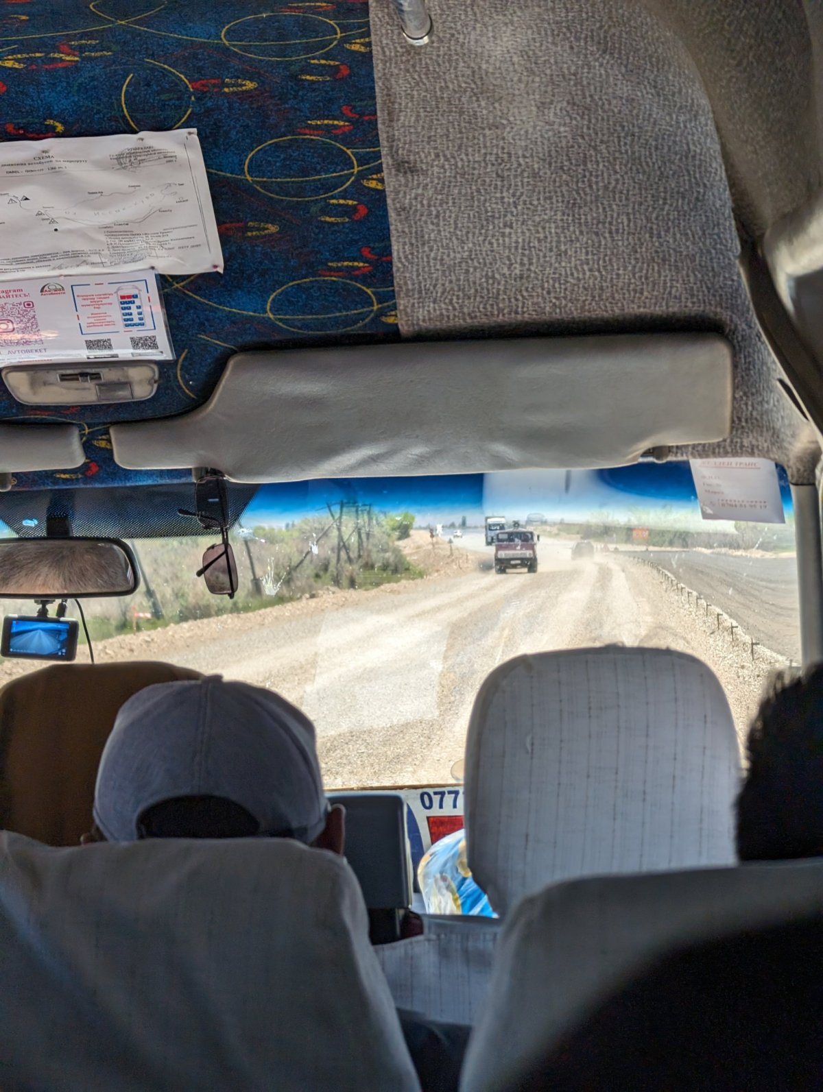 Je mi sympatické, že jedna malá slečna v Maršutce jede Duolingo angličtinu. Často si mě prohlíží. Po třech hodinách se mě zeptala, Where Are you from. Nic dalšího neříkala. Po další hodině mi podala z ničeho nic dvě sušené meruňky. Bylo to milé. Nevěděl jsem, co ji mohu nabídnout. Našel jsem alespoň českou Emco muslli tyčinku co jsem ještě měl. Začali jsme se bavit přes deepl a je to moc hodná slečna. Ještě mi dala dva zlaté bonbóny, tak jsem jí dal všechny tyčinky co jsem měl. A pak už jsem jí řekl, že už mi toho dala moc. Ať ji něco zbude pro sebe. Lidi jsou tady fakt jiní než u nás.