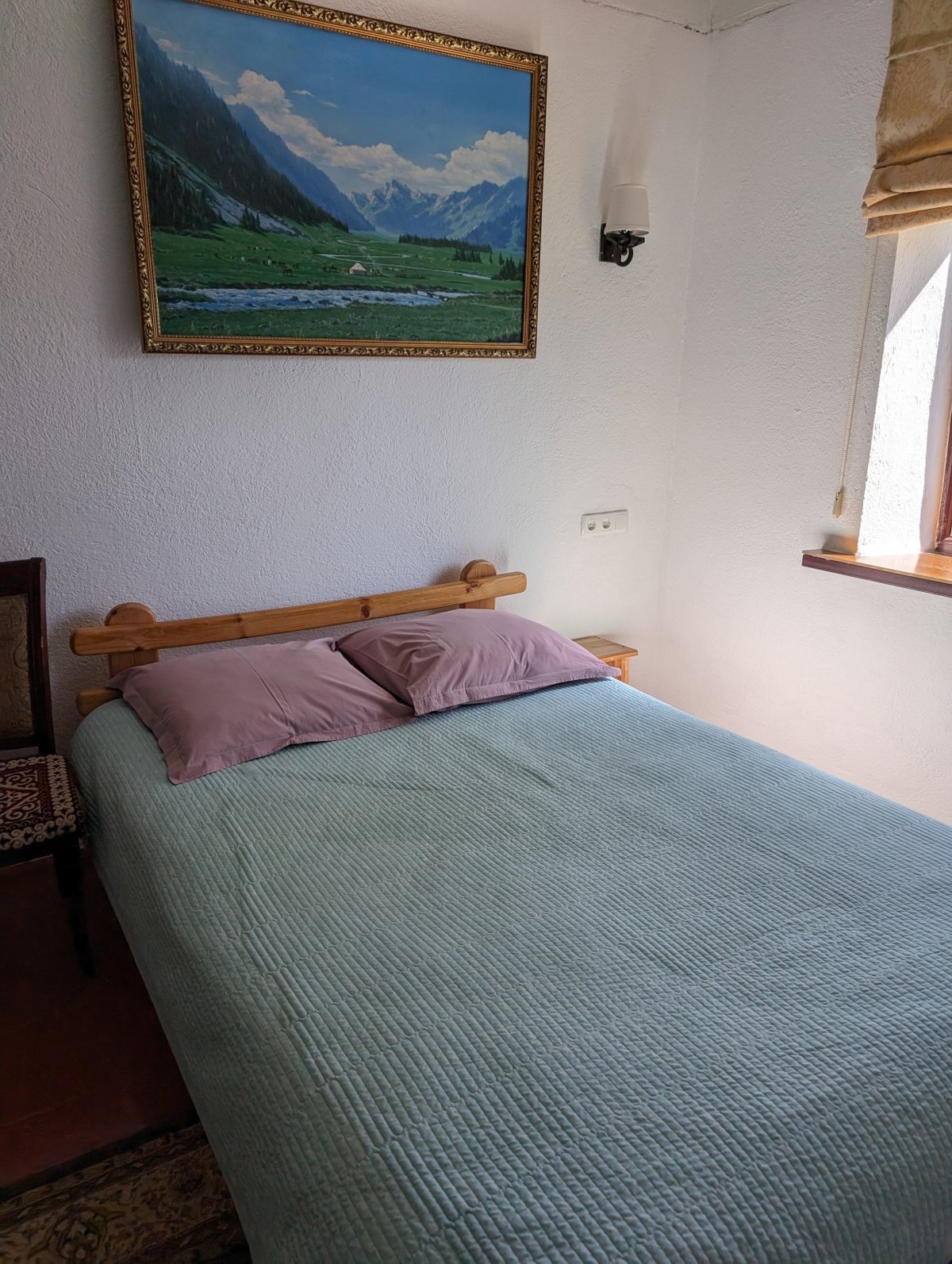 Viděl jsem, že předpověď počasí nadcházejících dní v Kochkorku je velmi zlá. Proto jsem vymyslel plán B, jet až do Barskoon. Po konverzaci přes Deepl jsem se dozvěděl, že se tam můj řidič narodil. Domluvil jsem si přes něj ubytko k jeho mamce Gulje. Domlouváme se na ceně, což se špatně odhaduje bez fotek. Každopádně jsem přes něj dostal kontakt na Gulju a nabídku na 800 SOM noc bez snídaně.