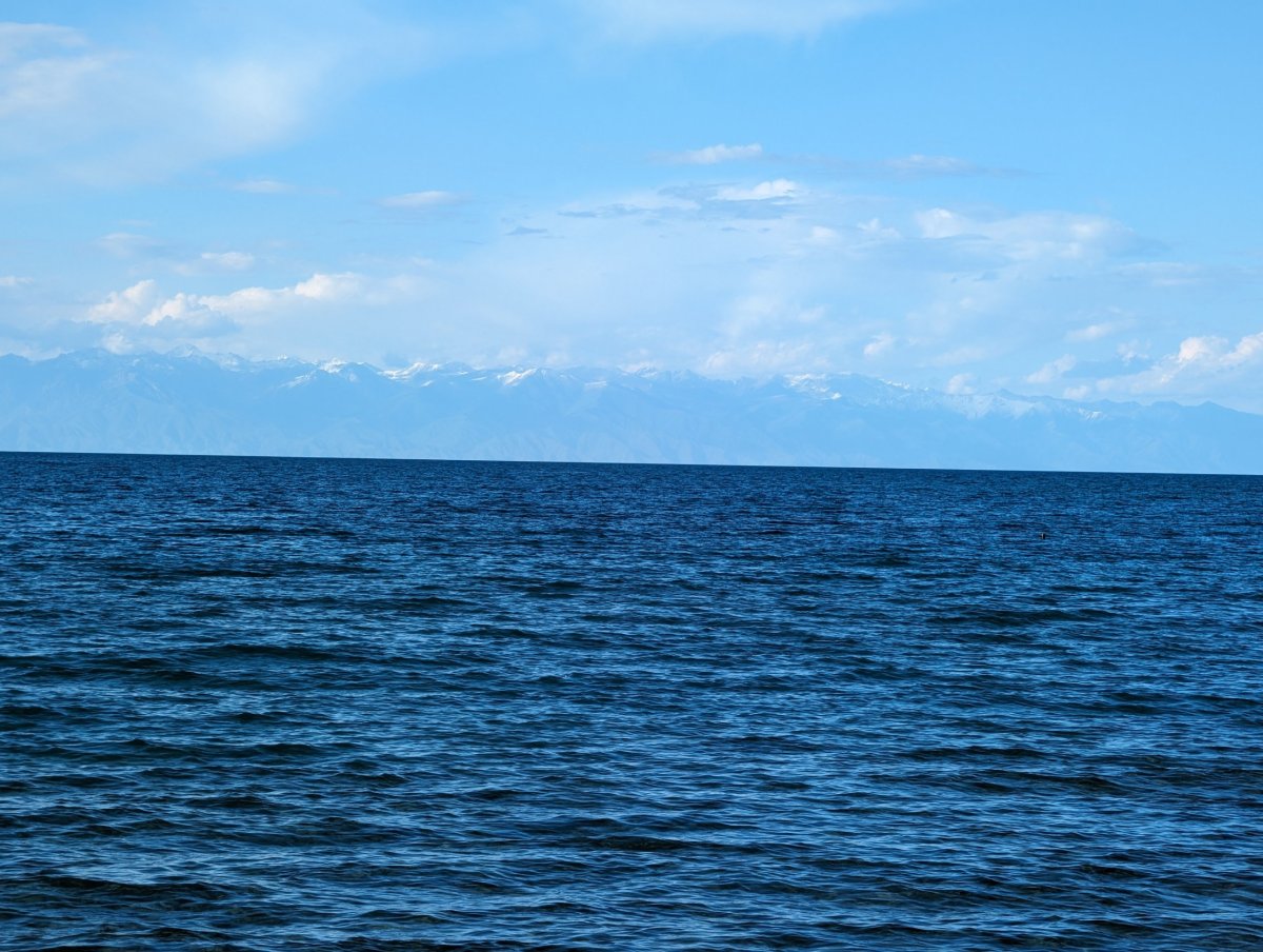 Jezero vypadá spíše jako moře, jen racek na obloze chybí. Na protějším břehu lze spatřit též vysoké kopce.