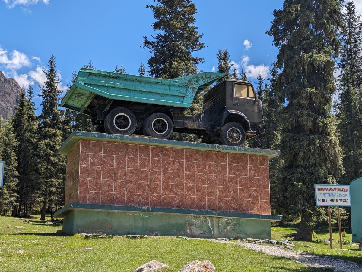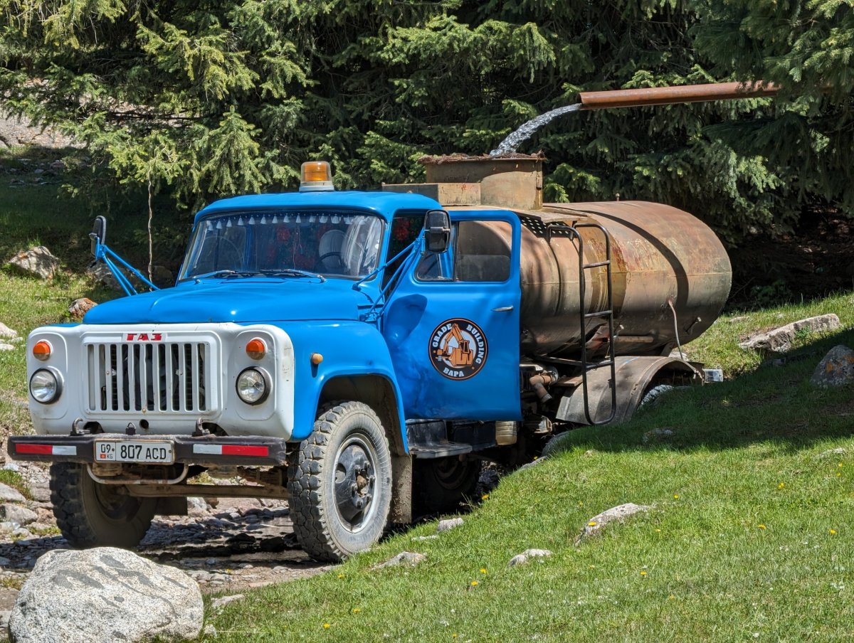 Po chvíli mi staví Ruslan s mrazícím boxem. Mám štěstí. Ruslan jede až do Biškeku. Je milý a vedu s ním příjemný pokec. Zajímá ho i kolik stojí u nás Iphone. Pokládal velice netradiční dotazy, ale jeho zájem mi byl sympatický. Strávím s ním hodinu a půl. Vystoupím u kaňonu Skazka.