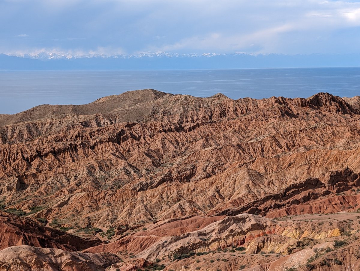 Usmálo se na mě štěstí. V jízdním řádu je přímá linka maršutky do Barskoon (jede až do Karakolu). Cena 500 SOM a předpokládaná doba jízdy 6 hodin. Maršutka odjíždí po plném obsazení. Odjíždíme zhruba 50 minut po mém příchodu. Po cestě je jedna čůr pauza a před Balychky obědová pauza. V tu chvíli jsem nevěděl, co mě ještě čeká. Po přejetím kaňonu a objetím Balychky končí asfalt a nastává cesta kolem jezera 100 km rallye Dakar.