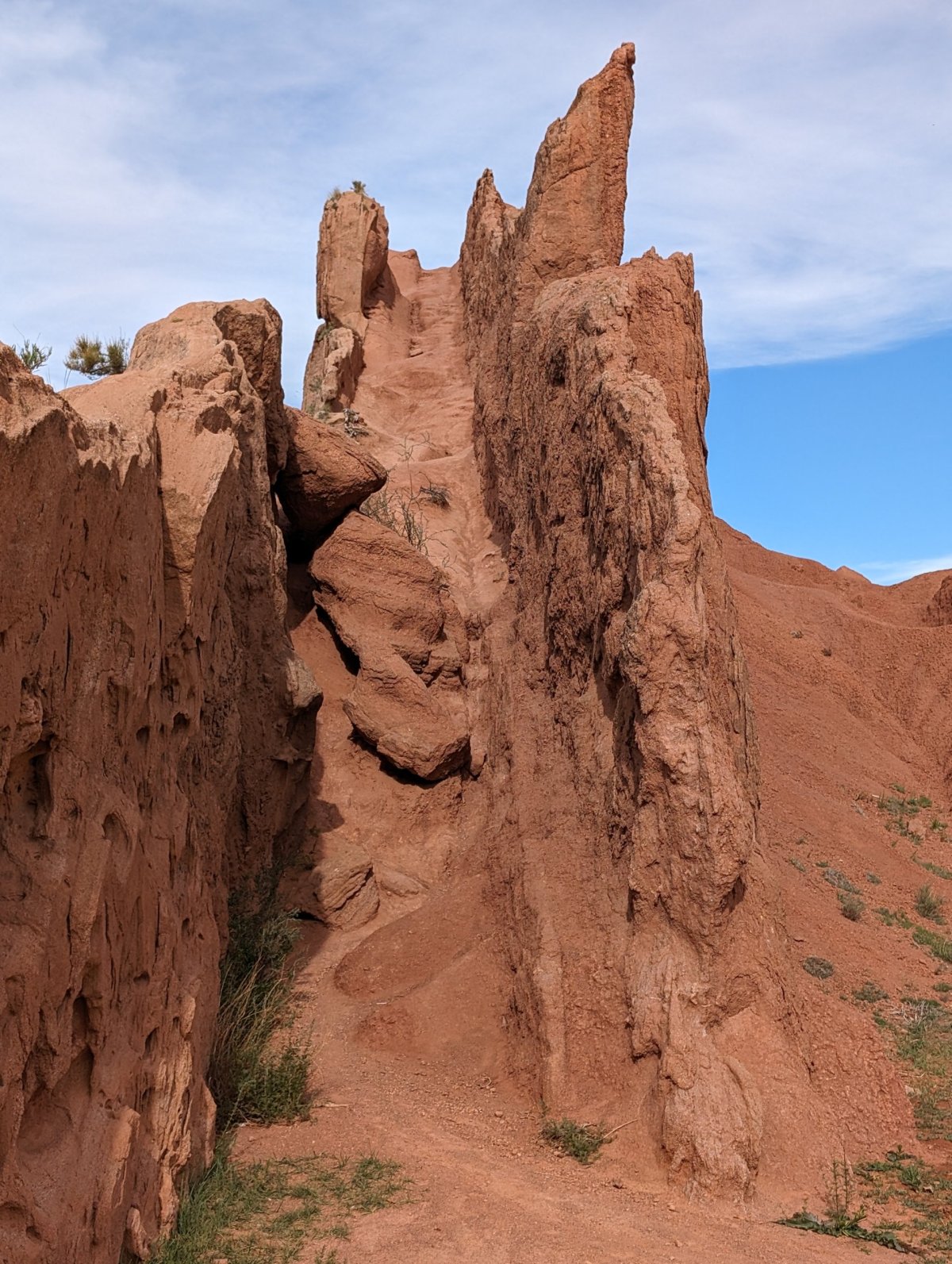 Cesta do srdce kaňonu je cca 3 km. Při vstupu na vás čeká závora, identická jako ve třech veteránech. Vstup za 50 SOM. Cestou potkávám opět skupinku čtyř našinců ze včerejšího knedlíčkového setkání. Kaňon Skazka se dá projít křížem krážem. Za pár desítek let se jim to tam rozdrolí o kopyta turistů.