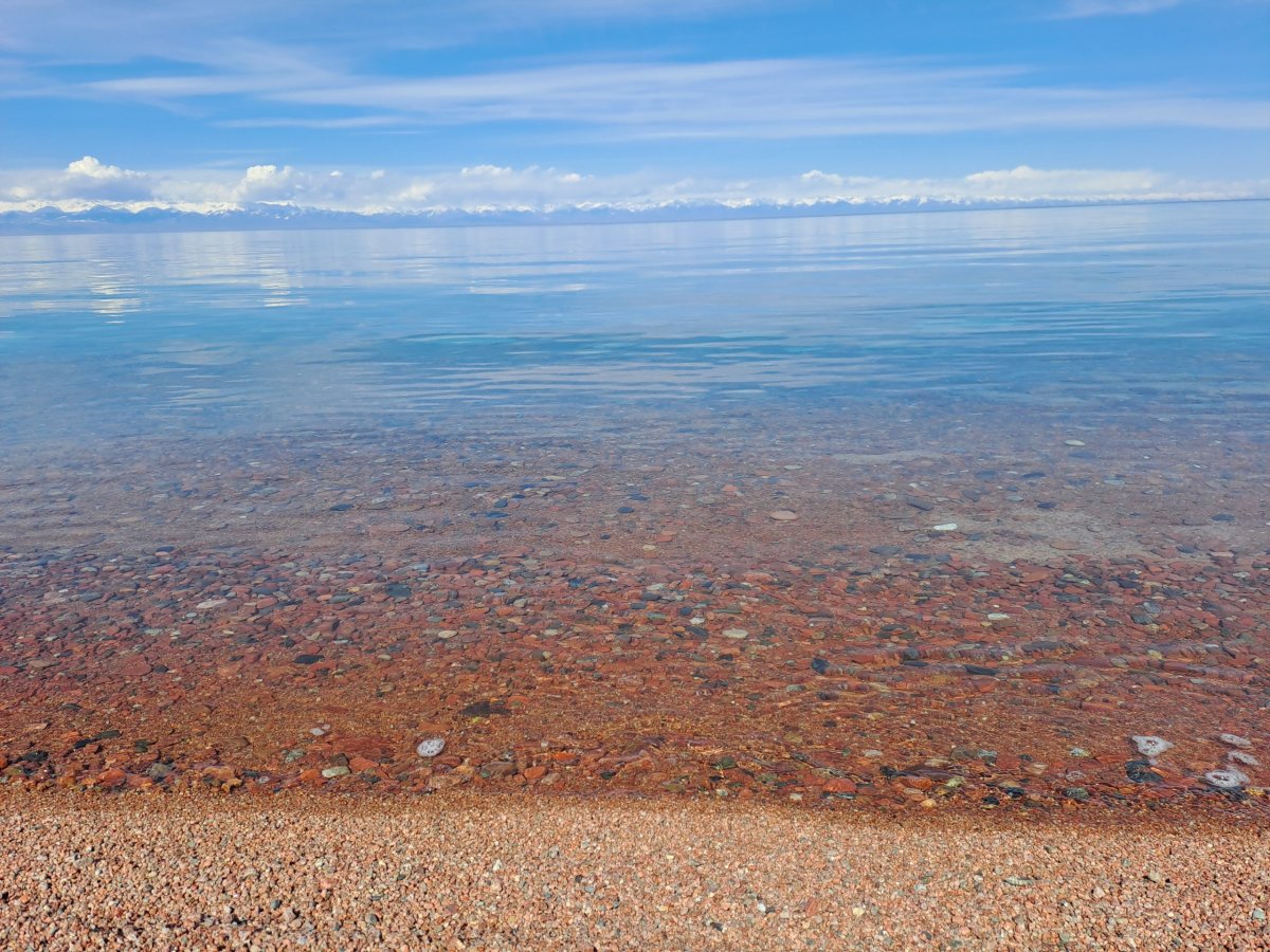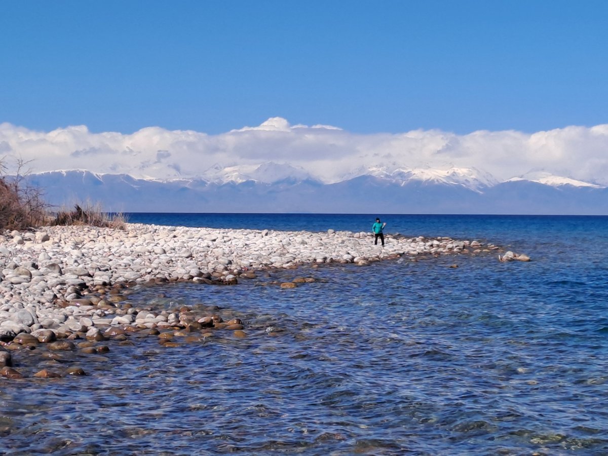 Jezero Issyk Kul je 180km dlouhé, 750m hluboké, mírně slané. Obklopené horami ze všech stran. Voda čistá, za hezkého počasí modrá. Asi nejhezčí, co jsme v KG viděli. K jezeru se lze dostat z Biškeku maršrutkou, každý den jede několikrát ze Západního autobusáku. Cesta trvá skoro pět hodin, v polovině je asi 15 minut pauza, cena 90Kč. Ubytovali jsme se ve vesnici Bokonbayevo v Guesthouse Gulmíra.
