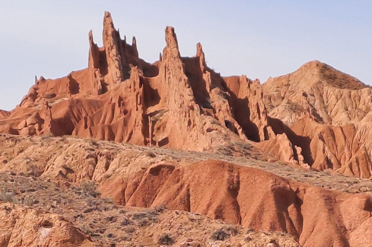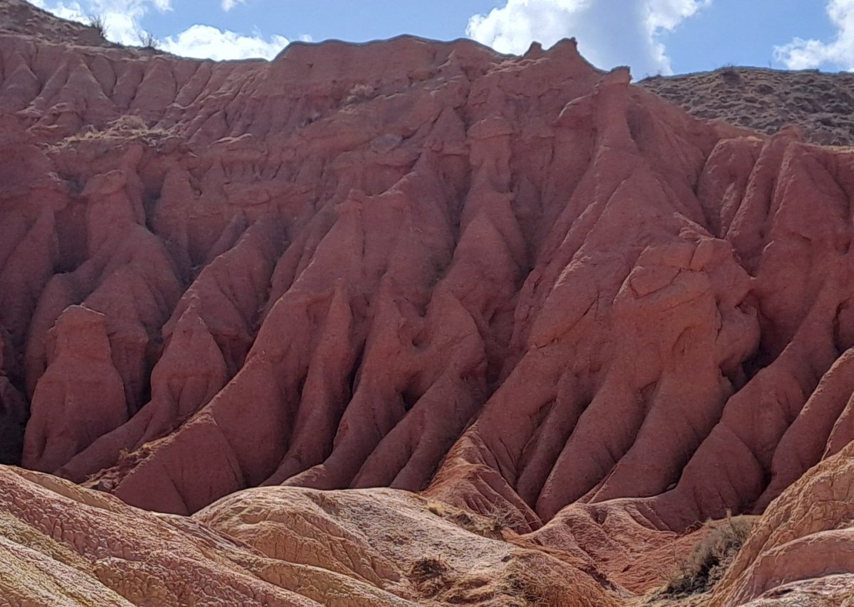 Výlet do kaňonu Skazka. Z Bokonbayeva je to asi 30km do Skazky. Skazka je dosti populární, protože má několik hodně fotogenických míst. Je ale dosti malá, asi tak na hodinu, nebo podrobně na dvě.