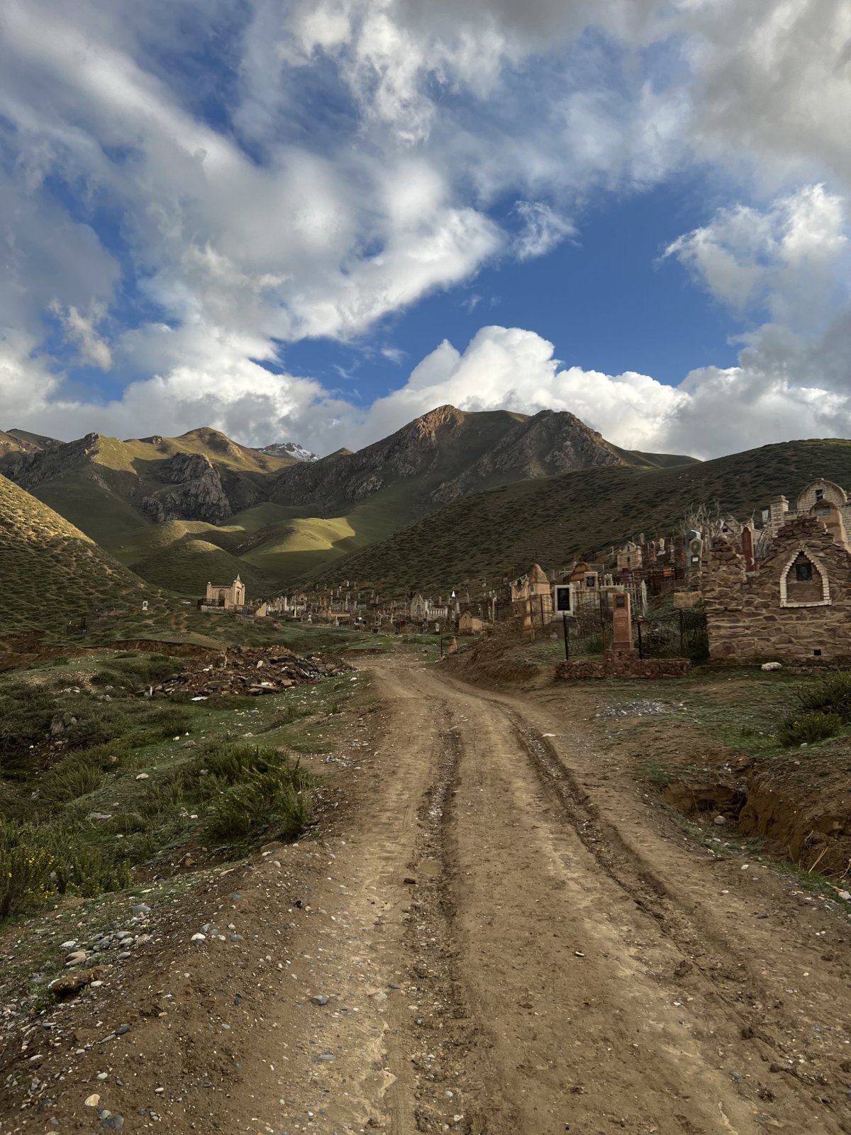 Okolo Narynu je nádherná krajina, treky zde musí být skvělé. Já však pouze dávám pivko na místním hřbitově a vyjdu si na nedaleký kopec. Zastavuji i na jídlo, kde místní obsluha už nemluví ani rusky a tak přejde při konverzaci se mnou do plynulé kyrgyzštiny, asi abychom si snad lépe porozuměli.
