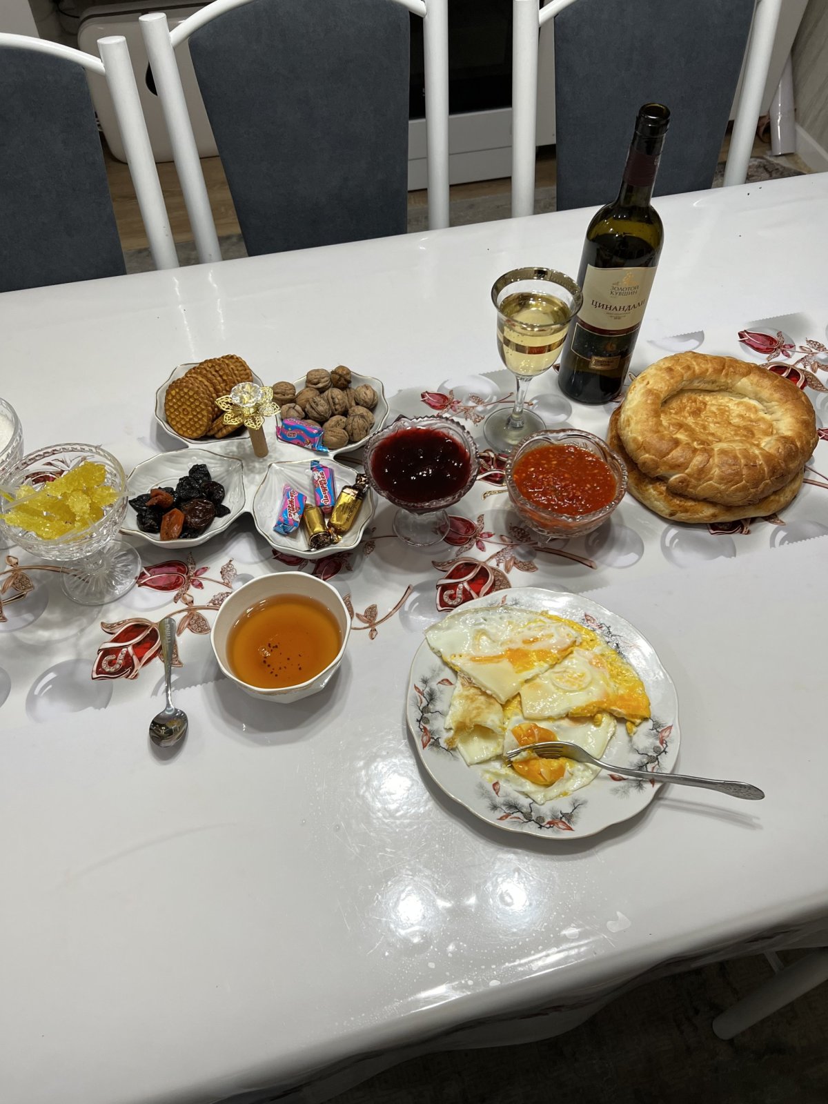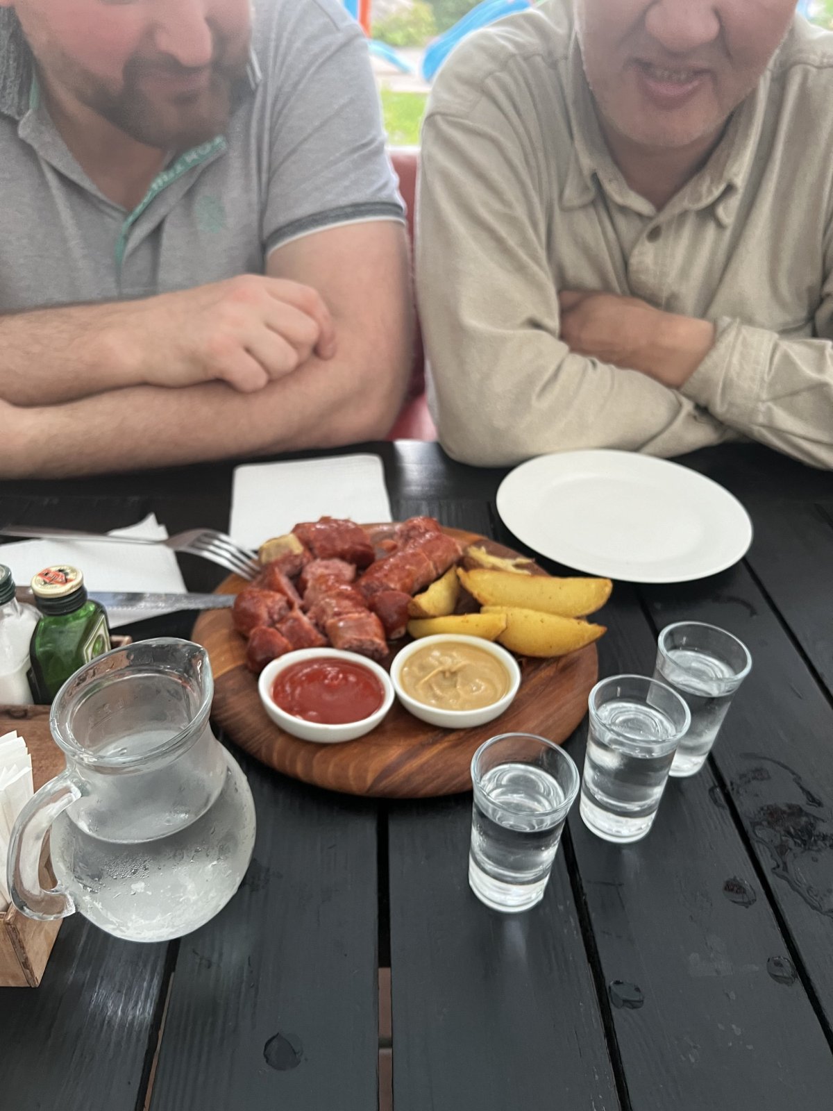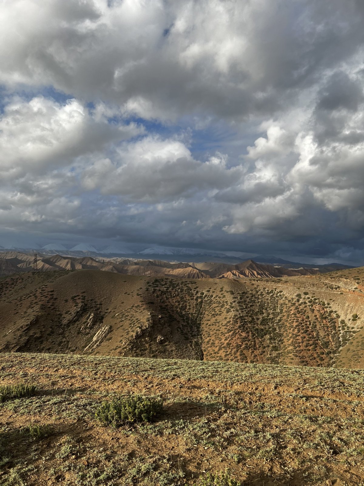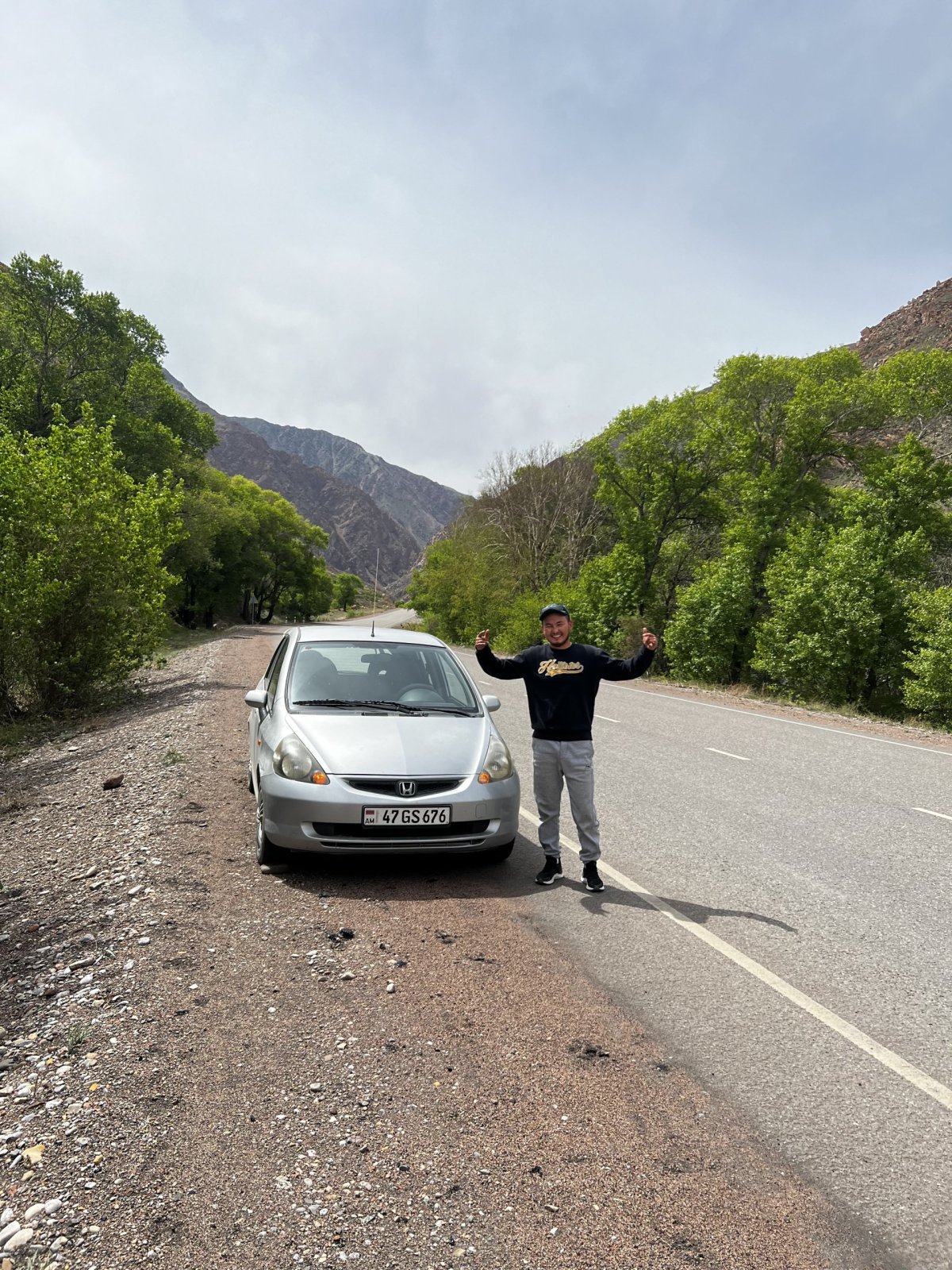 Sedím na šutru a přemýšlím co dál. Objízdná trasa je dlouhá cca 750 km namísto přímých 200 km. Volám Aibekovi, že uvažuji o jeho nabídce. Odpovídá, že nabírá akorát svojí mámu a může pro mě přijet a vzít mě. Dalších 8h a 400km trávím v autě s Aibekem a jeho mámou. Oba zlatí, po cestě zastavujeme na jídlo, Aibek mi vypráví o jeho prací, rodině i životě v Kyrgyzstánu. Voláme i jeho sestře, jakožto učitelce angličtiny. Moje ruština je totiž dost primitivní a některé věci si nejsme schopni vysvětlit v ruštině. Během hovoru mi přijde, že jeho sestra mluví anglicky asi jako já rusky, ale sem rád, že mám možnost pokecat i se ségrou.