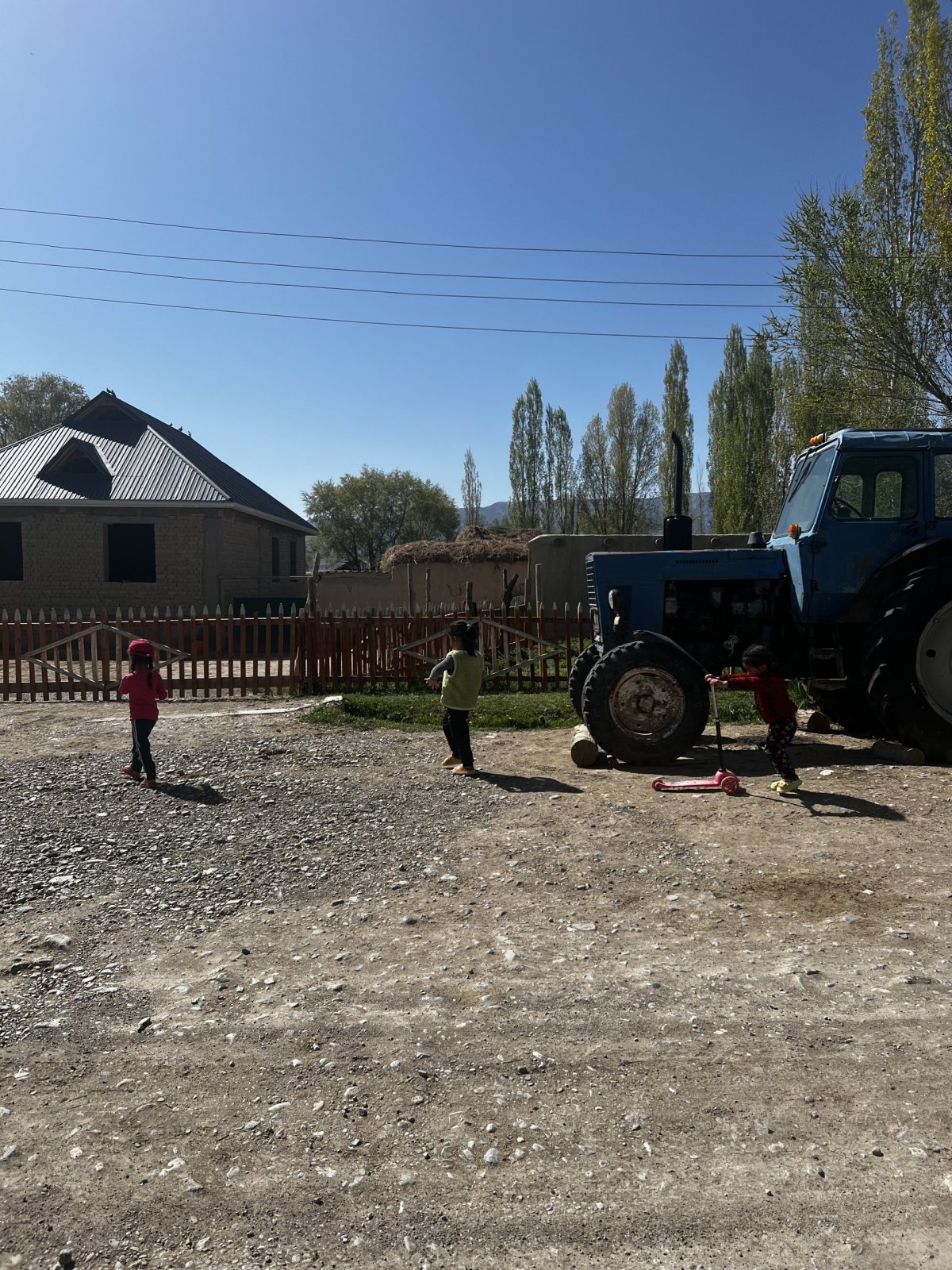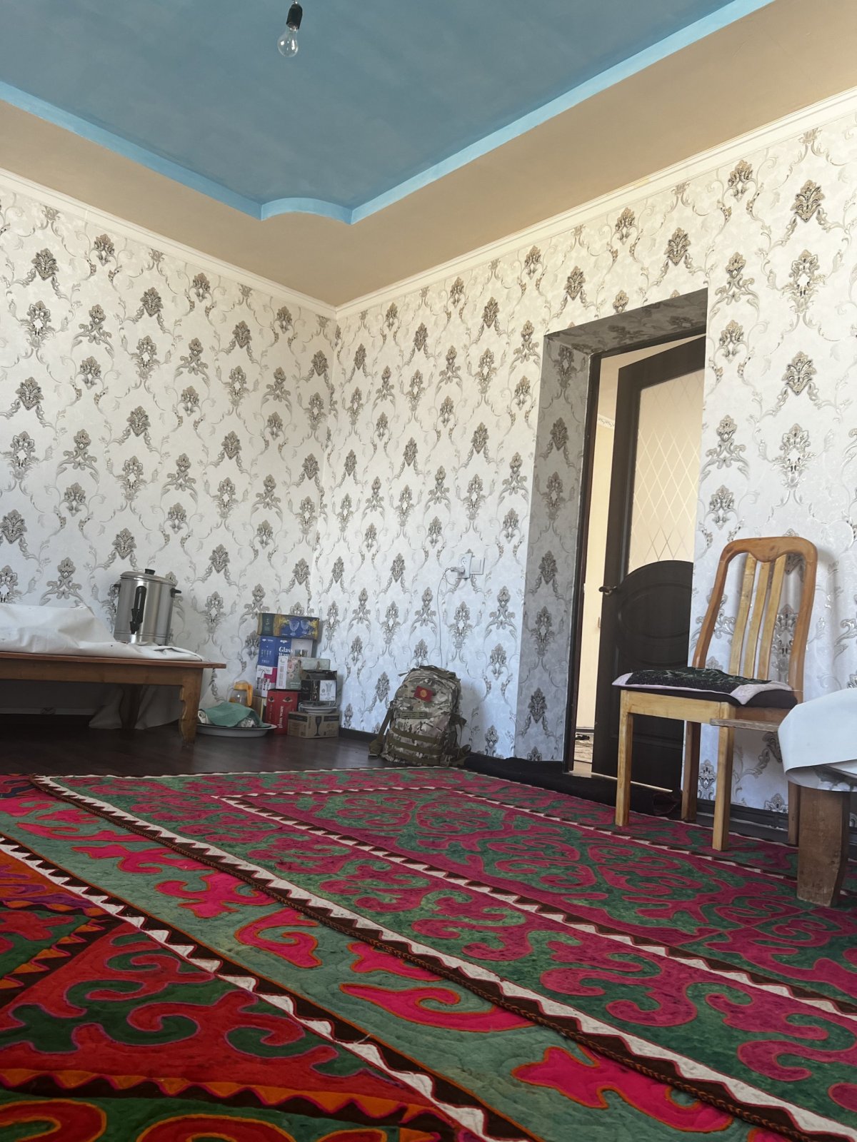 Po 2h své snažení vzdávám, v nejbližší vesnice klepu na místní a ptám se, zda dnes jede nějaké auto do Kazarmanu. Vypadá to, že jedno už jelo a to bylo všechno. Jdu tedy s kůži na trh a nabízím místním 5000 som, pokud mě do Kazarmanu někdo hodí. Místní někomu volají a za dvě hodiny by mělo přijet „taxi“. Nabízí mi odpočinek u nich doma a po čaji a vece a se natahuji v jejich obyváku. Procházím ještě jejich vesnici, která je opravdu horského rázu a užívám si, že tu sem asi jediný turista za poslední dobu.