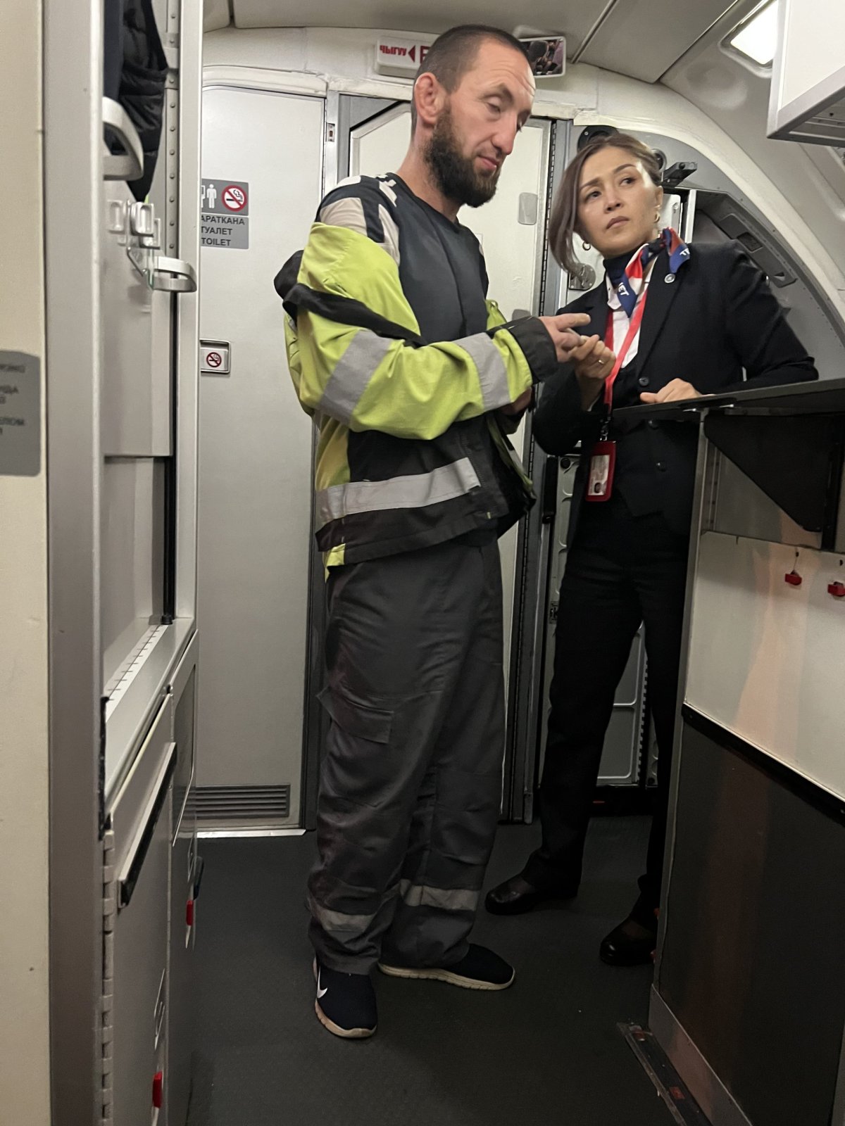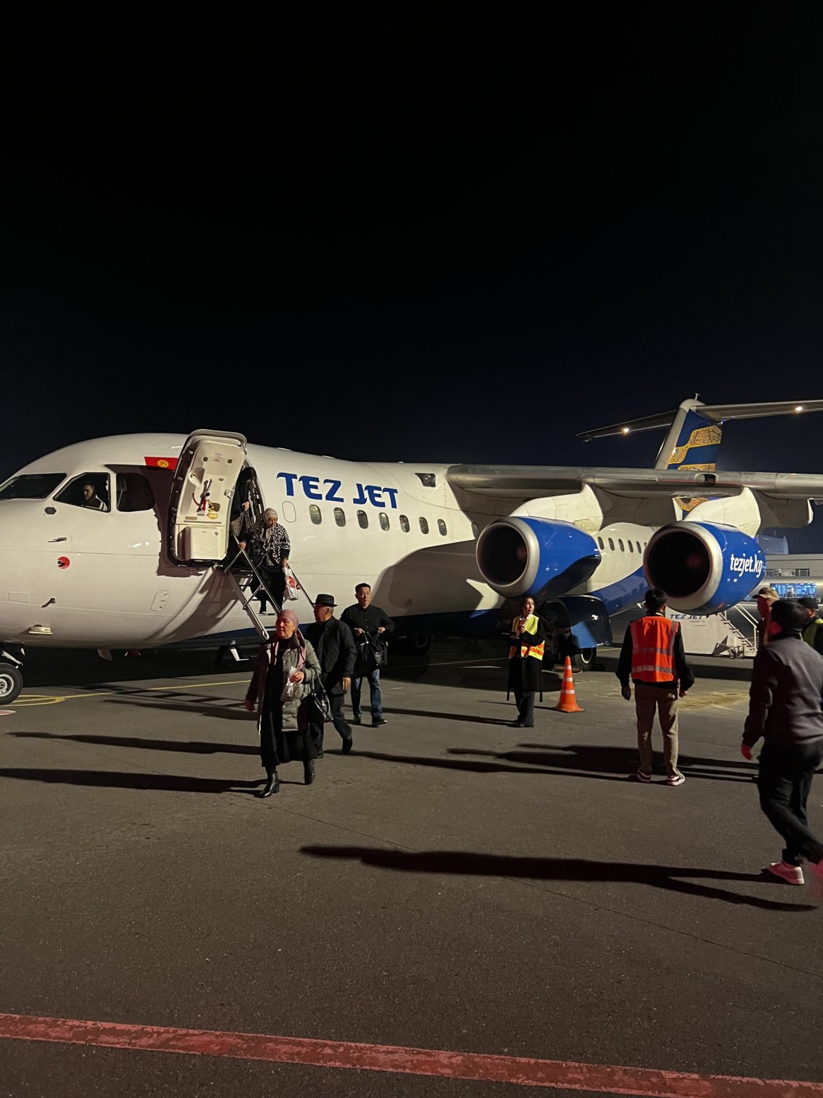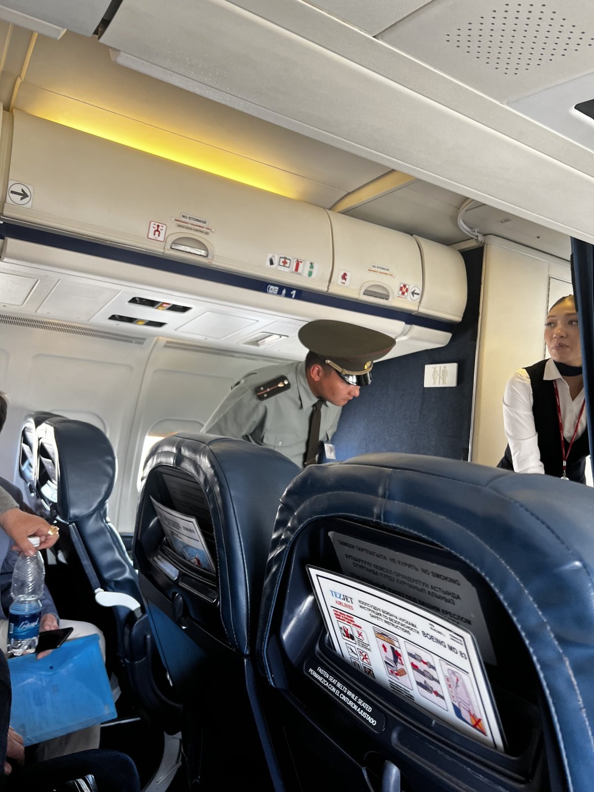 Nakonec se pro mě najde místo a letenku 5000 som – stejné cena jako včerejší taxi přes hory zatím nemusím ani platit. Dostávám palubní lístek a peníze nikdo nechce. Odcházím ke gatu a až 30 min před odletem si pro peníze přijde zaměstnanec společnosti, který mi lístek dal u přepážky:D Jak tohle funguje nevím, nicméně dávám mu 5000 som a těším se, že budu v Oši.