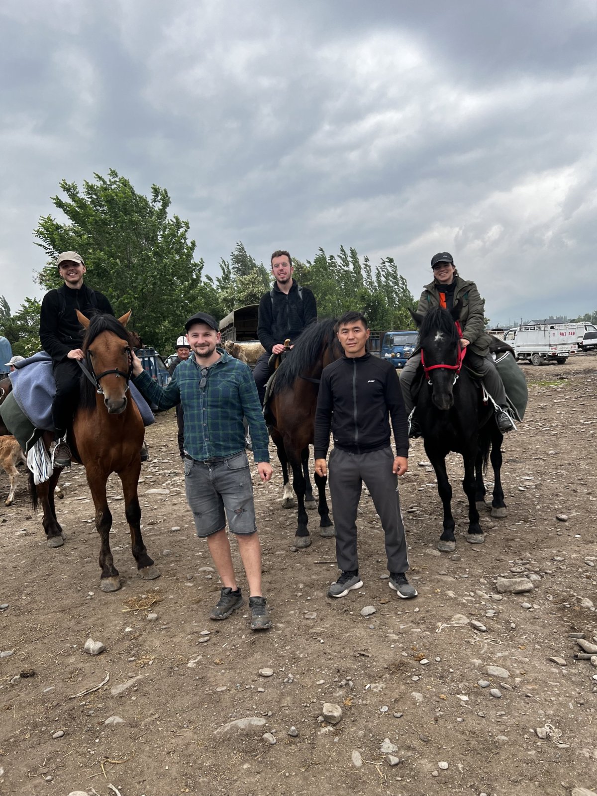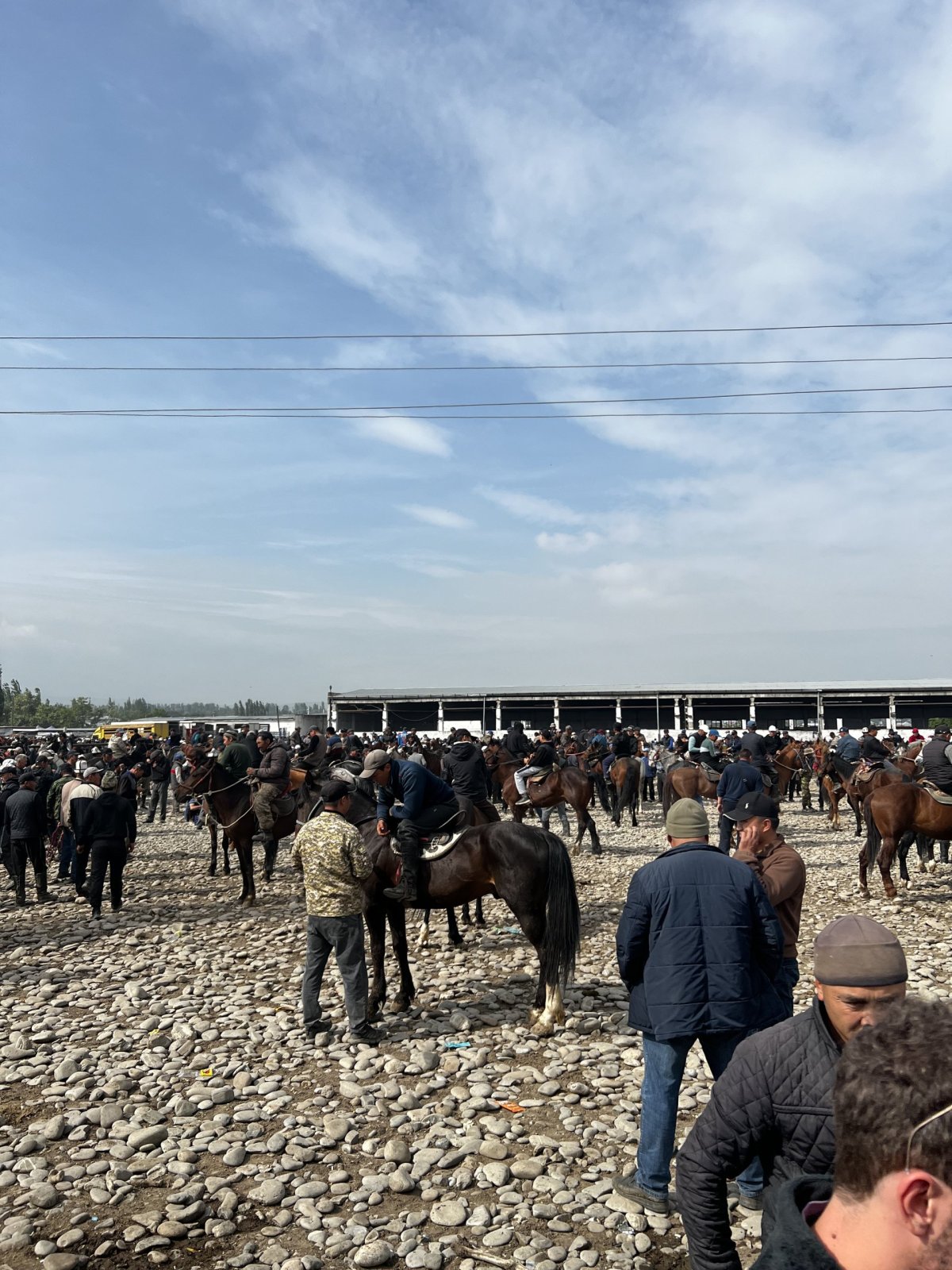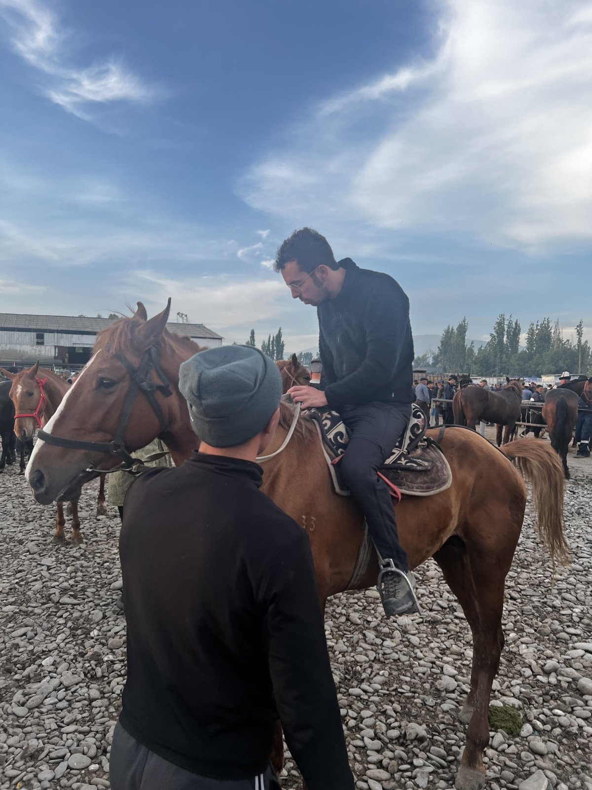 V neděli ráno vstáváme 3:30 a jedeme s místním „kontraktorem“ na trh. Po cestě vyzvídám jaký přesně mají Francouzi plán – nemají. Pouze koupit koně a dojet na nich k 500 km vzdálenému jezeru. Chtěli by to stihnout za měsíc. Když se zeptám, jak dostanou koně z města, tak přikývnou, že je to dobrá otázka. S místním kontraktorem postupně zkoušíme koně, kteří jsou poddajní a v dobré kondici. Je z čeho vybírat. Koní je tu asi cca 100. Za 3h skutečně nacházíme 3 koně od třech různých majitelů a domlouváme cenu cca 1000 EU/kůň. Během toho všeho kontraktor mluví pouze rusky a Francouzi anglicky. Používáme buď google nebo mě jako překladač.
