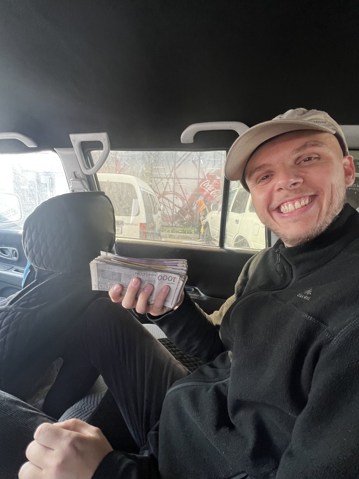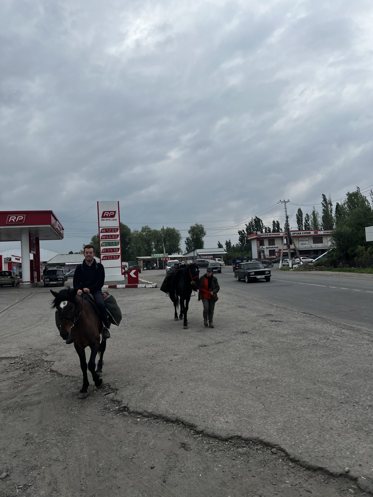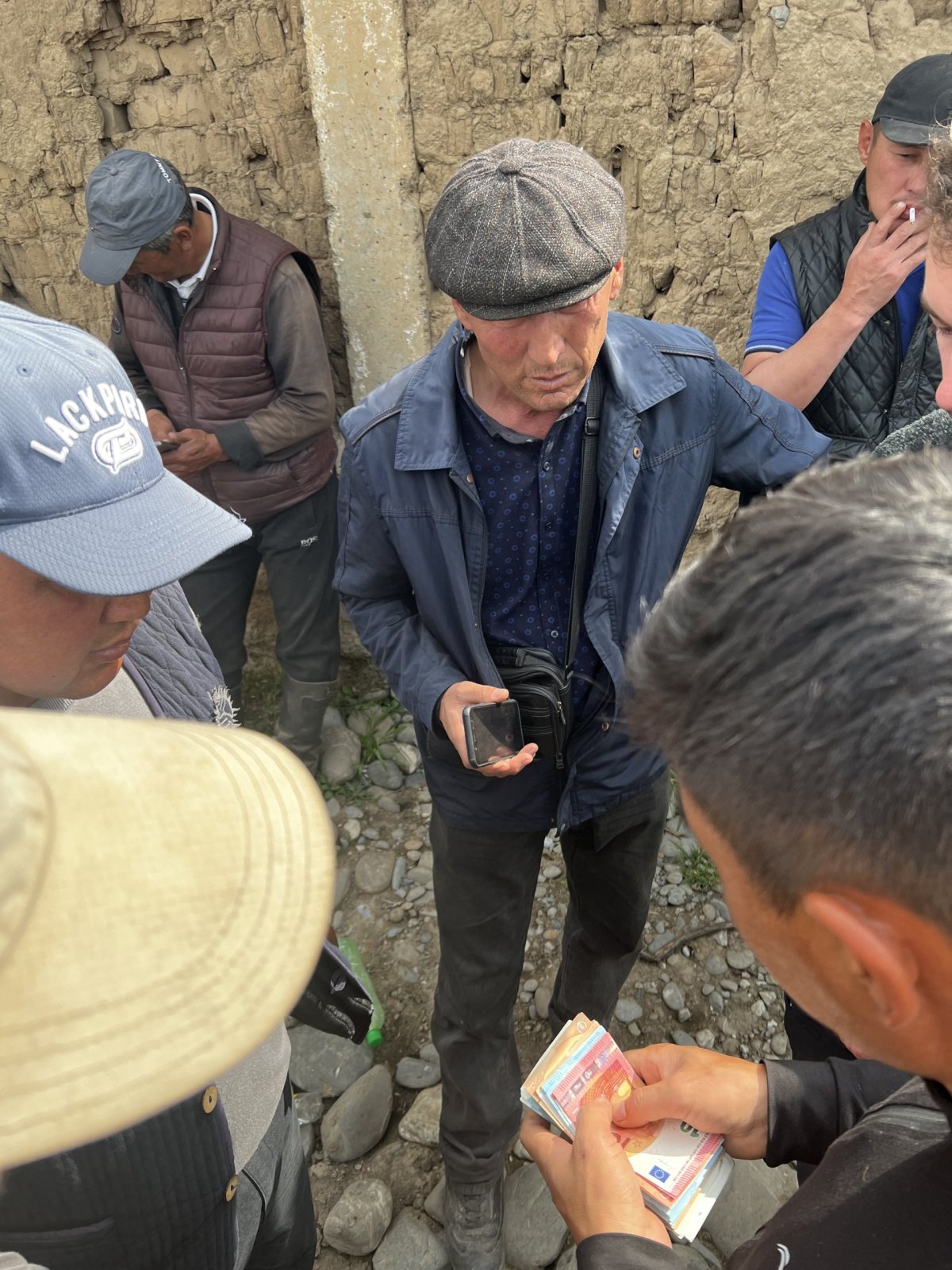 Při výběru nastává komická situace, kdy limit výběru je asi cca 3000 som a já tedy musím vybírat na 15x. Za mnou se tvoří fronta cca deseti nervózních Kyrgyzů, kdy mě okřikují ať už přestanu, že oni chtějí ještě taky nějaké peníze. Omlouvám se jim, že jsme koupili tři koně a potřebujeme hodně peněz, ať jsou prosím trpěliví. Obzvlášť starší ženy jsou ale agresivní. Nakonec uchráníme peníze a rychle odcházíme.