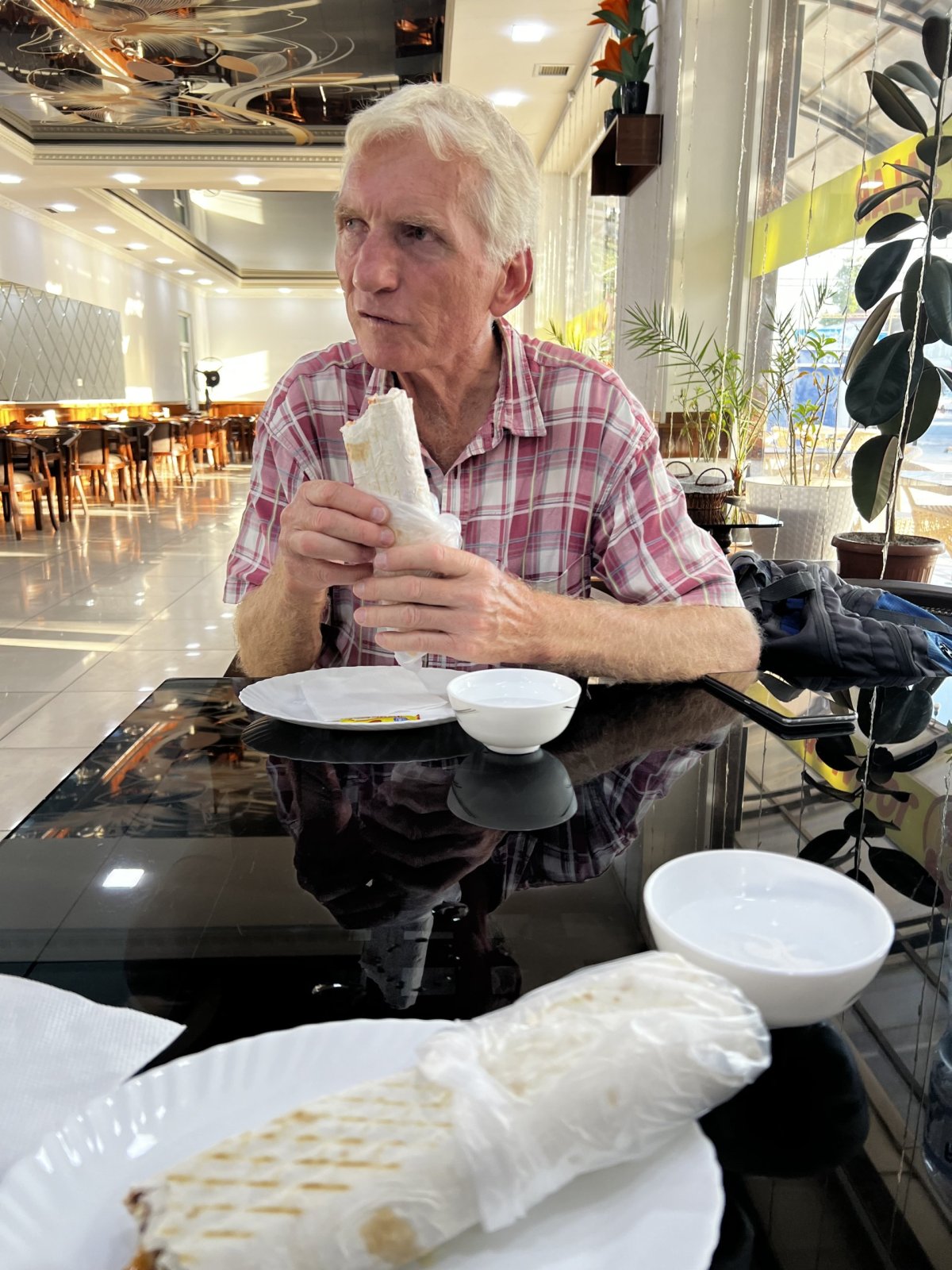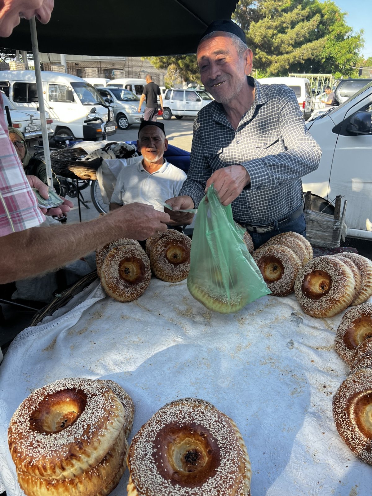 Ráno odjíždím maršutkou za 10 som na hranici s Uzbekistánem. Na hranicích vše ok a za hranicemi beru autobus do Andižanu. Esim od Airalo mi nefunguje a já věřím, že už si tu předraženou Esim vícekrát nekoupím. V Andižanu nic moc není a beru další autobus do Fergany, která je proslavené výrobou hedvabí či spíše nedaleký Margilan. Obecně každé větší město ve Ferganské kotlině je něčím známe a slavné. Klepu opět na hotel a zároveň potkávám staršího Švýcara, který mi nabízí ať se přidám k němu na prohlídku továrny na výrobu hedvábí. Souhlasím a za chvíli již platíme 30 000 sUm za komentovanou prohlídku továrny. Průvodcem je mladý komunikativní Uzbek se skvělým akcentem. Při jakýchkoli dotazech si užívám jeho nejčastější odpovědi "Aj vil šou ju" či "Ju vil si lejtr". Celkově je to vskutku zajímavé a rozhodně návštěvu továrny doporučuji. Se Švýcarem jdeme ještě na jídlo a procházíme místní trh a já se rozhoduji, že v 75 letech chci mít život jako tenhle vitální Švýcar:)