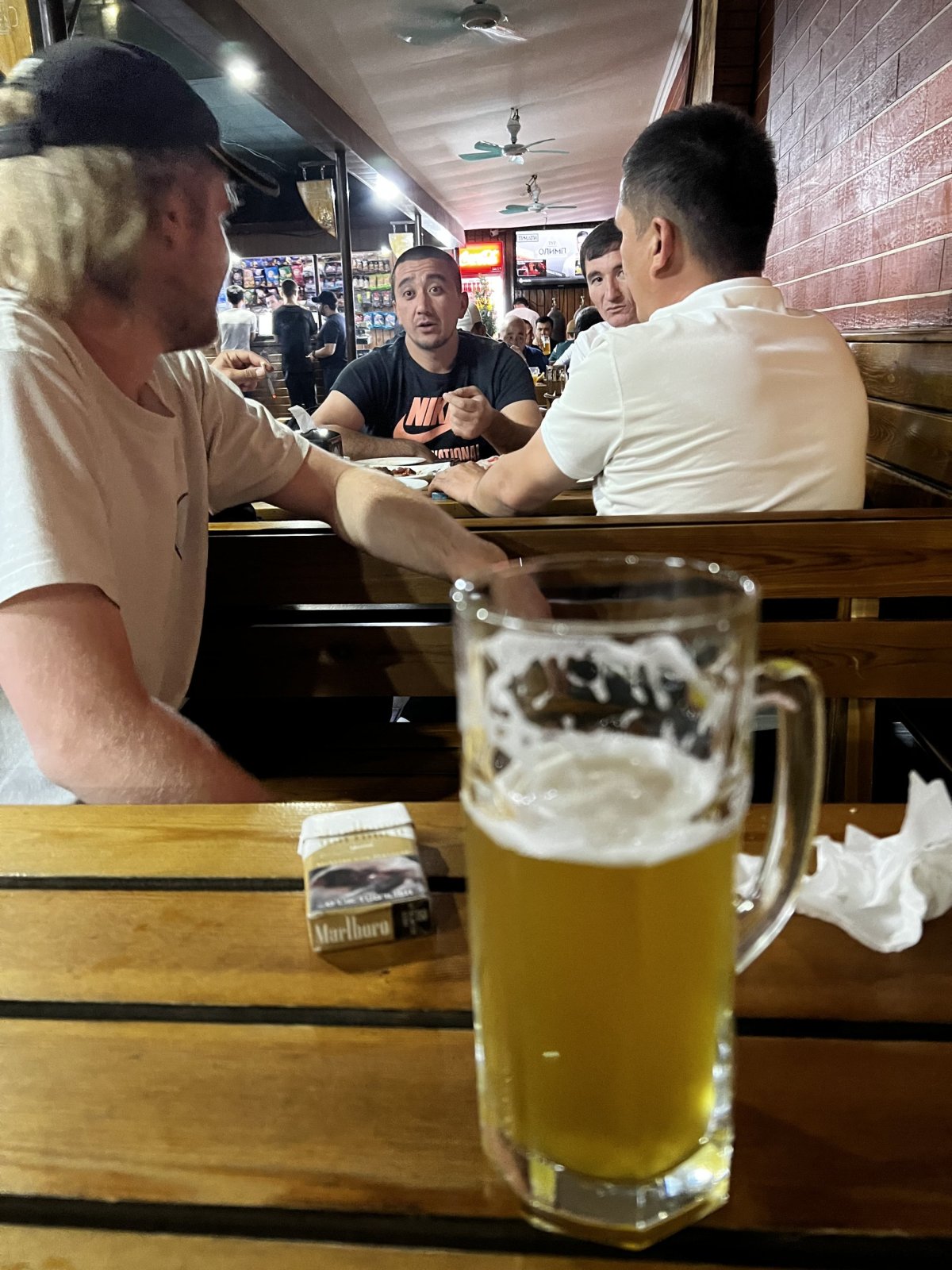Po příletu do Oše poprvé využívám rezervaci přes booking, protože již nemám sílu jít nezdarům naproti. Cesta mi nakonec zabrala dva dny a 1300km, namísto jednoho dne a 500km. Je 22:30, ubytovávám se a jdu ještě na točené zkažené pivo do místního baru.