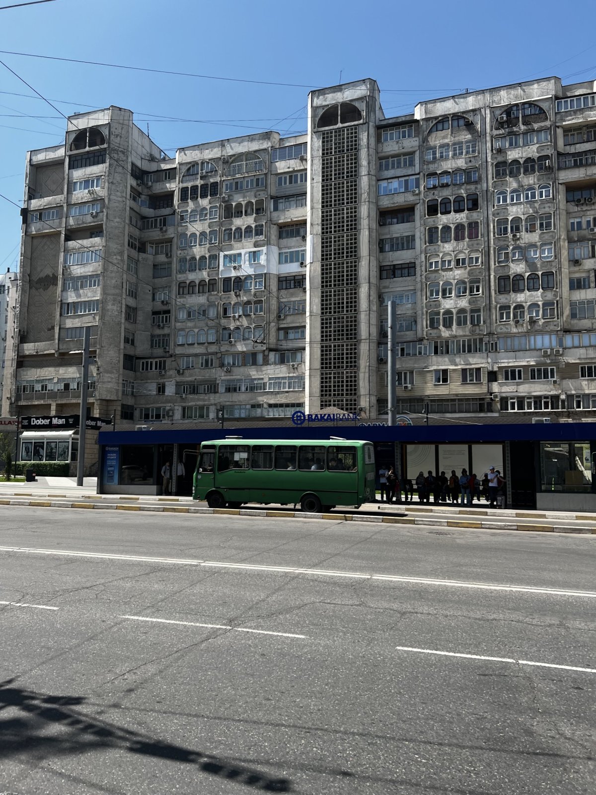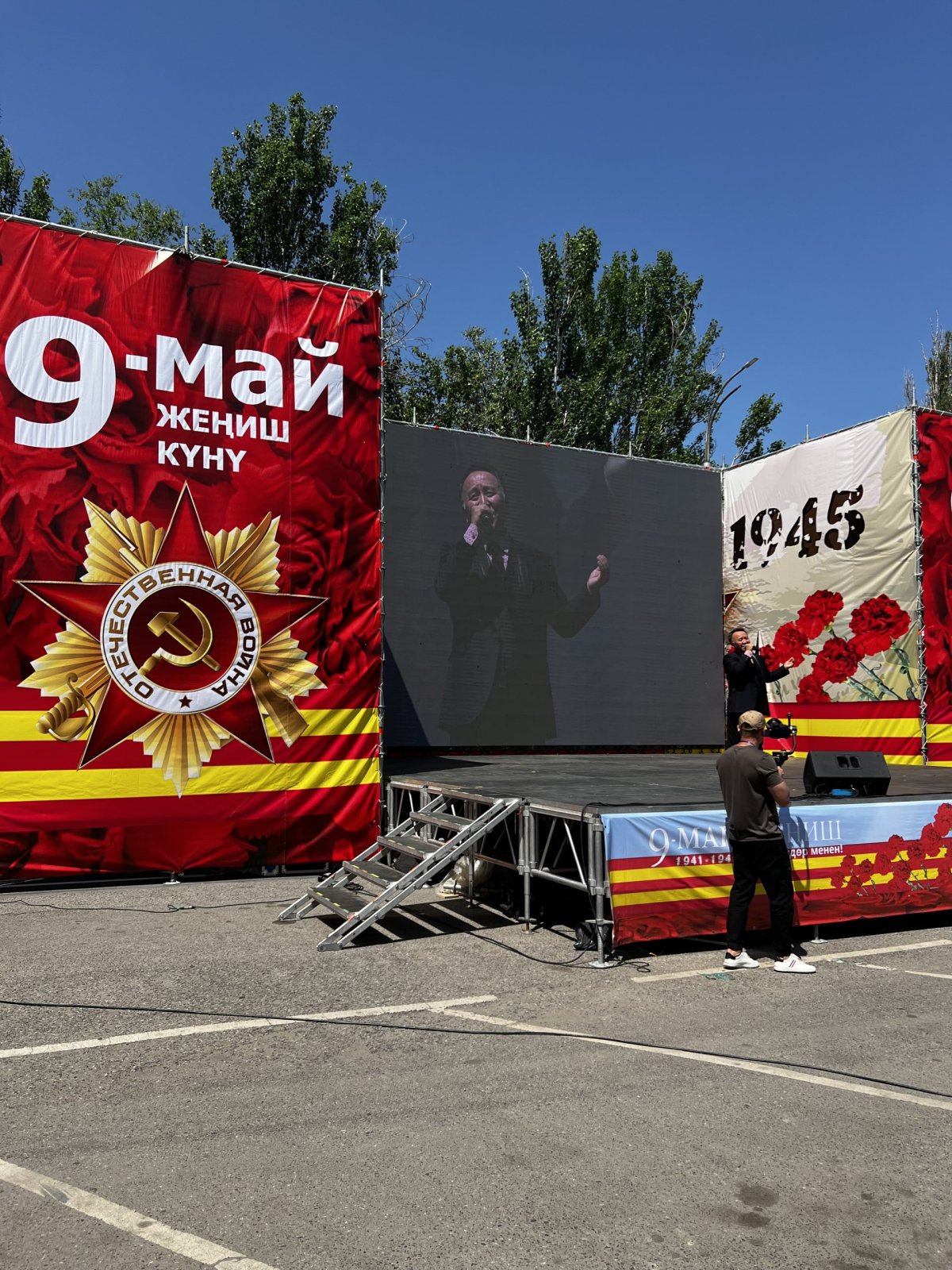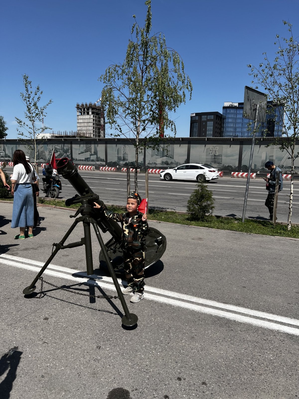 Je čtvrtek 9.května a já mám v plánu přejezd do Biškeku. Zároveň je v SSSR svátek pobědy (vítězství) a byla by škoda oslavy v Biškeku nevidět. Volím tedy opět letadlo za 4000 som. V Biškeku na letišti nasedám tentokrát na přistavený Gobus, který mě za 30 min a 200 som odveze přímo do centra. Asi lepší varianta oproti maršutce, která do centra nezajíždí.