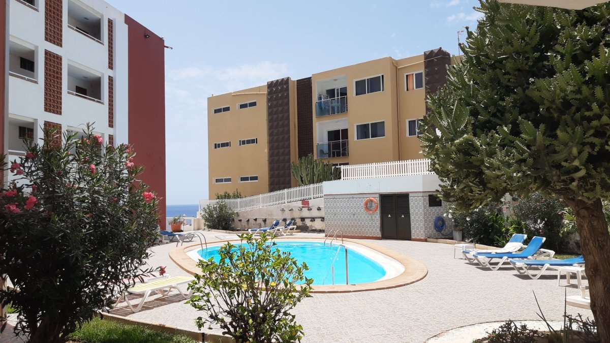 Naši dovolenou začínáme v pondělí uprostřed července ranním dálničním přesunem do Vídně, kde tak, jak je naším zvykem, parkujeme u Pandy. Pohodový let s Ryanem je na čas a my tak v pozdním odpoledni přistáváme v Las Palmas, kde si jdeme do podzemních garáží pro auto. Čekám davy lidí, jako při našich dvou posledních návštěvách v loňském roce, ale jsme tu jediní. Nafasování Toyoty Aygo (30 EUR na den s plným pojištěním) je otázkou chvilky a my tak po pár minutách valíme v hustém provoze na jih směr San Augustin, kde máme zamluveno ubytování v studiu v rezidenci El Mirador I. Jde o uzavřený komplex 40 ubytovacích jednotek v jedné budově, s vlastním bazénem. A především díky poloze na zhruba 20 vysokém skalnatém útesu s nádherným výhledem na moře, kdy moře tříštící se o skály pod námi je zde to jediné, co po celý pobyt slyšíme. Když si tak povídáme s maníkem, co nám předává ubytování, tak zmiňuje, že o pár dní dříve zde měli teploty až 47 stupňů …