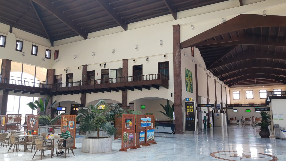 Letiště na La Gomera je moderní, vzdušné a vzhledem k množství procházejících cestujících i lehce prostorově předimenzované, protože denně je tu letů vrtuláků ATR-72 z Tenerife nebo GranCan doslova pár. A protože pořádek musí být, tak jediný pás na vyzvednutí zavazadel je překvapivě cedulkou označen jako … „Pás 1“. Auto si fasujeme zase u PlusCar, který zde, stejně jako na velmi podobném letišťátku na El Hierro, má dokonce vlastní kancelář v hale, a proces předání auta tak neprobíhá na parkovišti jako v případě čtyř hlavních velkých ostrovů, ale „civilizovaně“ za přepážkou. Mladý maník je vysmátý a evidentně má radost, že ho vytrhujeme z denní nudy, i když jsme z našeho letu u něj jediní. Fasujeme VW Polo (28 EUR na den), zaparkované pouhých 30 metrů od vchodu a vyrážíme z poloprázdného ospalého letiště na ubytování. To máme na západě ostrova La Playa ve Valle Gran Rey.