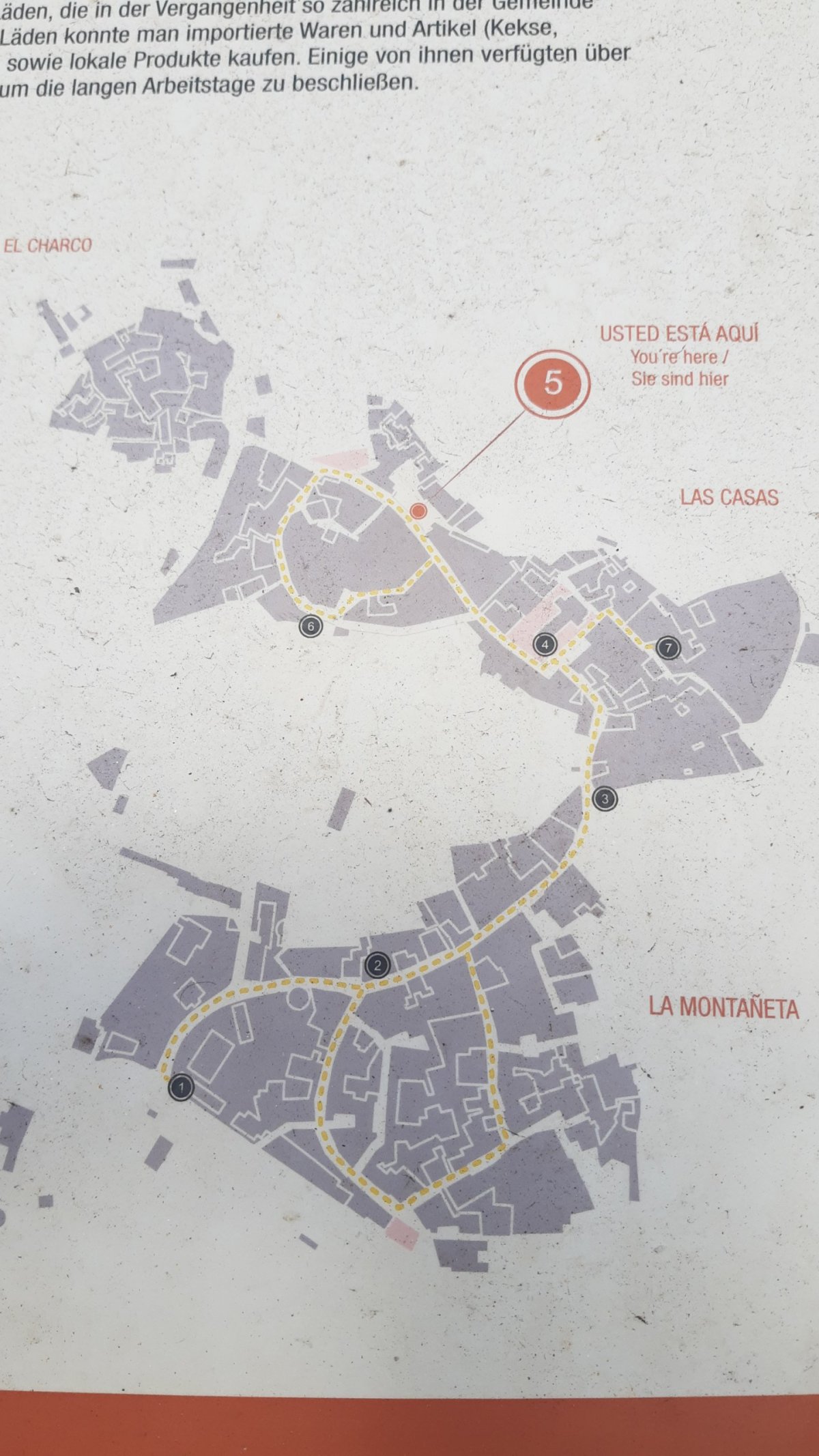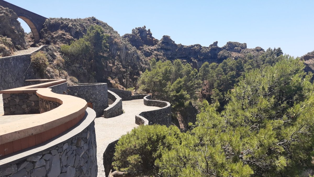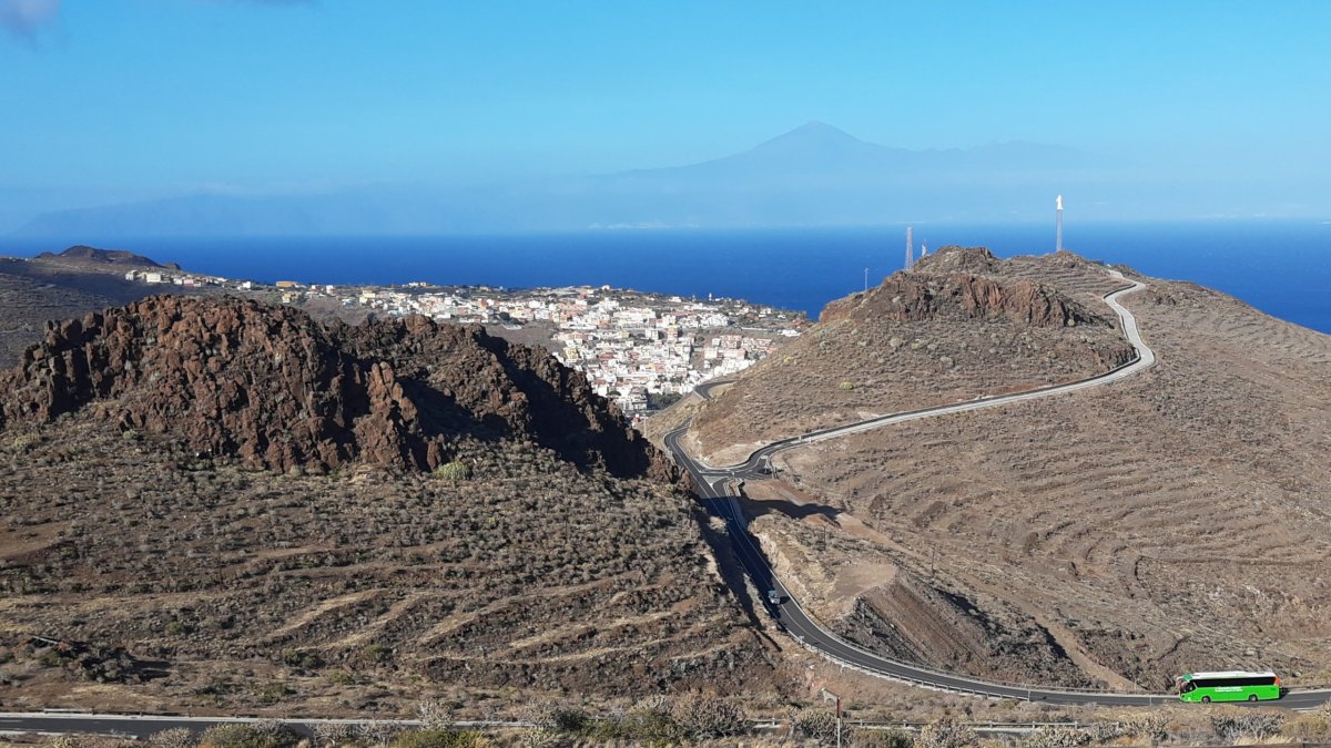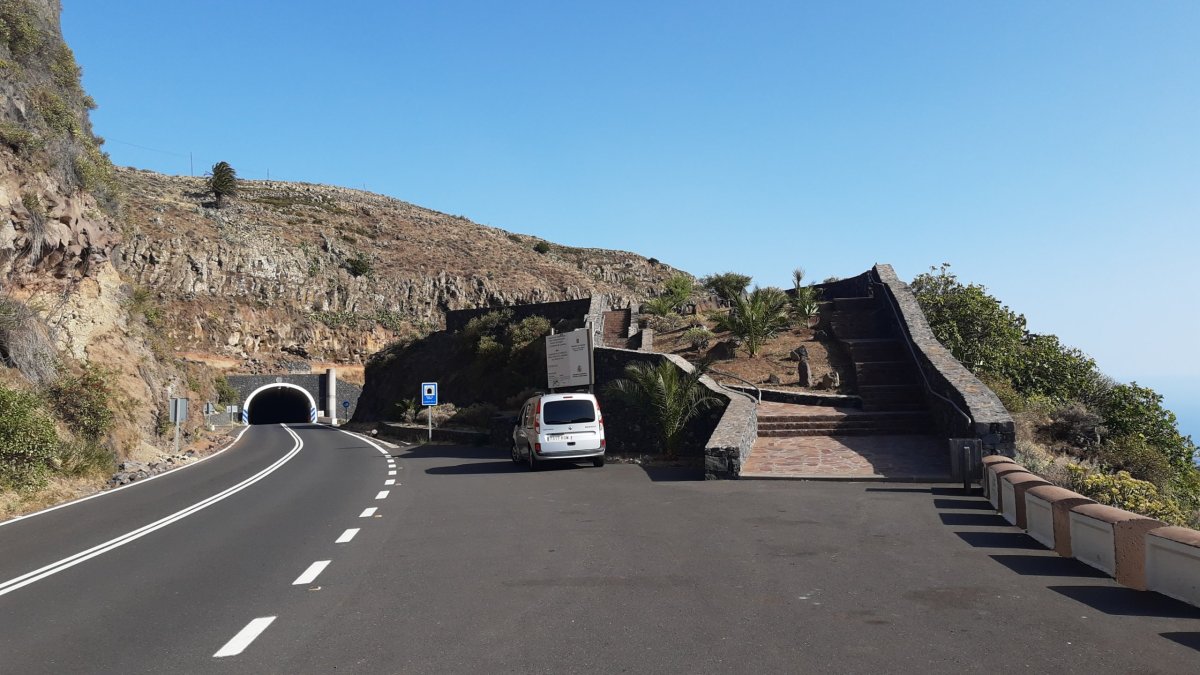 Pomalu se vracíme na jih ostrova a předtím, než nastoupáme do středu ostrova, dáváme si nějaké občerstvení v místním typickém baru u hlavní cesty. Pak prokličkujeme úzkou cestu přes vísku La Palmita s krátkou zastávkou u místní kapličky. Už na jižní straně ostrova jedeme po místních cestách CV-17 a CV-18 přes Igualero, kde je u kostelíku zcela výjimečný památník. Jde o zřejmě jediný památník na světě, který je věnován jazyku. A to tomu místnímu, pískacímu. Další zastávku máme v centru vesničky Chipude. Z této části ostrova je krásný výhled na stolovou horu La Fortaleza.