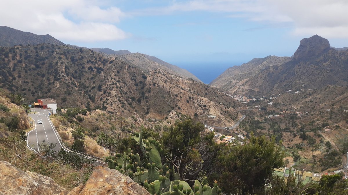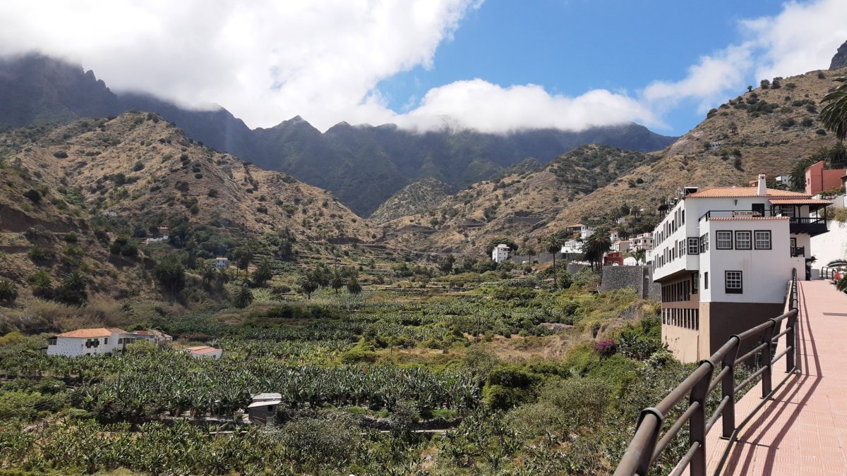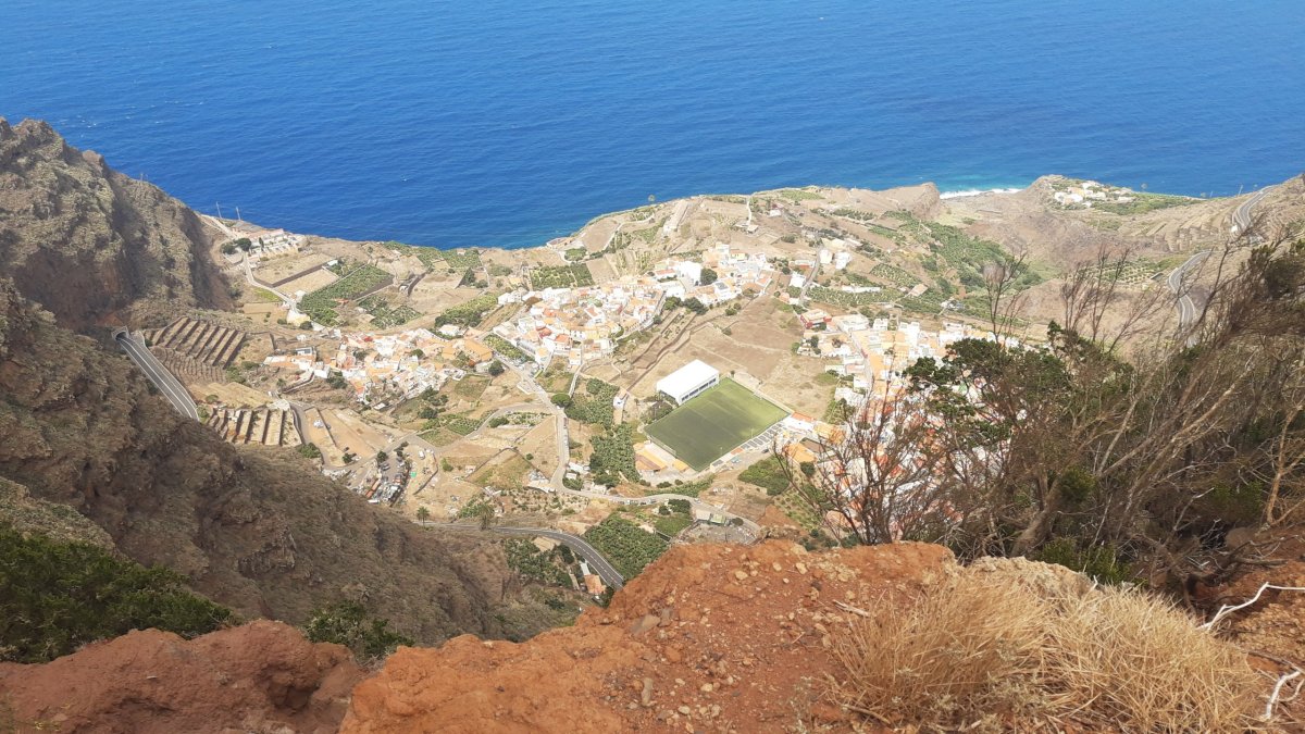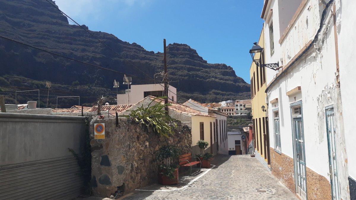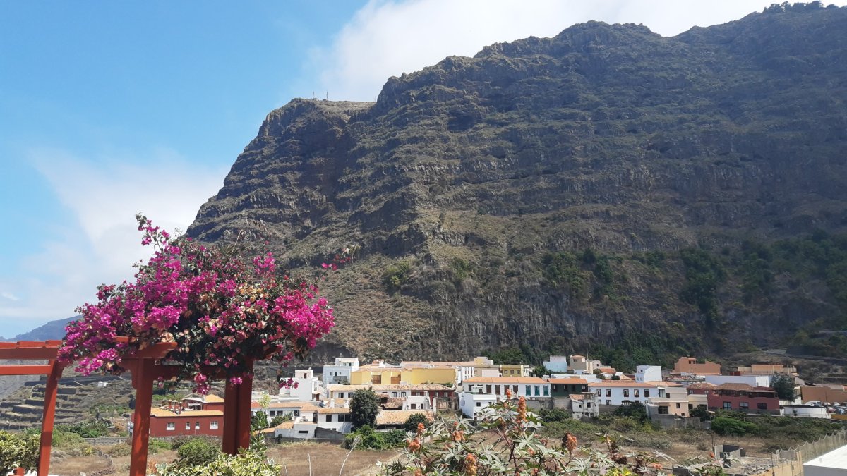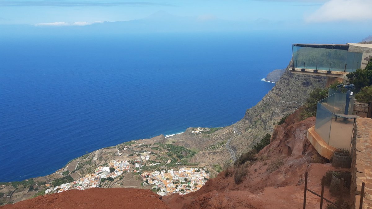 První kratičkou zastávku máme u kostelíku El Retamal, který je v ostré vracečce přímo u silnice a od kterého je nádherný výhled dolů do údolí. Pokračujeme do Arure, kde zajíždíme k místnímu kostelíku a pak na místní velkou vyhlídku, odkud je vidět západní část ostrova. Cestou do kopců pak nad Arure zastavujeme na vyhlídce de Alojera, kde opět velmi silně vyfukuje. Na hřebeni, na jedné z doslova hlavních křižovatek ostrova, se dáváme doleva a sjíždíme z kopců do městečka Vallehermoso, které je sevřeno mezi horami. Naším cílem je vesnice Agulo, která je turistickým cílem a zajímavostí ostrova. Vesnice je prezentována jako ta nejhezčí na ostrově. Což je pravda, ovšem těch vesnic tu na druhou stranu na celém ostrově zase tolik není. Napřed zajíždím o kousek dál, kde jsou z cesty vidět zbytky mola, které bylo v historii hlavním zásobovacím a obchodním uzlem ostrova, spojeným s vnitrozemím dokonce lanovkou.