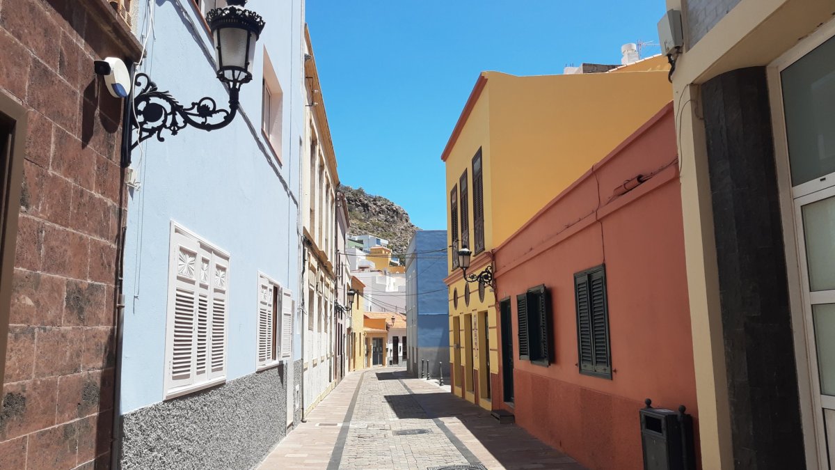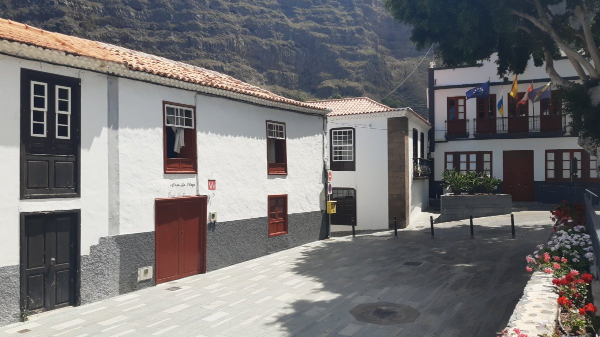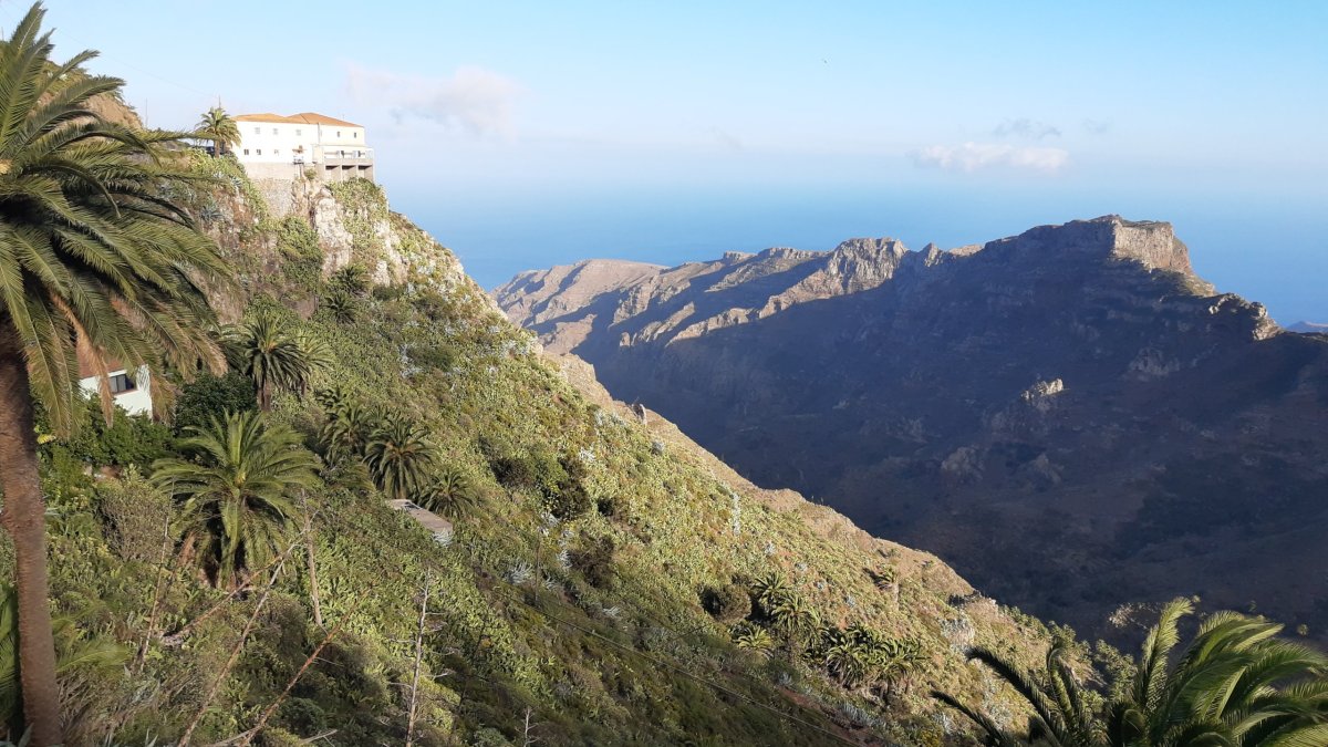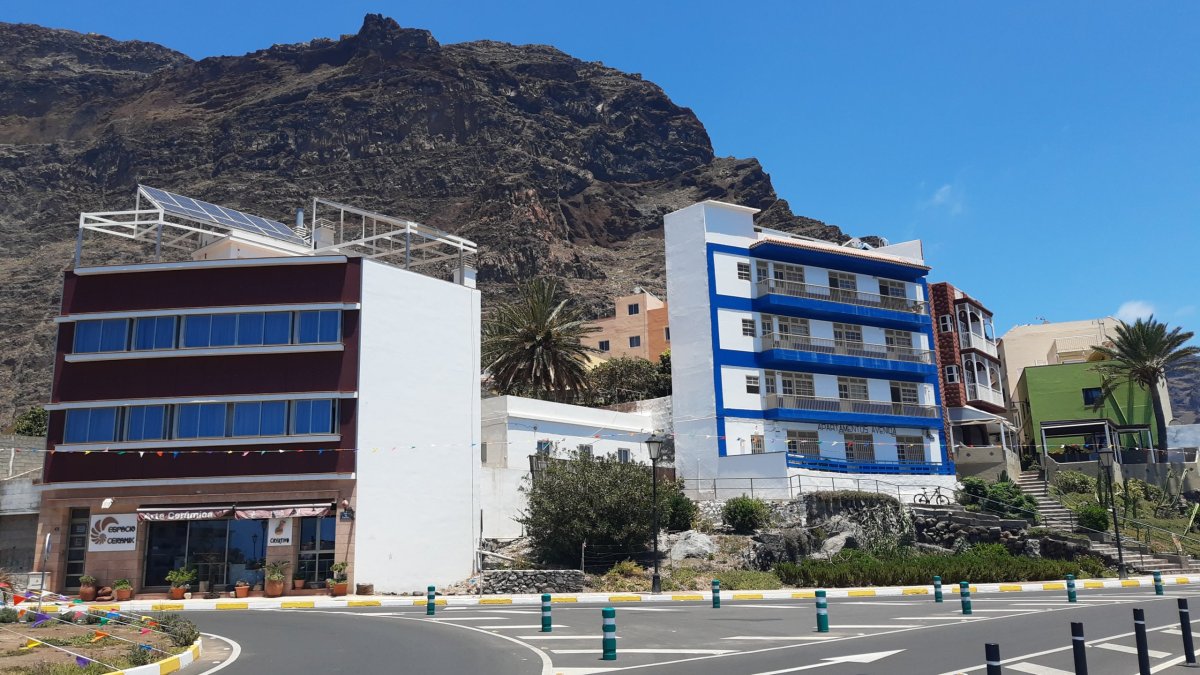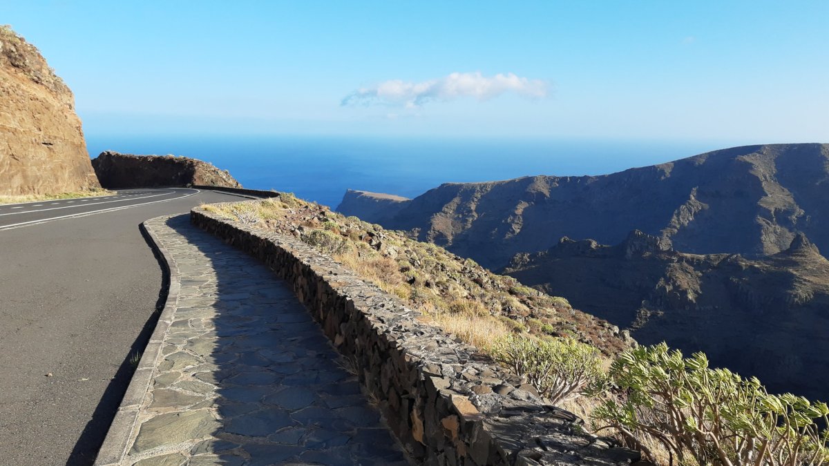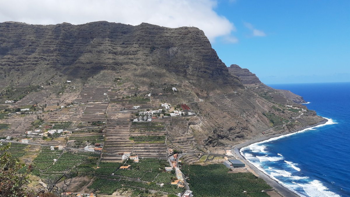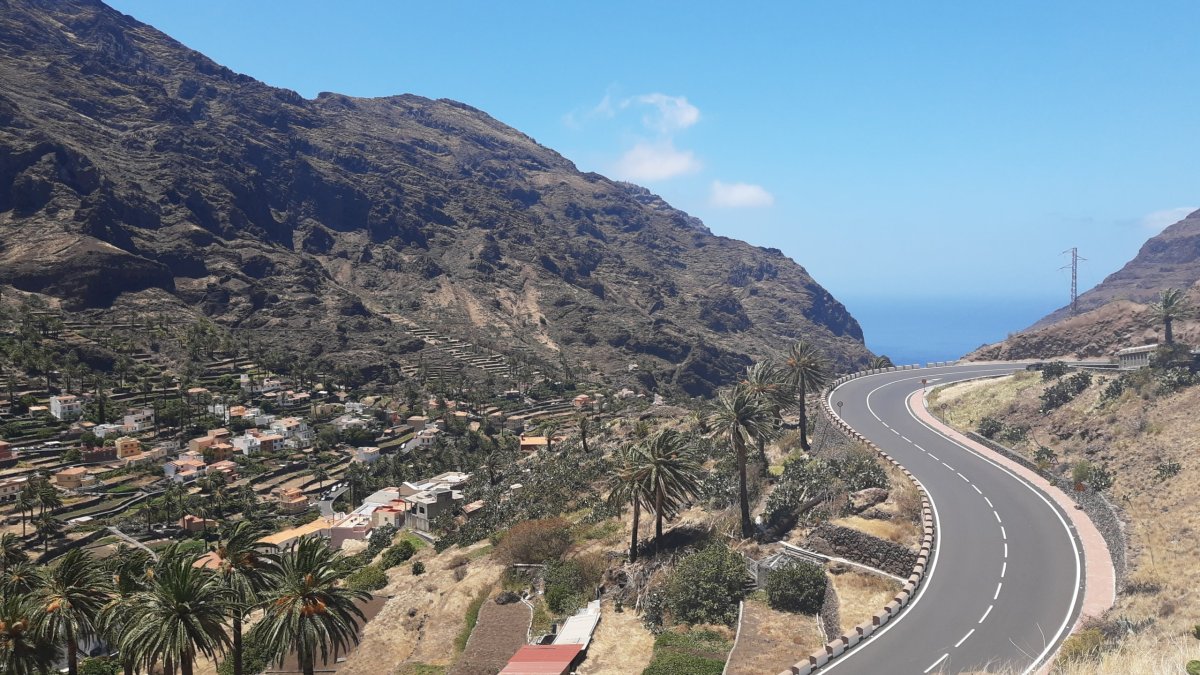 První kratičkou zastávku máme u kostelíku El Retamal, který je v ostré vracečce přímo u silnice a od kterého je nádherný výhled dolů do údolí. Pokračujeme do Arure, kde zajíždíme k místnímu kostelíku a pak na místní velkou vyhlídku, odkud je vidět západní část ostrova. Cestou do kopců pak nad Arure zastavujeme na vyhlídce de Alojera, kde opět velmi silně vyfukuje. Na hřebeni, na jedné z doslova hlavních křižovatek ostrova, se dáváme doleva a sjíždíme z kopců do městečka Vallehermoso, které je sevřeno mezi horami. Naším cílem je vesnice Agulo, která je turistickým cílem a zajímavostí ostrova. Vesnice je prezentována jako ta nejhezčí na ostrově. Což je pravda, ovšem těch vesnic tu na druhou stranu na celém ostrově zase tolik není. Napřed zajíždím o kousek dál, kde jsou z cesty vidět zbytky mola, které bylo v historii hlavním zásobovacím a obchodním uzlem ostrova, spojeným s vnitrozemím dokonce lanovkou.