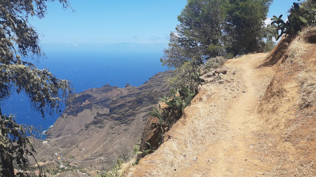 Další den dopoledne sedáme do auta a vyrážíme za poznáním ostrova, chceme objet jeho západní část. Do auta, i když je červenec, si mimo plavek přibalujeme i větrovky a svetry, neboť cestování po La Gomera znamená vždy nastoupat do středu ostrova a z něj se spustit dolů zvoleným směrem. A v horních hornatých partiích ostrova, pokrytých mlžnými lesy, často velmi silně fouká, teplota je výrazně nižší než dole u pobřeží. A také, často je střed ostrova schovaný v mlze a mracích.