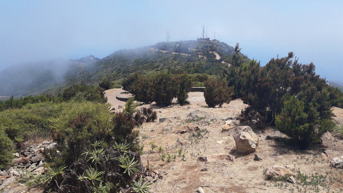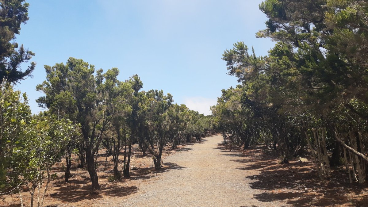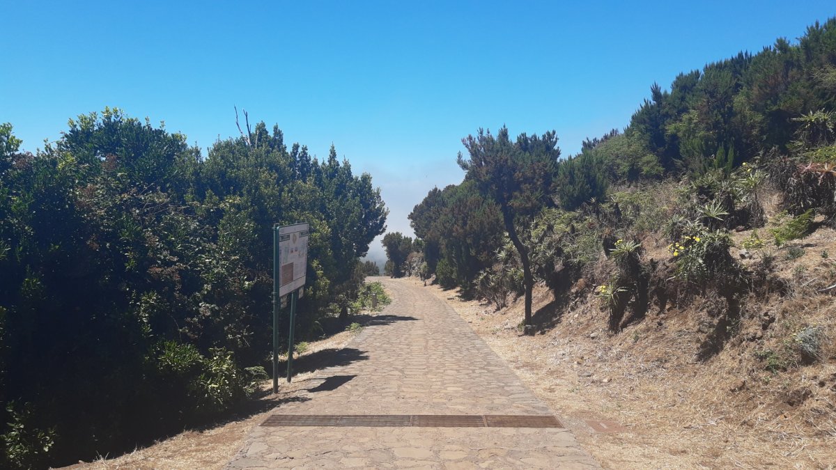 Poslední celý den pobytu na ostrově máme v plánu zdolat nejvyšší vrchol ostrova – Alto de Garajonay, kdy v tomto konkrétním případě slovo zdolat znamená velikou nadsázku, neboť od křižovatky na hlavní cestě to znamená vcelku pohodovou vycházku ve vcelku plochém terénu ala Šumava. Vyrážíme za mlhy, ale ta se pak během chvíle rozpustí a my se pak z vrcholu, což je tak kilometr cesty a 130 výškových metrů od výchozího bodu, můžeme kochat výhledy na jižní část ostrova. Zpět na parkoviště jdeme po okružní značce a pak se jdeme projít kousek i po další značené trase, kde nás pobaví značka práce na silnici. Podobně jako o rok dříve na El Hierro … uprostřed ničeho, kde parta místních čistí les okolo stezky od nějakých náletů. Na jednom plochém hřebínku se nám otevře opět krásný výhled na Teide. Poté se vracíme do La Playa a den končíme až do západu slunce pobytem na pláži.