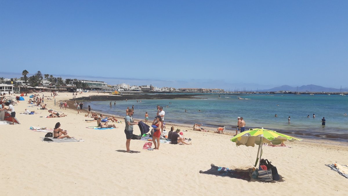 Další den si děláme odpočinkový, plážový. Letovisko La Playa, kde pobýváme, tvoří spolu s pár podobně malými kousek na jihovýchod krátký, asi dva kilometry dlouhý pás s pobřežní promenádou turisticky nejvytíženějšího pobřeží ostrova. Slovo nejvytíženější bych dal do uvozovek, neboť i tak jde o velmi klidnou oblast ve srovnání s většími Kanárskými ostrovy Je zde několik písečných pláží a v době našeho pobytu parádní koupačka s možností sledovat západ Slunce do moře. Ten my sledujeme na Playa del Inglés na západní straně oblasti. Tato (nuda) pláž není dozorována plavčíkem a cedule varují před koupáním, neboť moře je zde vcelku divoké. A i tabulky u pláže upozorňují na desítky utonulých v minulosti.