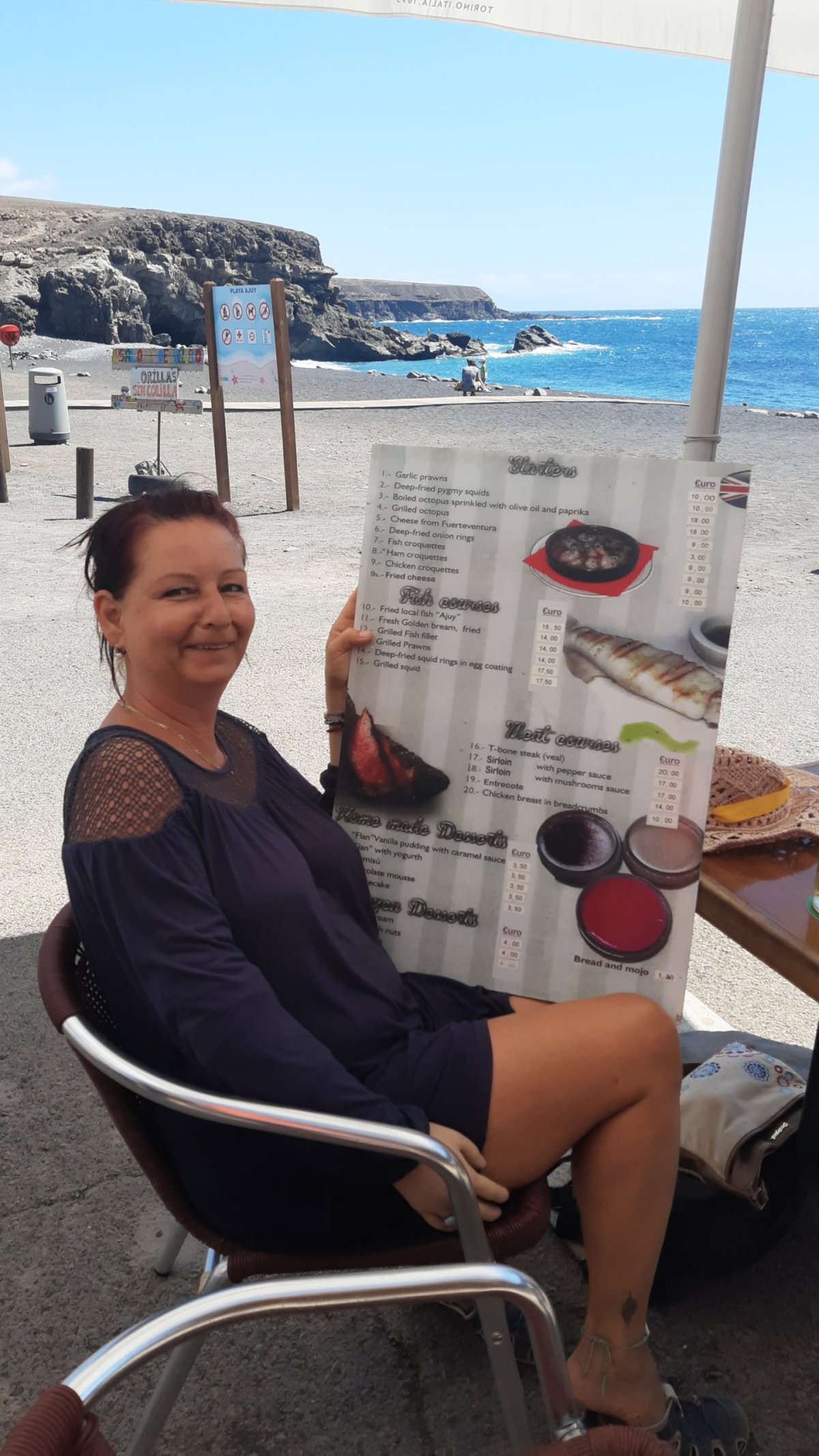 Pobyt zde bereme už jen jako čistý relax s návštěvou nám již dobře známých míst – výlet na Popcorn Beach a do El Cotillo s parádním koupáním na nedaleké pláži La Concha. Návštěva Betancurie se zjištěním, že místní hlavní parkoviště je již placené, takže příště je potřeba zaparkovat o kousek dál. Velmi pozdní oběd nebo brzká večeře v Ajuy, kde nám číšník místo běžného jídelního lístku dal ten velký reklamní od vchodu.