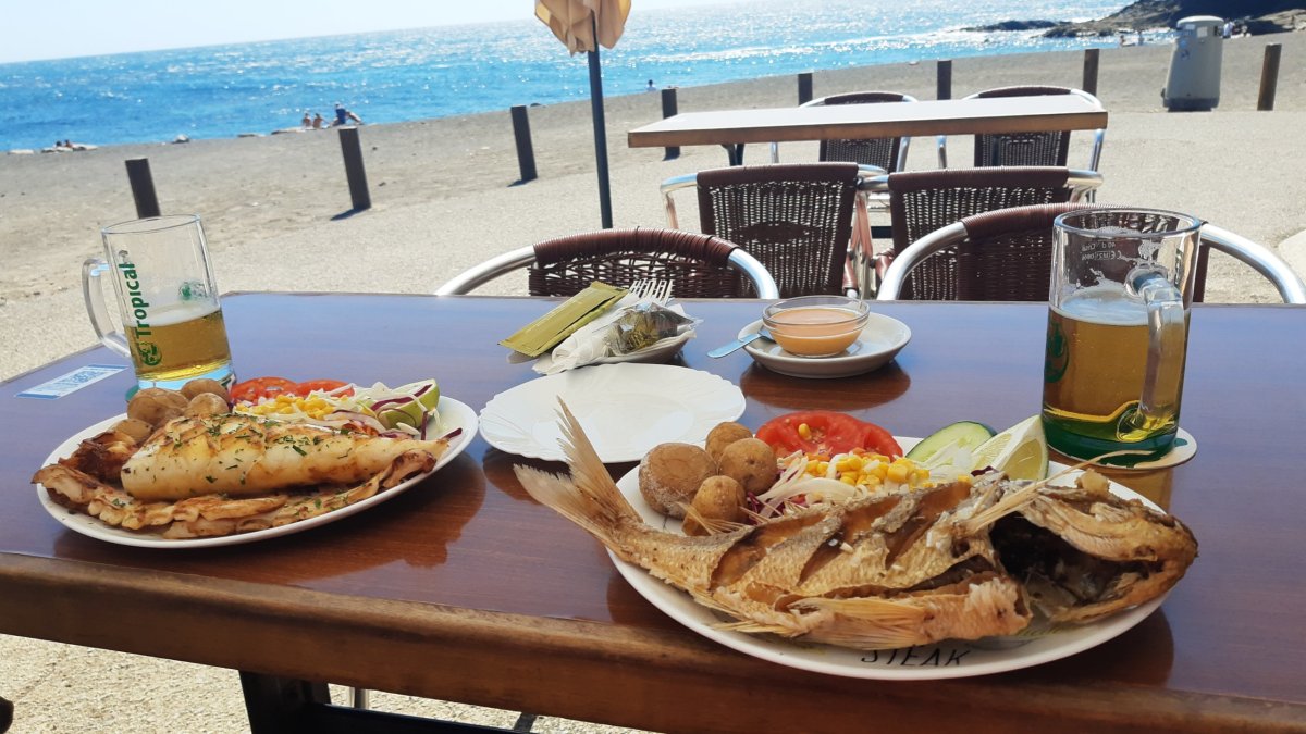 My máme ubytování v soukromém střešním apartmánu s klimatizací (70 EUR/noc), velkou zastíněnou střešní terasou a výhledem na majestátní 700 metrů vysoké skalní stěny kousek od nás. Paní majitelka nám předala instrukce pro check-in emailem, klíče máme v key boxu. A na pokoji překvapení. V lednici voda, dvě vychlazená piva. Na stole košík s ovocem, láhev vína. Místní marmeláda, palmový med, káva, čaj … prostě služby jak na velmi solidním hotelu. Po krátké prohlídce a procházce na nedalekou pláž děláme ve vedlejším bloku ve Sparu nákup základního proviantu.