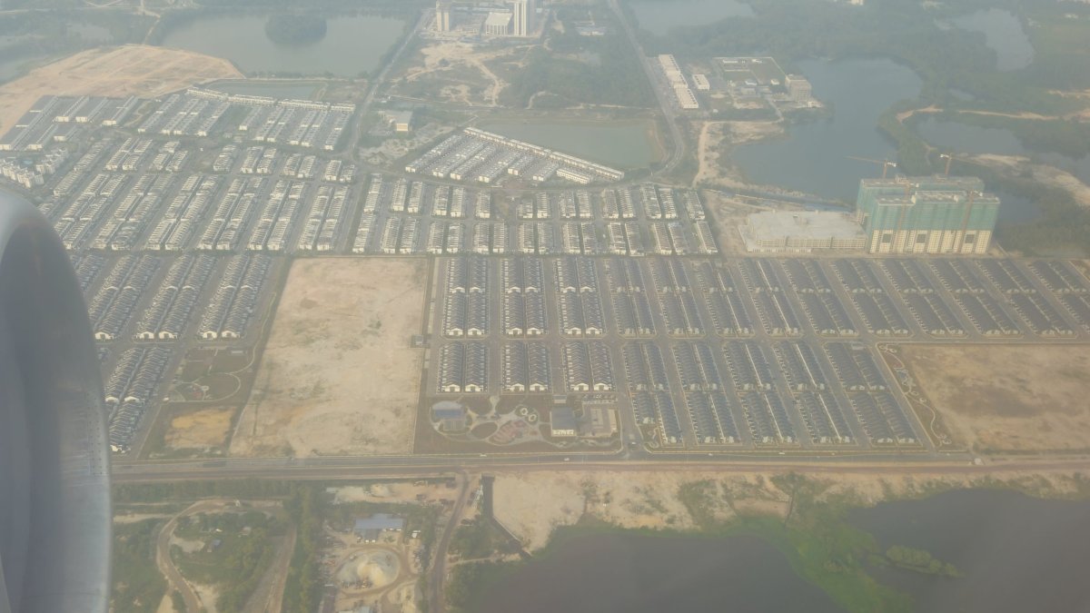 Fasujeme velký dům se třemi ložnicemi, dvěma WC, plně klimatizovaný. Pro nás na jednu noc zbytečně velký, ale co, byl nejblíž a za nejlepší cenu – 200 MYR (1.000 Kč). Je to jeden z uniformních domů, co jsme viděli shora. Desítky, možná stovky naprosto stejných domů v řadách vedle sebe, ve čtvrti, kde není vůbec, ale vůbec nic dalšího. Od taxikáře si bereme vizitku, kdybychom ho náhodou potřebovali. Ve finále si pár slovy přes Whatsapp domlouváme ranní odvoz na letiště s pronajímatelem – za 30 MYR (150 Kč). Maník je ráno na místě na minutu přesně a na letišti jsme v ranním minimálním provoze snad za 10 minut. Moc si s ním ale nepokecáme, dvěma prsty nám ukazuje, jak moc umí anglicky – little.