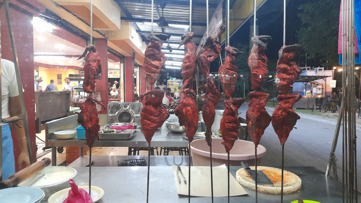 Odtud už jedem do Pantai Tendah, na úplně stejné místo kde jsme byli před pár dny. S tím rozdílem, že dnes je tu lidí na pláži snad třetina, tzn. skoro nikdo. Před soumrakem se zase přesouváme do Pantai Cenang, kde je večer na parkovišti kousek od centra food market. Několik restaurací a snad 20 stánků a food trucků. Sedáme do jednoho ze stánků a z obrázkového plakátu něco vybíráme, běžné ceny od 5 do 10 MYR za porci. Maník, co mistrně zvládá přípravu desítek porcí, to ale nemá úplně pod kontrolou, občas mu z jeho pánve vyšlehne dvoumetrový plamen a my se rozhlížíme, zda si fakt nemáme kousek odsednout, abychom nedopadli jako Týnuš Třešničková … Borec se jen směje, ale i on kontroluje, zda mu nechytla celta nad ním. Bereme si i dvě krabičky na ráno a cestou na apartmán ještě tankujeme za směšných 180 korun půl nádrže, abychom auto vrátili ve stavu, v jakém jsme ho převzali.
