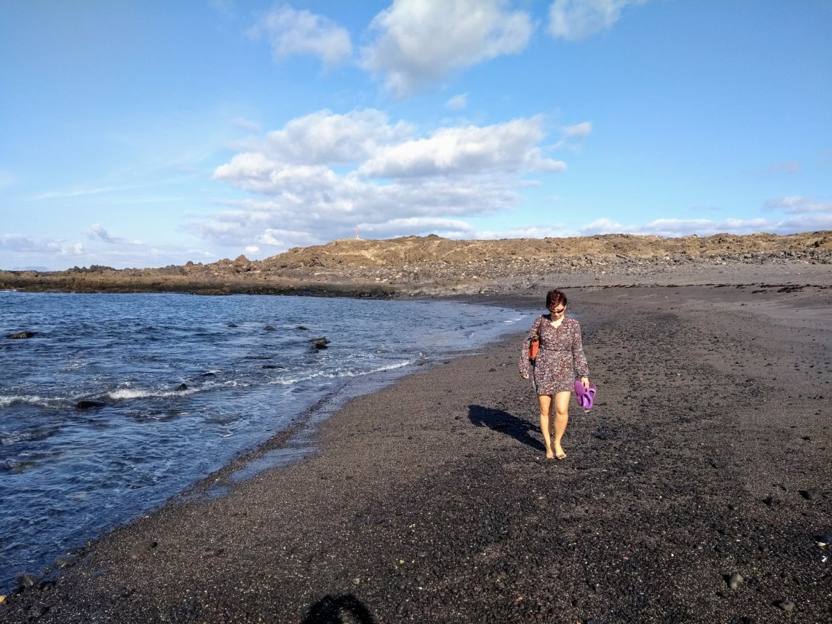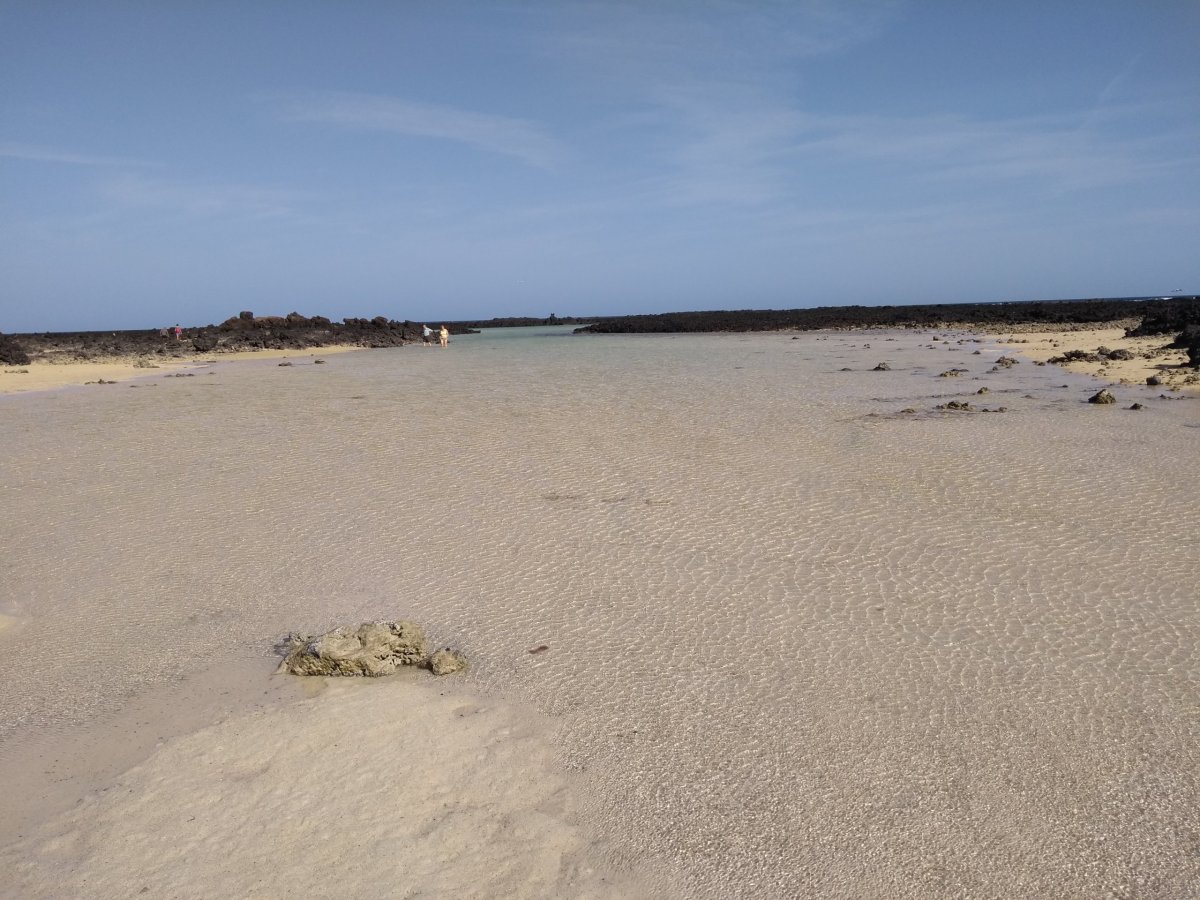 A zase tu máme poslední den naší dovolené. Balíme našich pár švestek, po snídani se odhlašujeme z ubytování a s naším fiátkem míříme na sever k přístavu Orzola, kde se chceme vykoupat v přírodních mořských bazénech u pobřeží. Nikde ani noha, voda parádně vyhřátá a parádně teplá. Má to jen jednu drobnou vadu na kráse – je zrovna odliv a vody je zde po kotníky až kolena, takže na koupání to není. Projdeme si pár jezírek a pak se autem vracíme zpět na jih s cílem najít nějakou pláž, kde strávíme dnešní odpoledne do večerního odletu letadla zpět do Katovic.