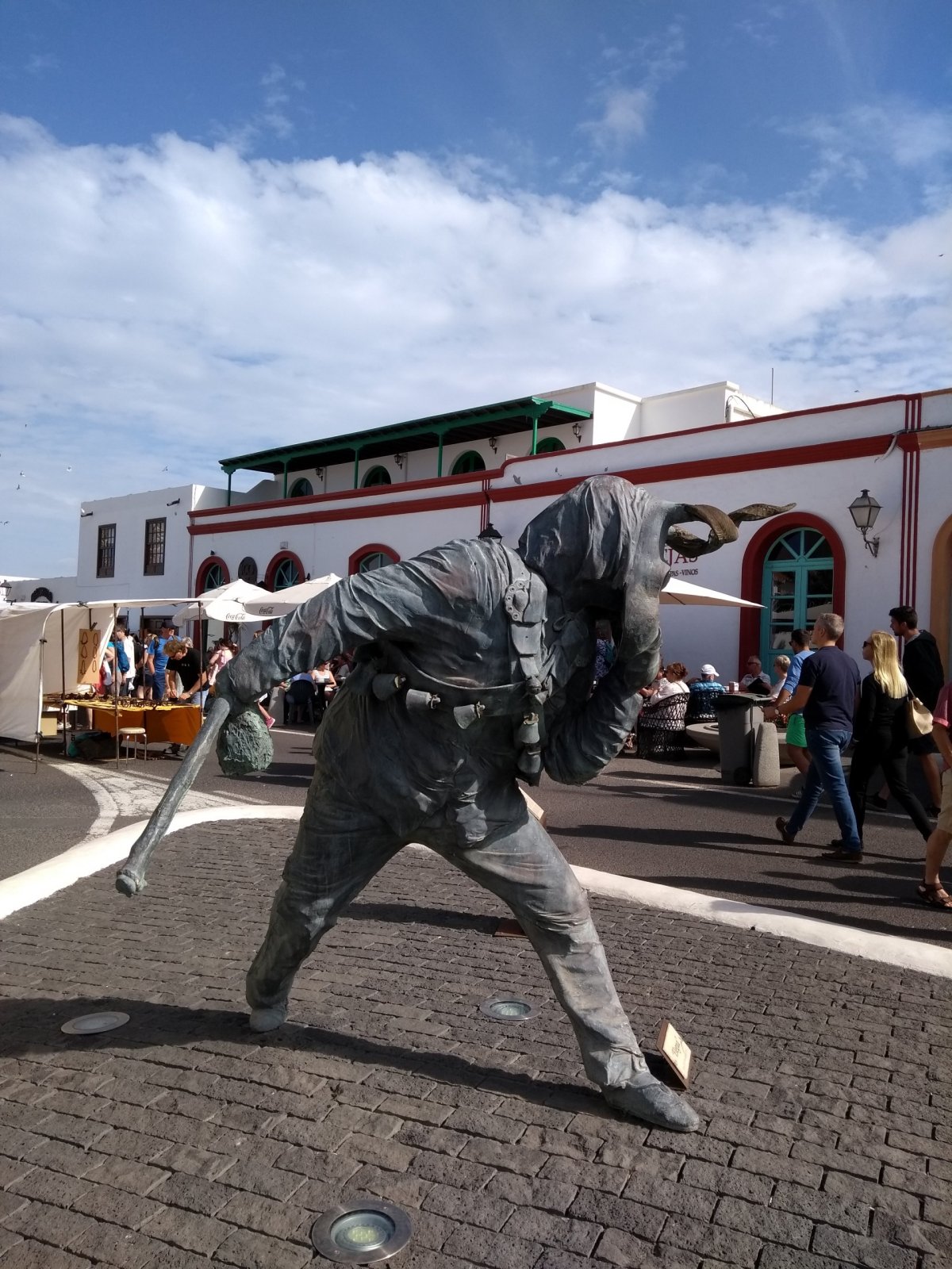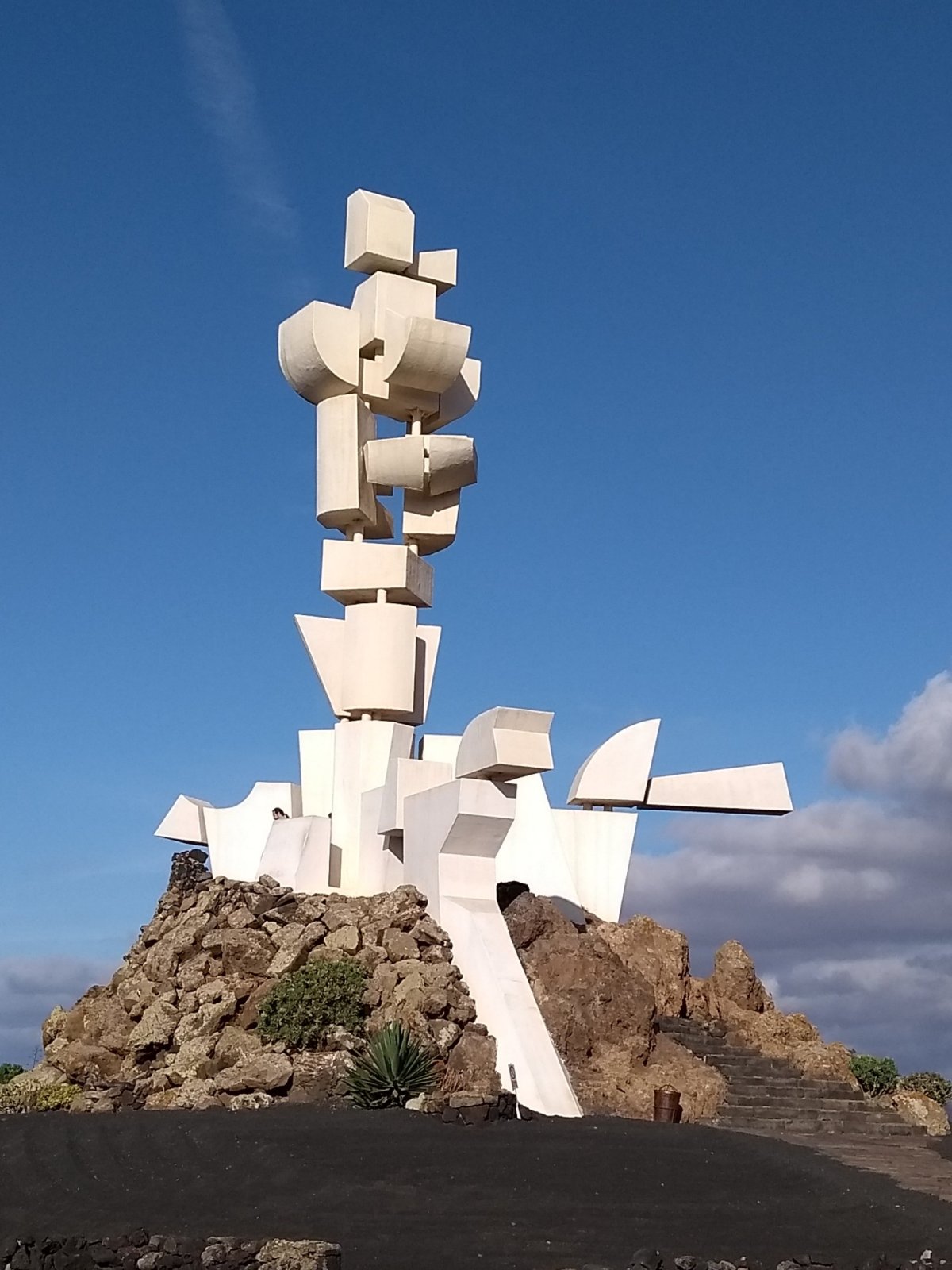 Autorem této sochy je César Manrique. Toto jméno zde uvidíte a uslyšíte často, protože jde o místního nejslavnějšího rodáka – umělce, sochaře, architekta a vizionáře, který vtisknul svou představu o udržitelnosti soužití člověka s přírodou do mnoha míst na ostrově a který dodnes ovlivňuje celkový ráz Lanzarote mj. tím, že se zde dbá na zachování původního rázu bílých staveb nebo omezením výšky budov, díky čemuž zde nenajdete taková šílená monstra jako na jiných Kanárských ostrovech. Součástí monumentu je i kulturně-informační centrum s restaurací a stánky s lokálními folklorními produkty.