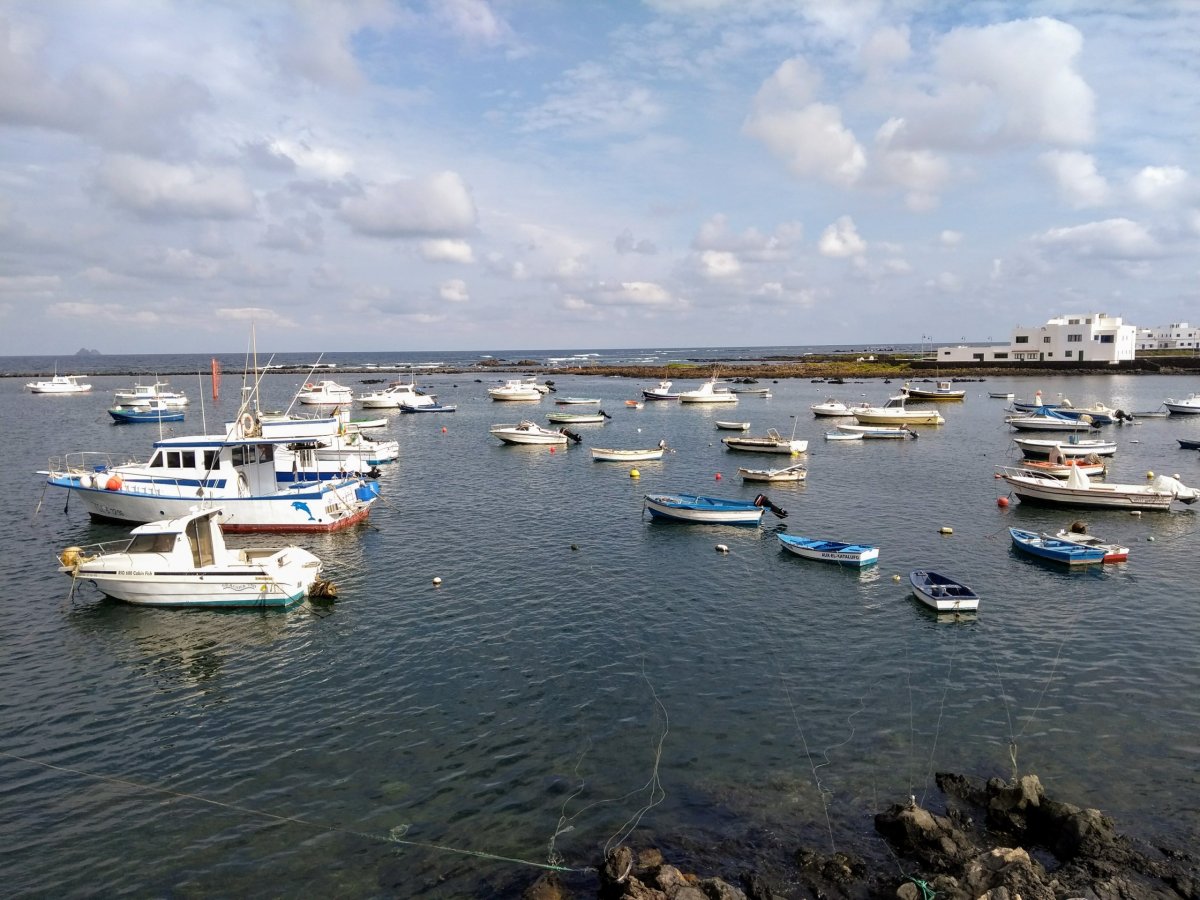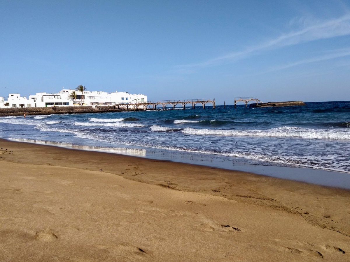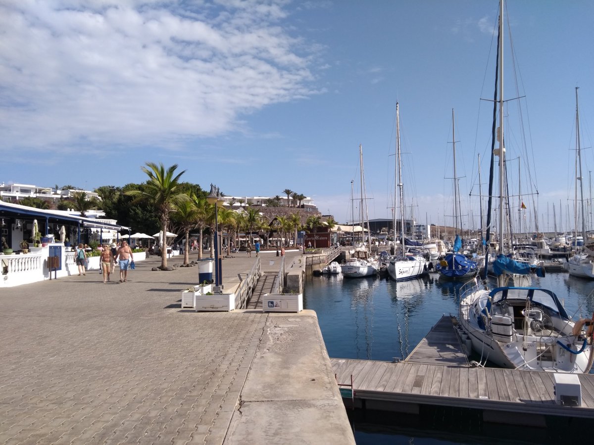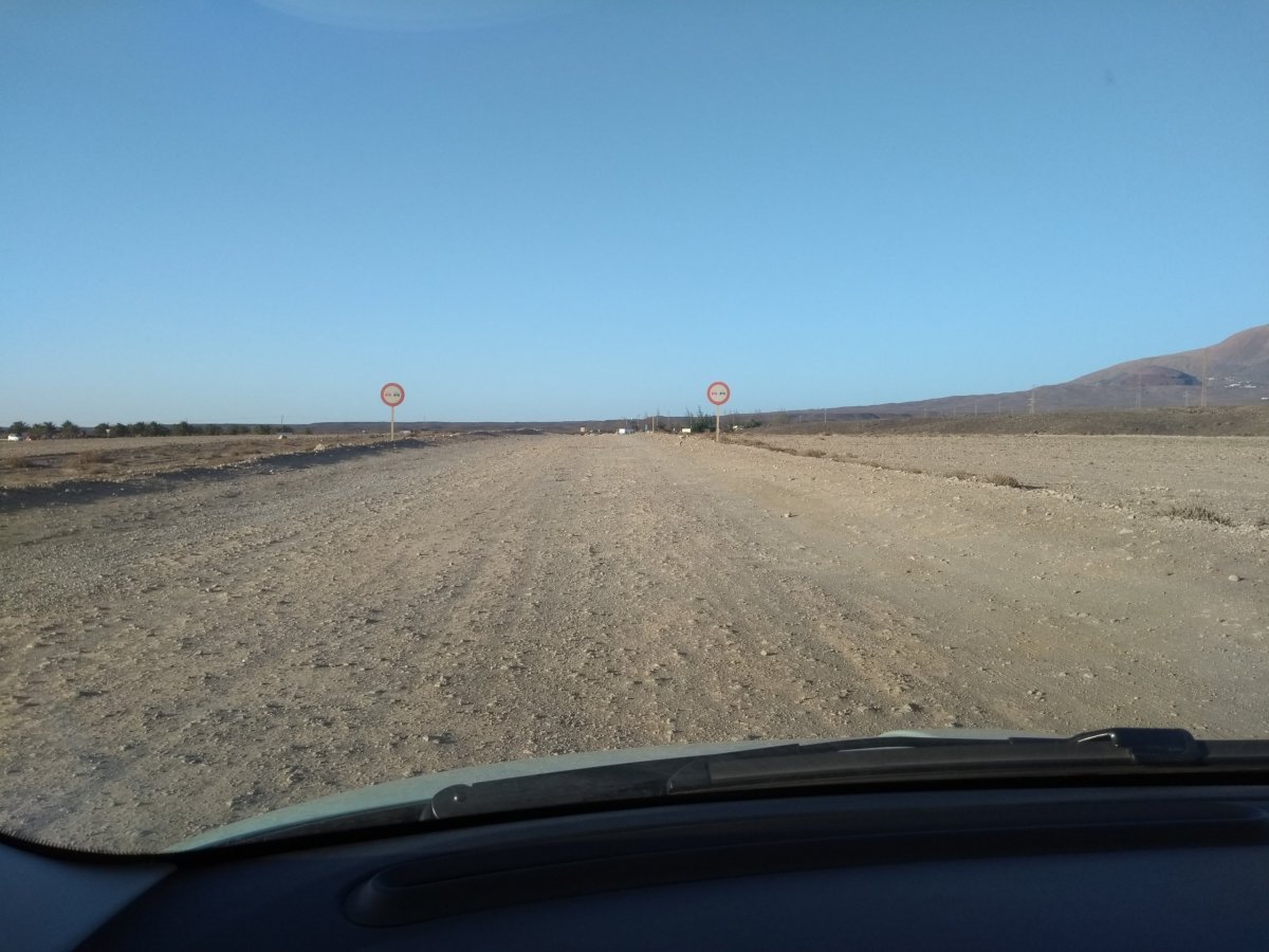 Když jsme tam během první půlky našeho pobytu objeli prakticky vše, co jsme na Lanzarote chtěli vidět, druhou půlku pobytu už pojímáme výrazně více pohodově a dovolenkově. První zastávkou je přístav Puerto Calera kousek východně od Peurta del Carmen, kde si projdeme přístav a přímořskou promenádu s restauracemi a obchody. Dnes je pěkné a teplé slunečné počasí, tak naše další cesta směřuje do Playa Blanca, kde chceme navštívit vyhlášené písečné pláže, které se nacházejí východně od letoviska. Tentokrát nejedeme po hlavním tahu, ale volíme zajímavější cestu LZ-702 přes „kopce“. Před Playa Blanca sjíždíme na velkém kruháči z asfaltky a dále pokračujeme po uježděné roletě prašné cesty k plážím.