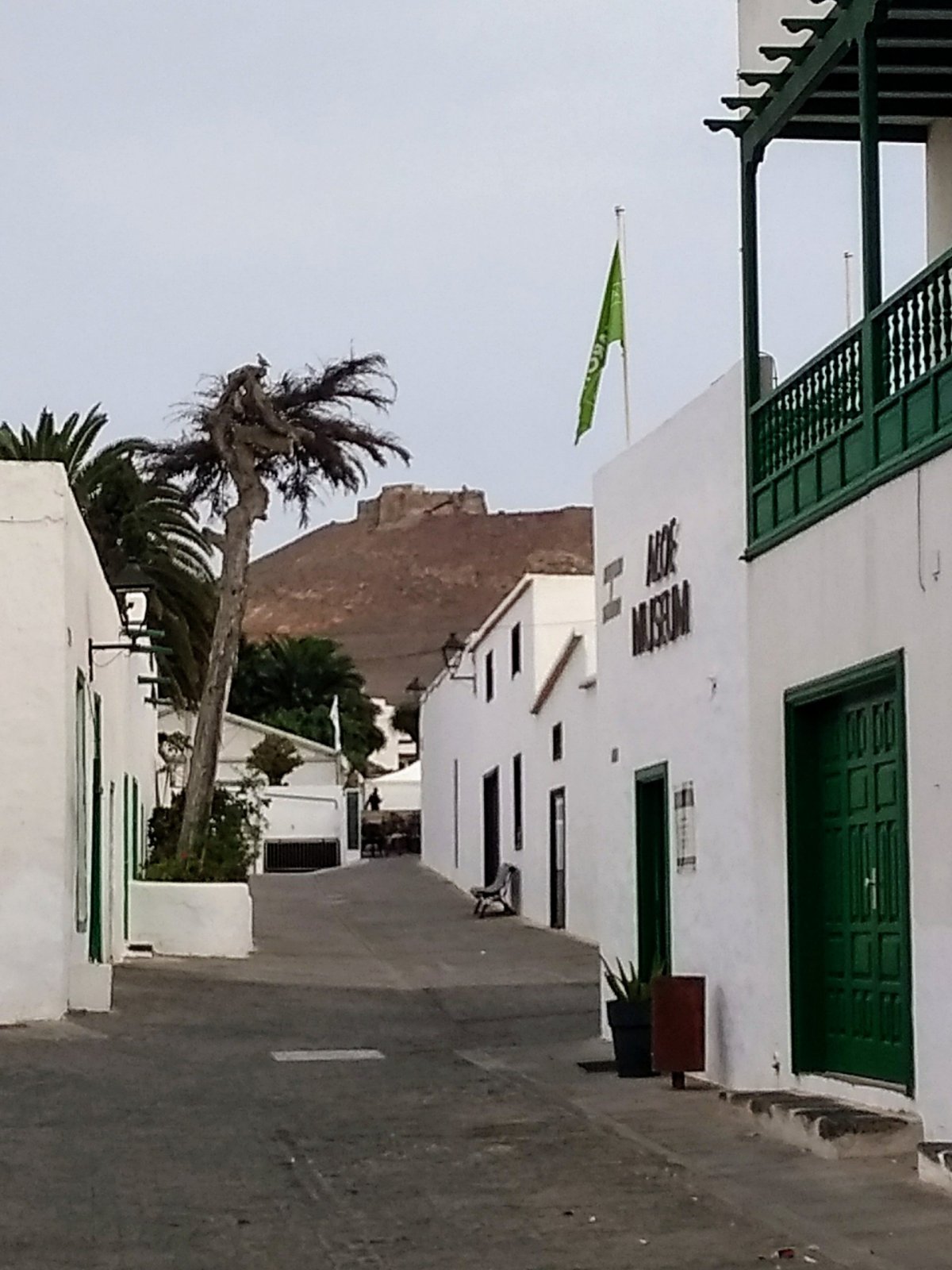 Po procházce po promenádě ještě procházíme jedno z místních obchodních center, kde si v restauraci, která nás zaujme, dáváme brzkou večeři. A protože je krásný den, nechce se nám ještě do Puerta, tak jedeme na večer do Teguise. Na rozdíl od rušné neděle je dnes městečko poloprázdné, takže si v klidu procházíme historické uličky lemované bílými domečky. Navštěvujeme i muzeum aloe, které je zde jako na mnoha jiných místech zde i na jiných ostrovech součástí prodejny, kde můžete koupit různé aloe produkty. Nakonec si u náměstí dáváme dvojku vína a za soumraku se vracíme do Puerta.