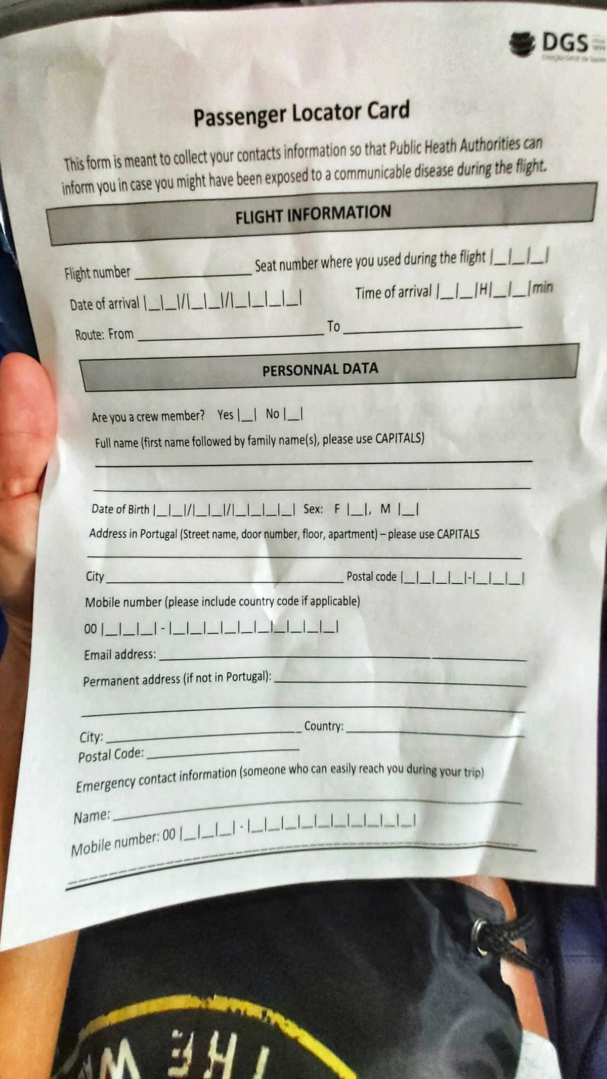 Při letu zpátky do Vídně jsme taktéž dostaly tranzitní dotazník pro Rakousko a jak jej po mě doteď nikdy nechtěli, nyní ano. Je to asi tím, že pro Rakousko je Portugalsko červené. Každopádně fámy, že to musí být vyplněné v němčině a že je při kontrole jakýkoliv problém, nejsou pravdivé. Vyplněno v ANJ se spoustou chyb, které si voják sám a s úsměvem opravil a jakmile řeknete, že je Vídeň jen tranzit a sypete hned do ČR, okamžitě vás nechají jít (jo a žádné jízdenky, které tu cestu domů potvrzují, po vás nikdo nechce).