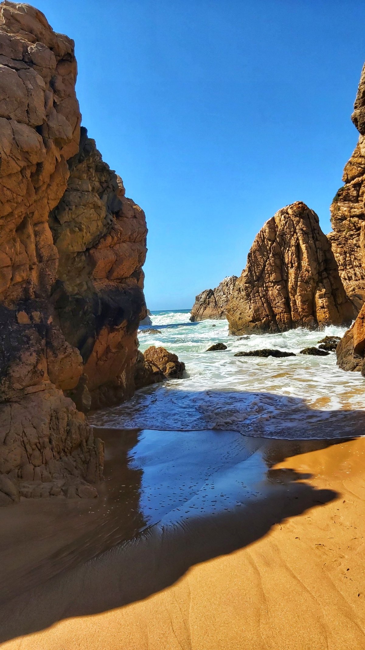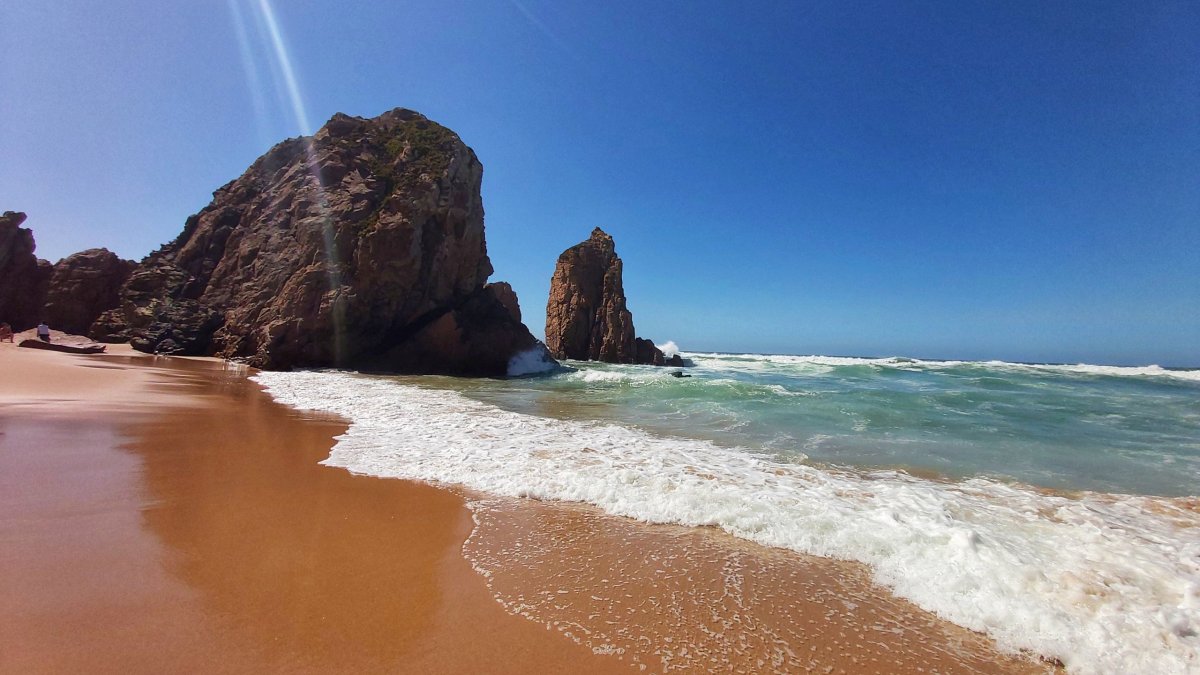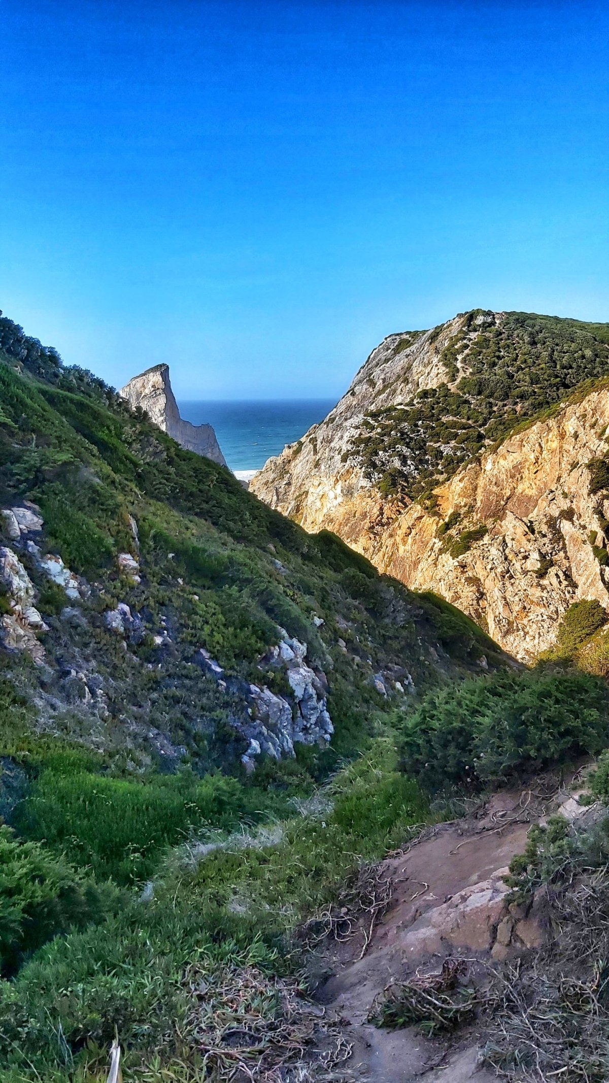 1. Cabo de Roca, cesta k pláži Praia da Aroira a tato konkrétní pláž lemovaná Atlantikem
