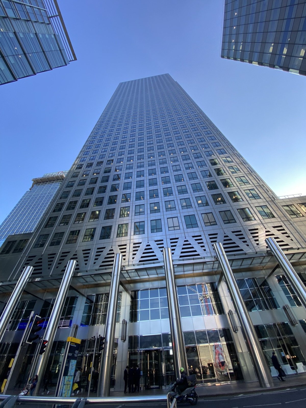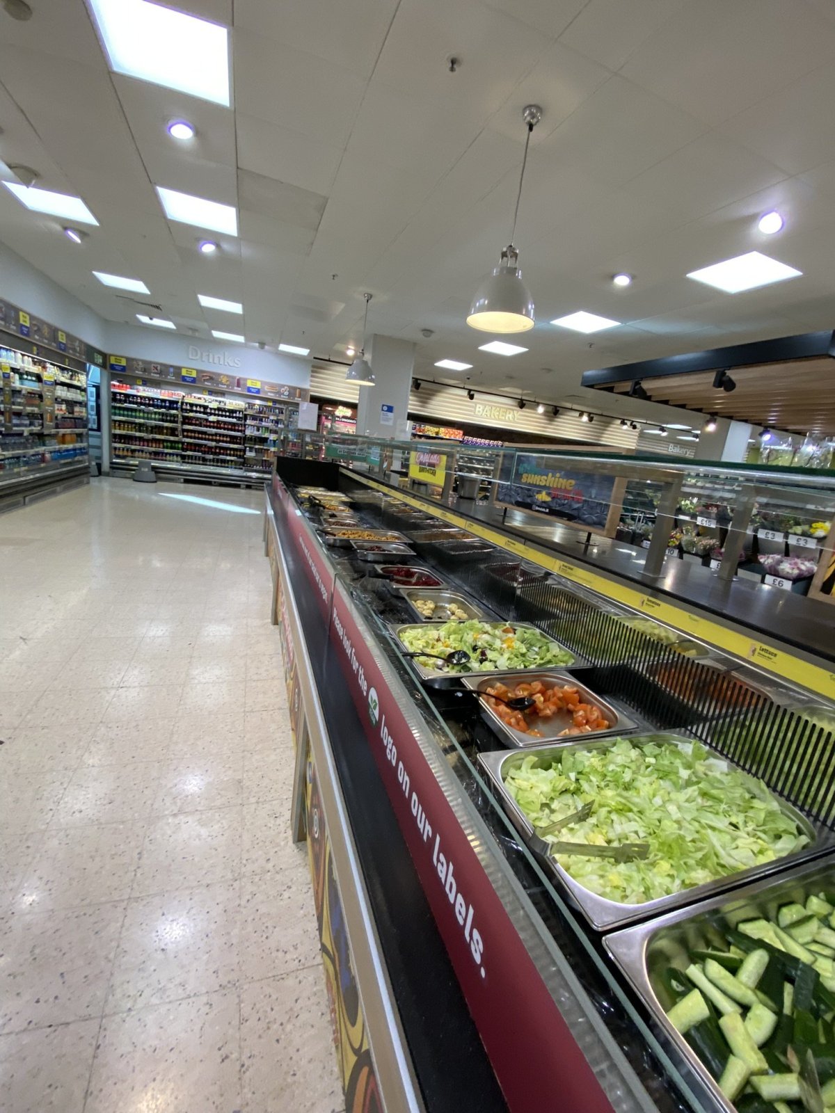 Cestou na ubytování jsme potřebovali navštívit nějaký obchod typu Tesco nebo Lidl. Koupit si něco k pozdnímu obědu. Našel jsem si cestou na mapách Lidl v místě, kde budeme přestupovat. Nevím co mě to napadlo, ale vystoupili jsme na zastávce Canary Warf místo Canning Town. Místo Lidlu nás najednou obklopovaly mohutné mrakodrapy a tam jsem zjistil, že jsme úplně někde jinde. Naštěstí je zde celkem hustá síť Tesco Express, takže to nás zachránilo. Hned u vchodu mě překvapil samoobslužný pult na různá hotová jídla, ovoce a zeleninu. Tento styl samoobsluhy u nás v Tescu vůbec není.