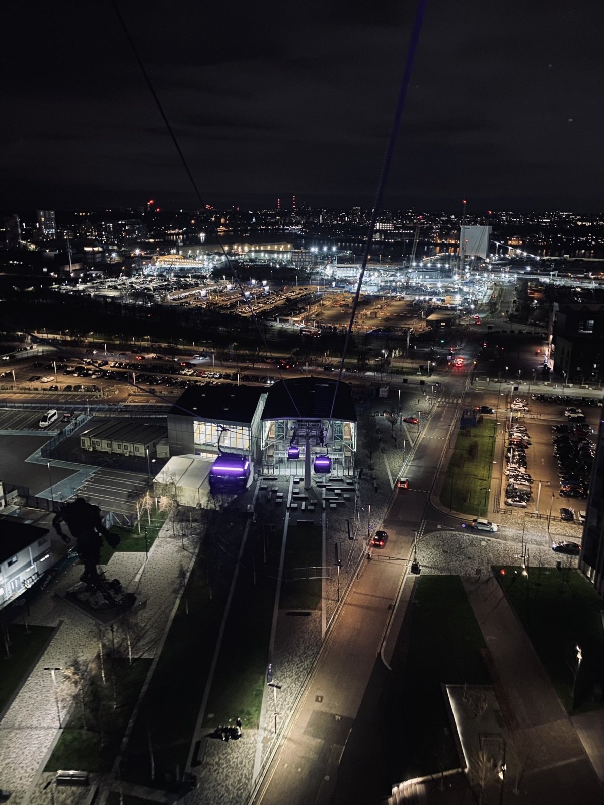 Kdo nechce platit spoustu liber za projížďku London Eye, ale má chuť zažít Londýn z ptačí perspektivy, tak doporučuji navštívit IFS Cloud Cabel Car ve východní části Londýna. Bráchu jsem o to nemohl ošidit, takže i nás čekala asi desetiminutová jízda lanovkou, která vede přes řeku Temži. Během noční oblohy jsou krásně vidět všechny svítící mrakodrapy a i při mírném vánku to byl celkem adrenalin. Jízdenka neplatí v rámci zón, ale má svůj samostatný tarif. Jedna jízda nás vyšla na 7 Ł na osobu. Doporučuji přijít právě večer, jelikož máte prakticky celou lanovou dráhu pro sebe.