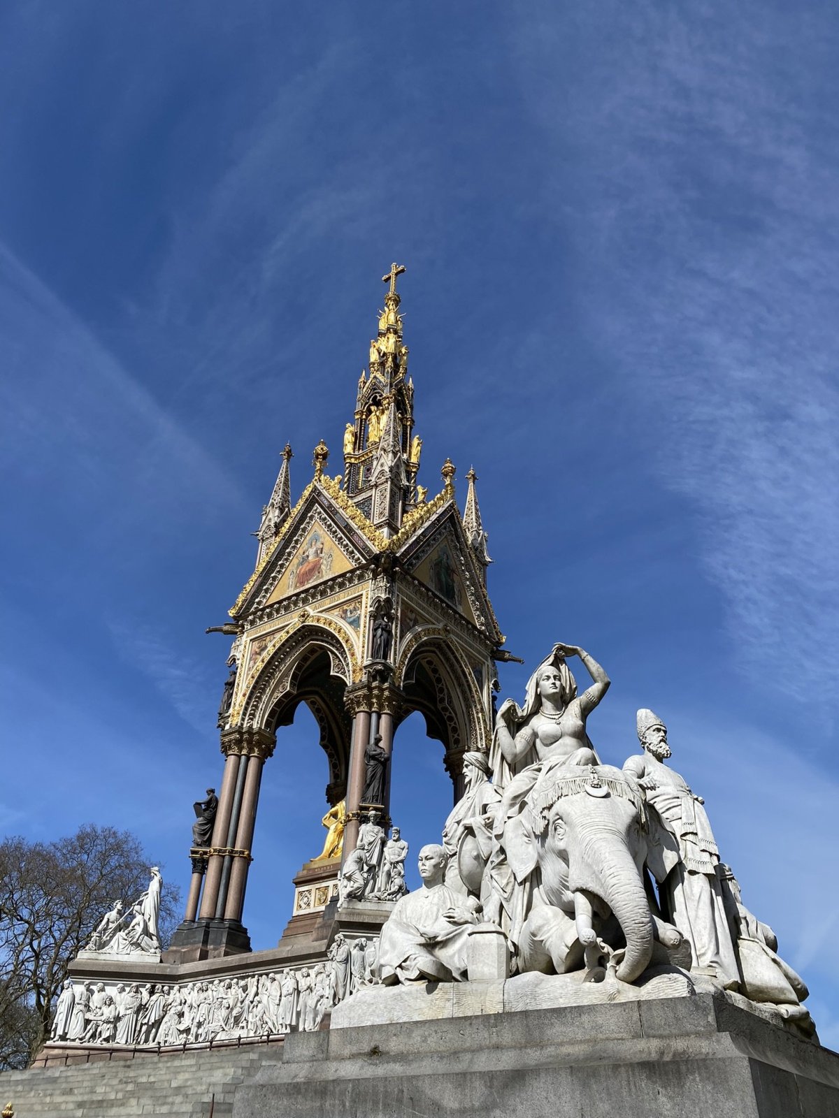 Po krátké pauze se nám před očima objevil majestátný Albertův památník, který nechala vybudovat královna Viktorie na památku svého manžela prince Alberta. Jeho součástí je spousta detailně propracovaných soch včetně čtyř, které prezentují jednotlivé světadíly - Evropu, Afriku, Asii a Ameriku. Každá socha má ve svém středu zvíře, které je obklopeno lidmi. Mě nejvíce zaujala socha Asie, kde byl velice detailně propracovaný slon indický, ale i velbloud znázorňující Afriku byl téměř jako živý.