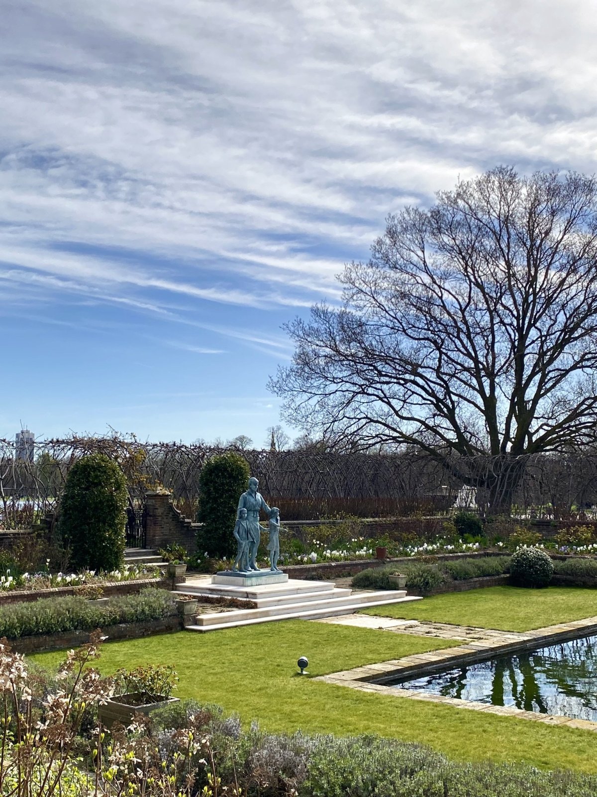 Nastal poslední den a po snídani nás čekala procházka skrze nejznámější londýnské parky. Popojeli jsme metrem do stanice Queensway, která je prakticky hned u Hyde Parku. Hyde Park byl plný běžců. Kam se člověk rozhlédl, tak tam byl sportovec. Při procházení hlavní cestou v západní části parku jsme odbočili ke Kensigtonskému paláci, který je aktuálně využíván rodinou následníka britského trůnu, princem Williamem. Hned u tohoto paláce je vzpomínkové místo na princeznu Dianu. Socha princezny je obklopena dětmi a stojí přímo před jezírkem, které je obklopené keři a květinami. Má to krásnou atmosféru a lidé si tak mohou připomenout tuto výjimečnou ženu.
