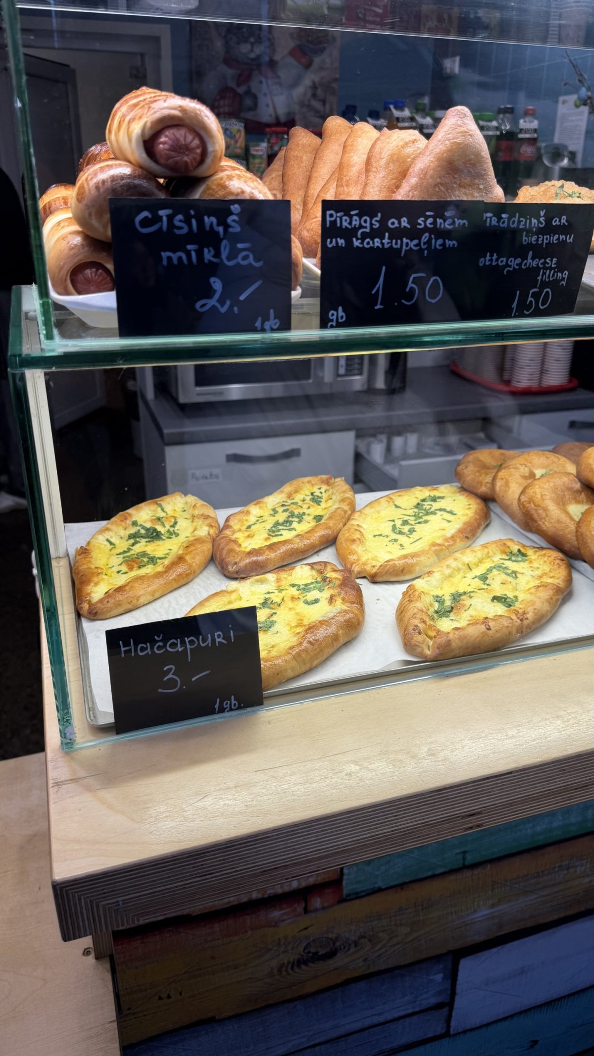 Po návratu do Rigy jsme zamířili zpět na tržnici, tentokrát už cíleně. Boršč podávaný v vydlabaném chlebu byl přesně tak vydatný, jak člověk po celodenním výletu potřebuje. A k tomu khachapuri – gruzínský sýrový chléb, který se sem dostal jako součást pestré postsovětské gastronomické směsi.