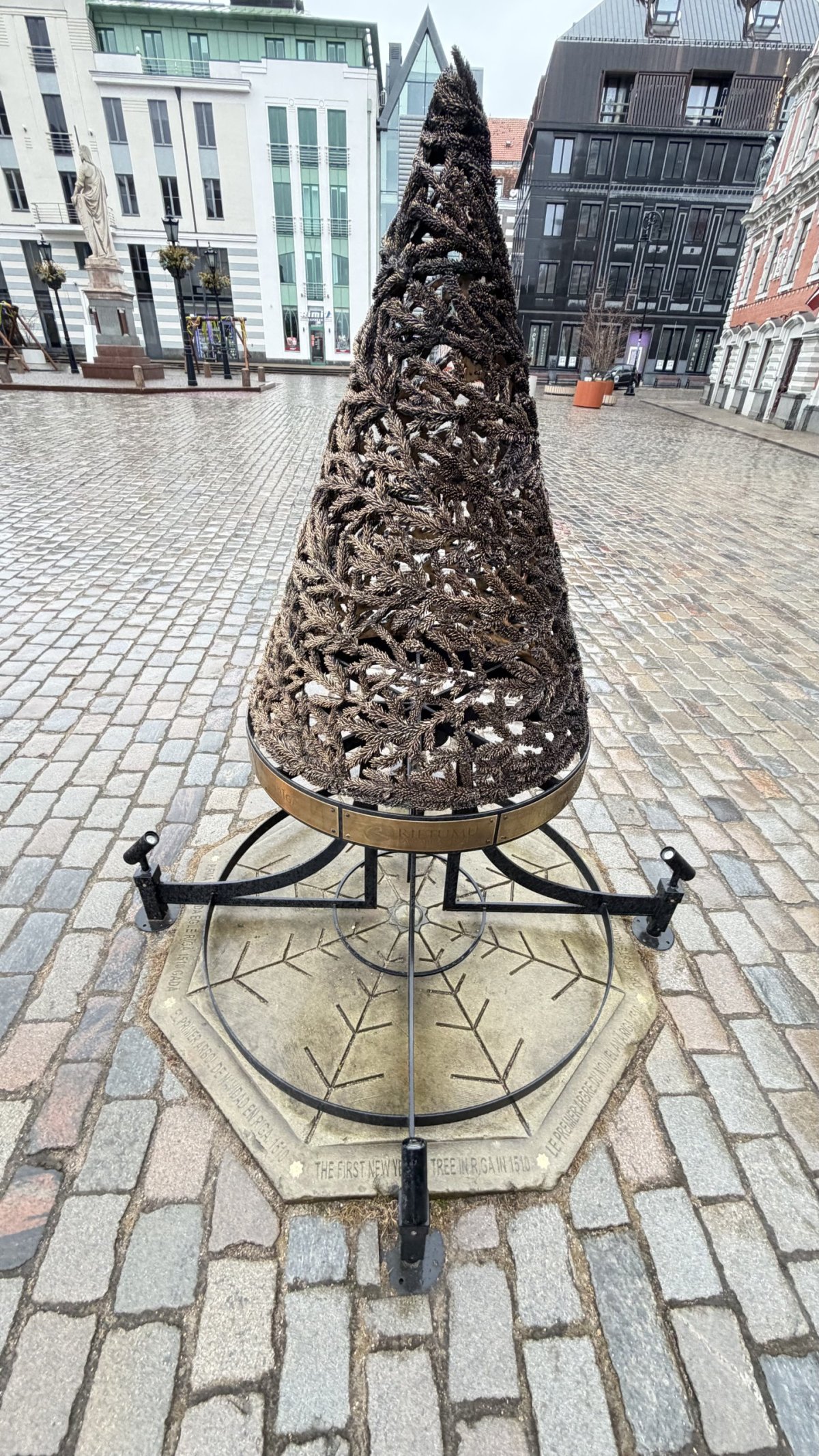 Ráno ještě krátká zastávka v Rize u památníku prvního vánočního stromečku poblíž námšstí. Právě tady měl být podle tradice v roce 1510 postaven vůbec první ozdobený vánoční strom na světě, když ho místní obchodníci z cechu Černohlavců slavnostně ozdobili a – podle legendy – nakonec i spálili. Dnes to připomíná nenápadný, ale symbolicky zajímavý bod přímo v historickém centru.