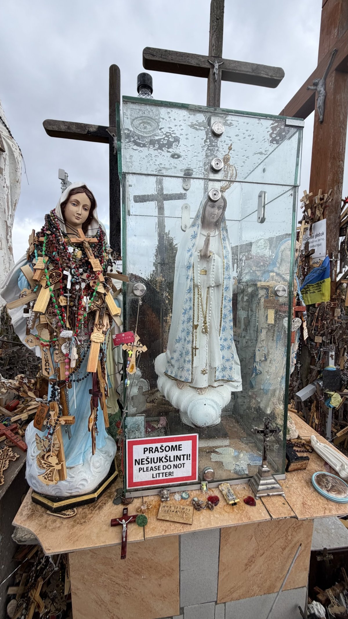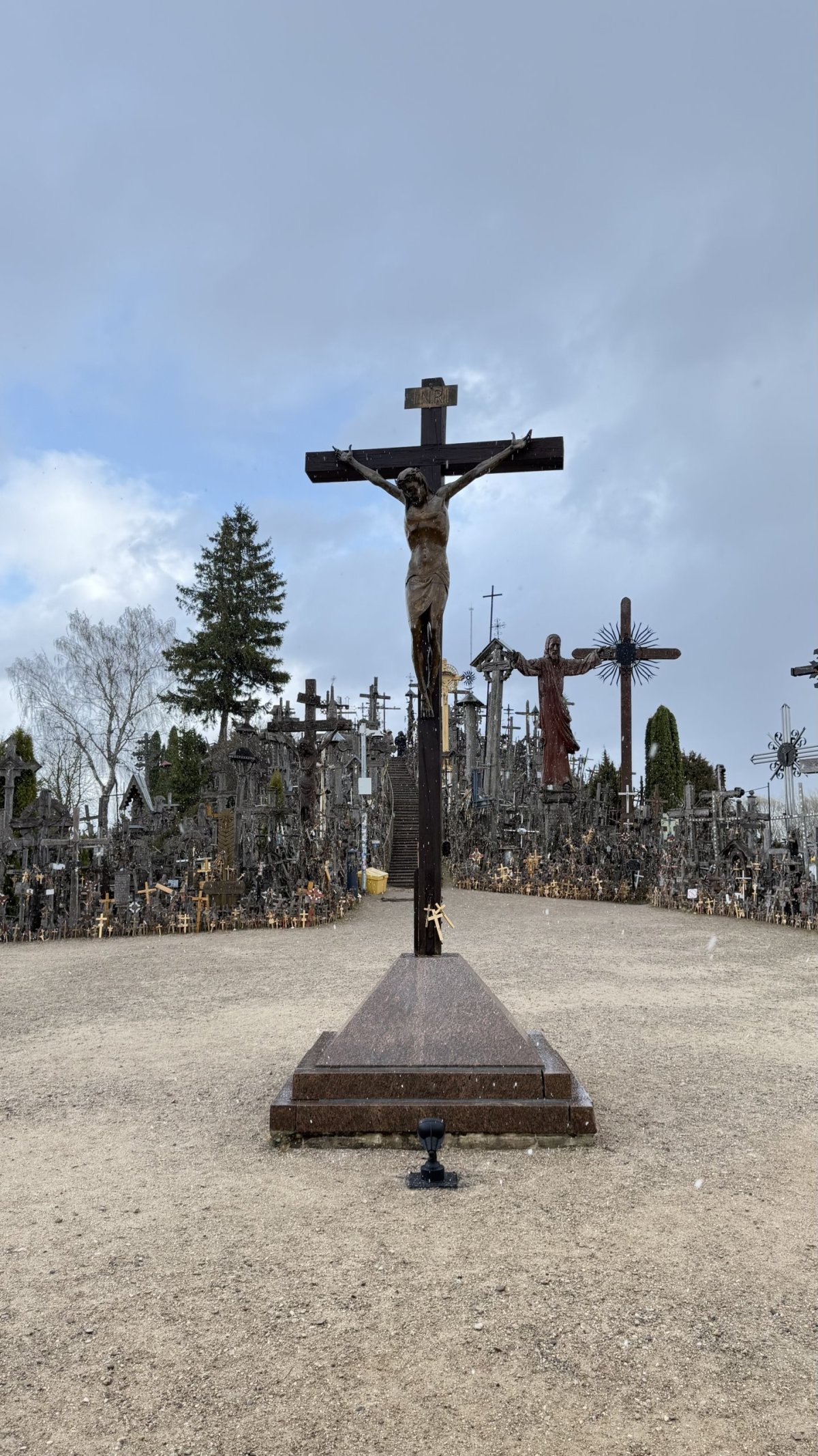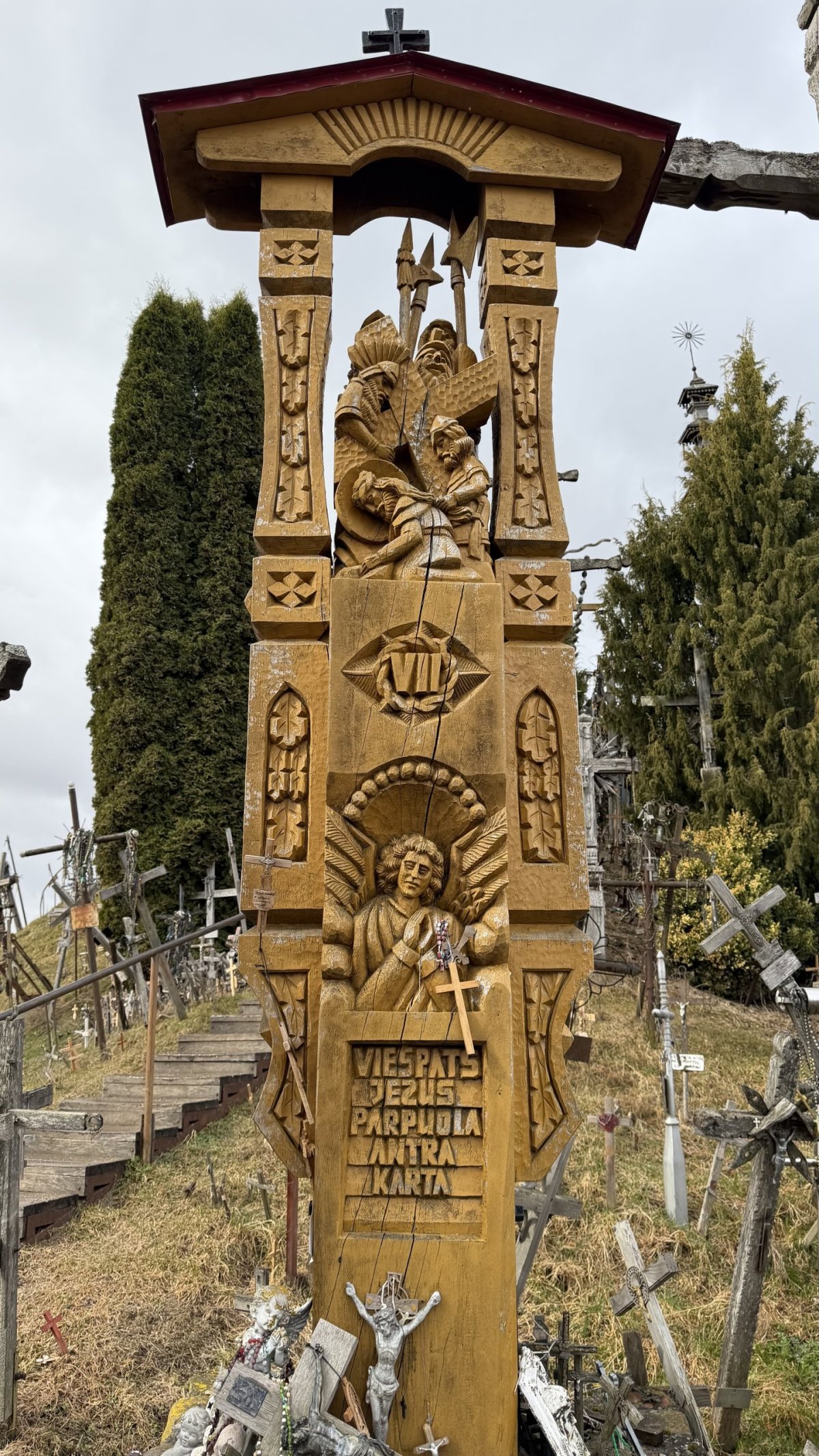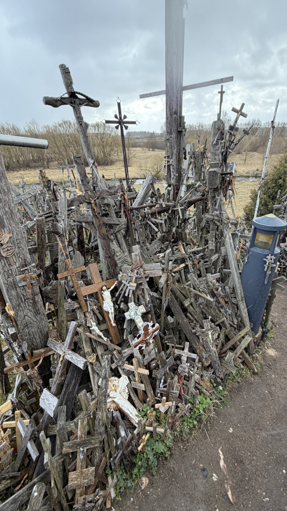 Po příjezdu průvodce jsme vyrazili směrem na jih, do Litvy. Hlavním cílem byla Hora křížů (Kryžių kalnas), jedno z nejznámějších poutních míst v Pobaltí. Na první pohled působí skoro surrealisticky – tisíce a tisíce křížů všech velikostí, od drobných dřevěných po velké kovové, hustě pokrývají malý pahorek. Odhady mluví o 200 až 300 tisících křížů, které sem lidé nosí jako symbol víry, naděje nebo památky na své blízké. Místo má silný historický význam – zejména během sovětské éry bylo opakovaně ničeno, ale lidé kříže stále znovu vraceli. V roce 1993 sem zavítal i papež Jan Pavel II., čímž jeho význam ještě vzrostl.