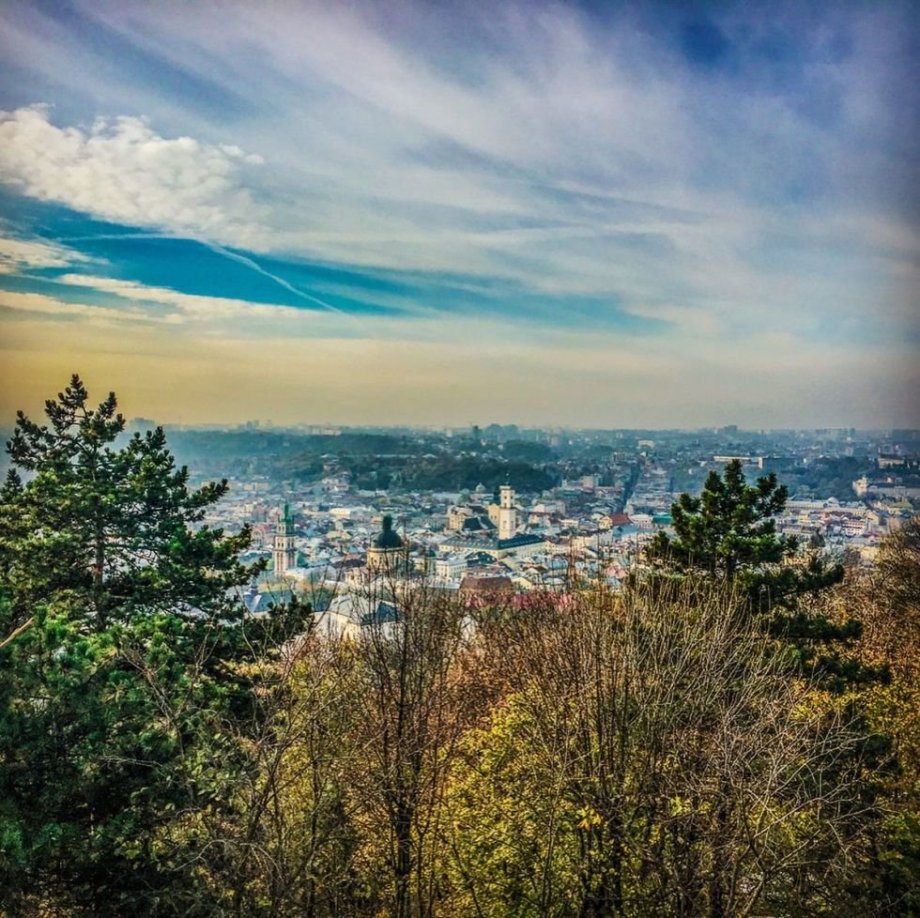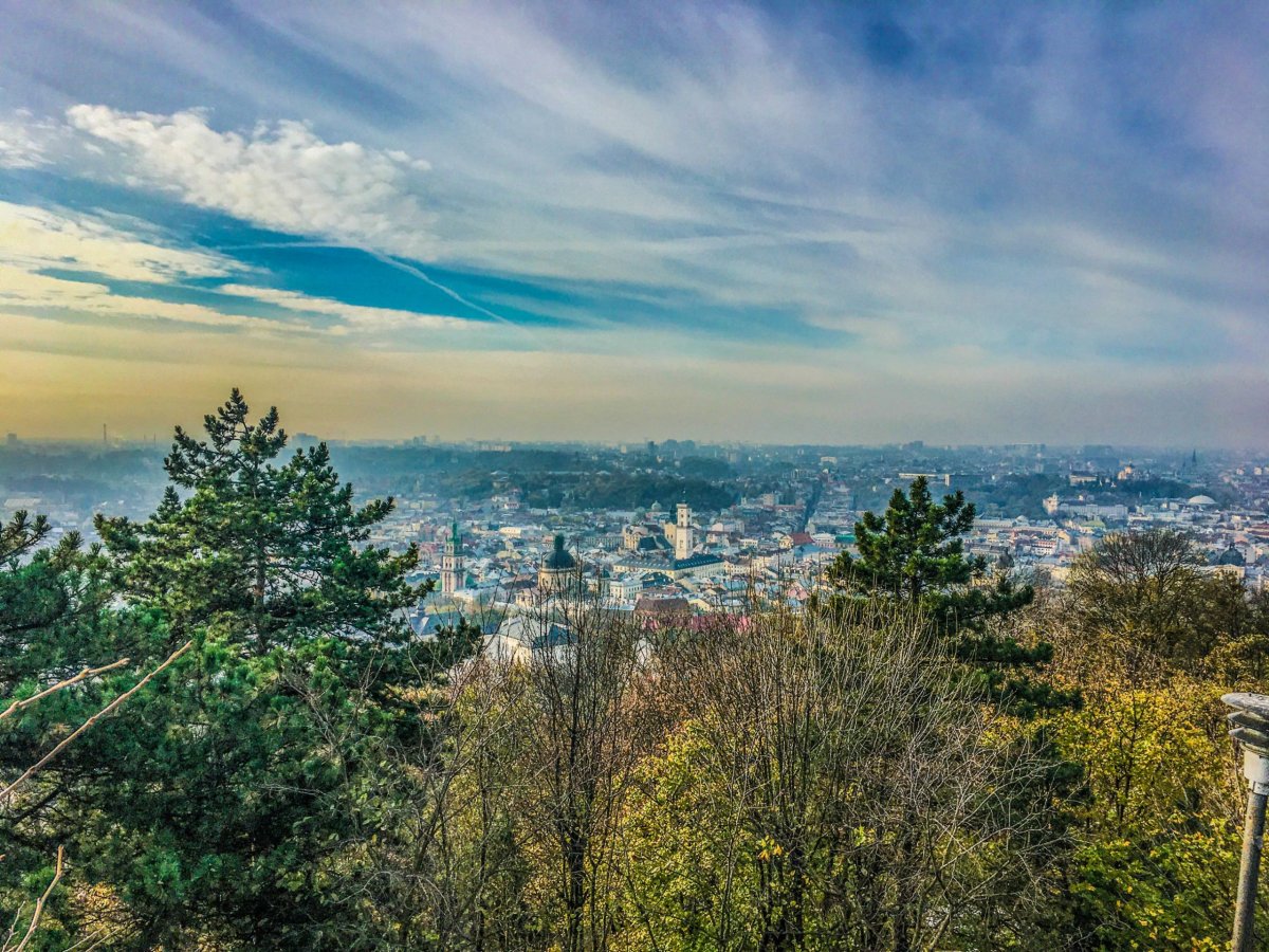 Dokud nás ještě nohy nebolely, vydali jsme se na Zámkovou horu. Na jejím vrcholu je stožár s ukrajinskou vlajkou. Hlavním důvodem, proč ji zdolat, je ale výhled. Ten je odsud opravdu perfektní! Po cestě je možnost nakoupit nějaké suvenýry jako jsou magnetky ale třeba taky nože nebo falešné ukrajinské občanky známých politiků. My jsme si však nákupy nechávali až na konec.