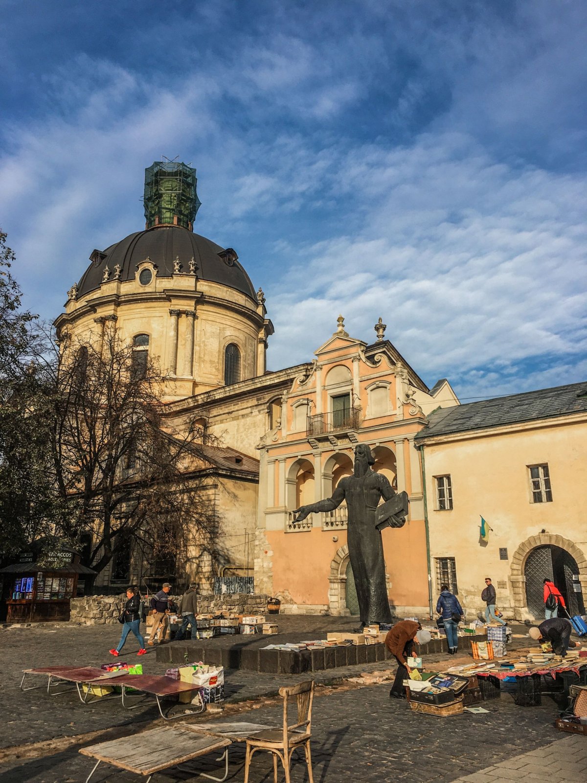 V pondělí večer v 8 hodin jsme odjížděli z Ostravy. Výhodou tohoto autobusového spoje bylo to, že nemusíme nikde přestupovat. A tak jsme měli alespoň malou naději na to, že se slušně vyspíme. Přes hranice jsme se dostali za cca hodinu a půl. Ve Lvově jsme vystupovali v rámci možností odpočatí asi půl hodiny před plánovaným příjezdem, tedy kolem půl sedmé ráno. Což mě trošinku vyděsilo. Říkala jsem si, co tak brzo budeme dělat? Ještě je tma a pravděpodobně bude všude zavřeno. Ale hned na nádraží bylo jasné, že s tím nebude problém. Kavárničky i obchůdky byly otevřené. Doplnili jsme zásoby a hned jak se začalo rozednívat vyrazili jsme pěšky do centra. Nebylo to sice nejblíž, ale alespoň jsme zabili nějaký čas.
